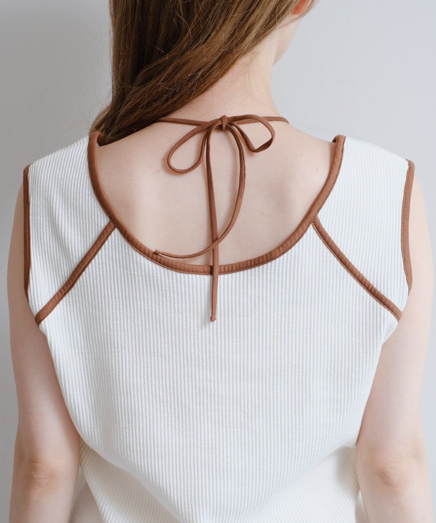 トレンド感のあるアメリカンスリーブデザインに、アクセントとなるパイピングを施したタンクトップ