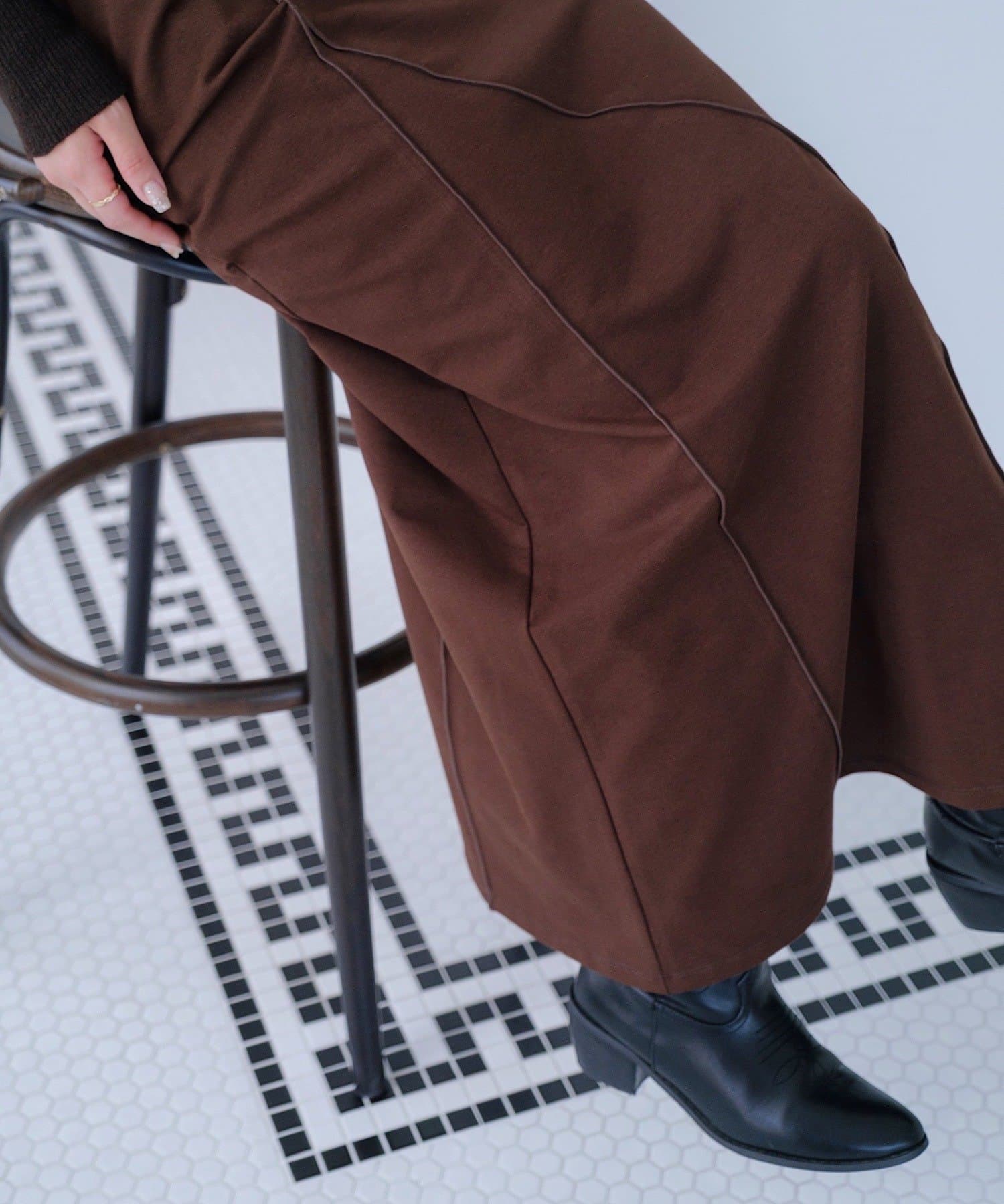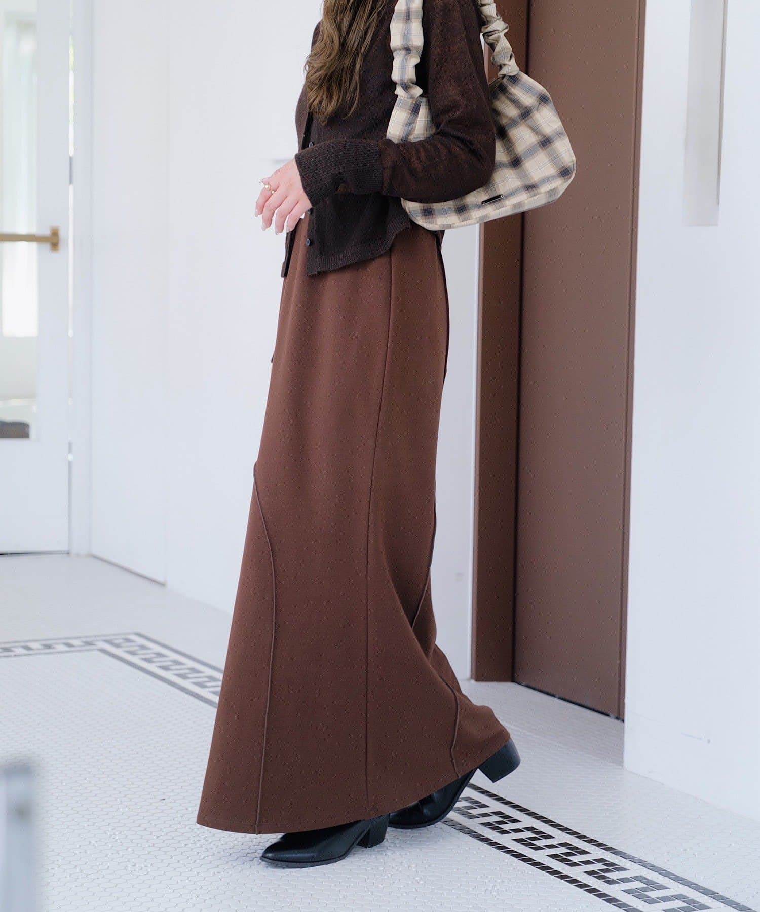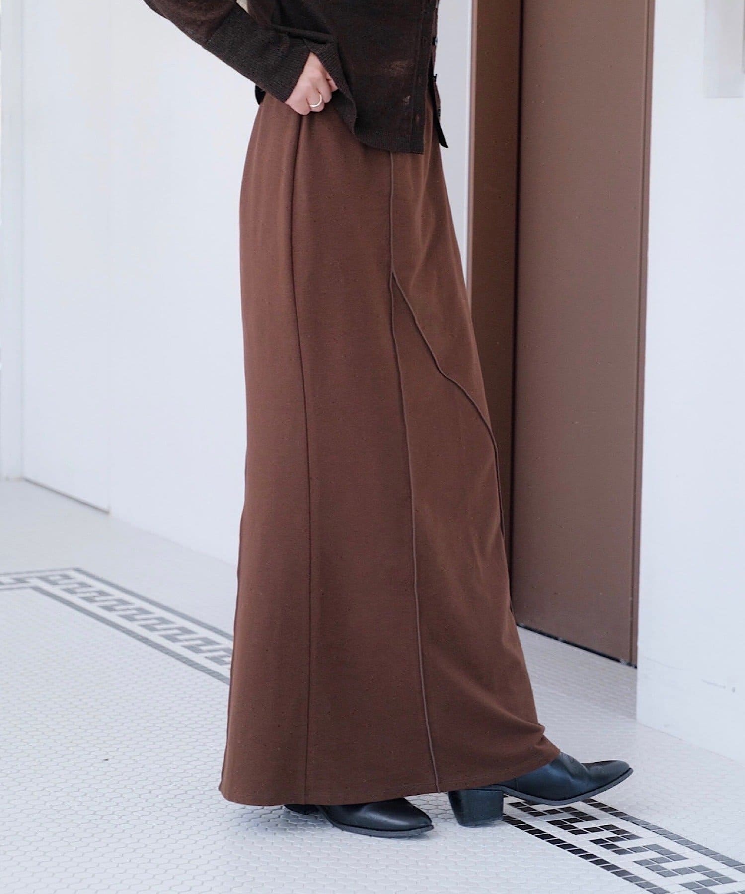 このスカートはストンと落ちる縦ラインが体型をすっきり見せてくれます◎