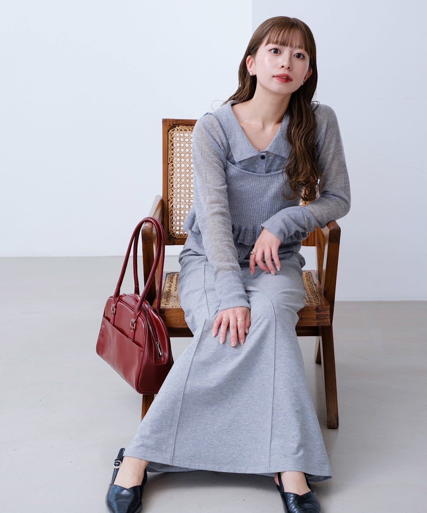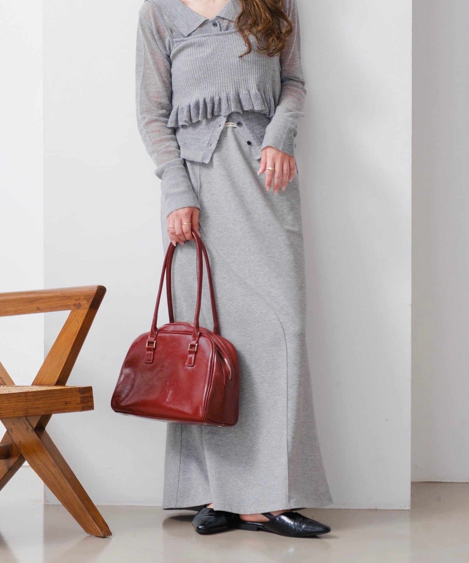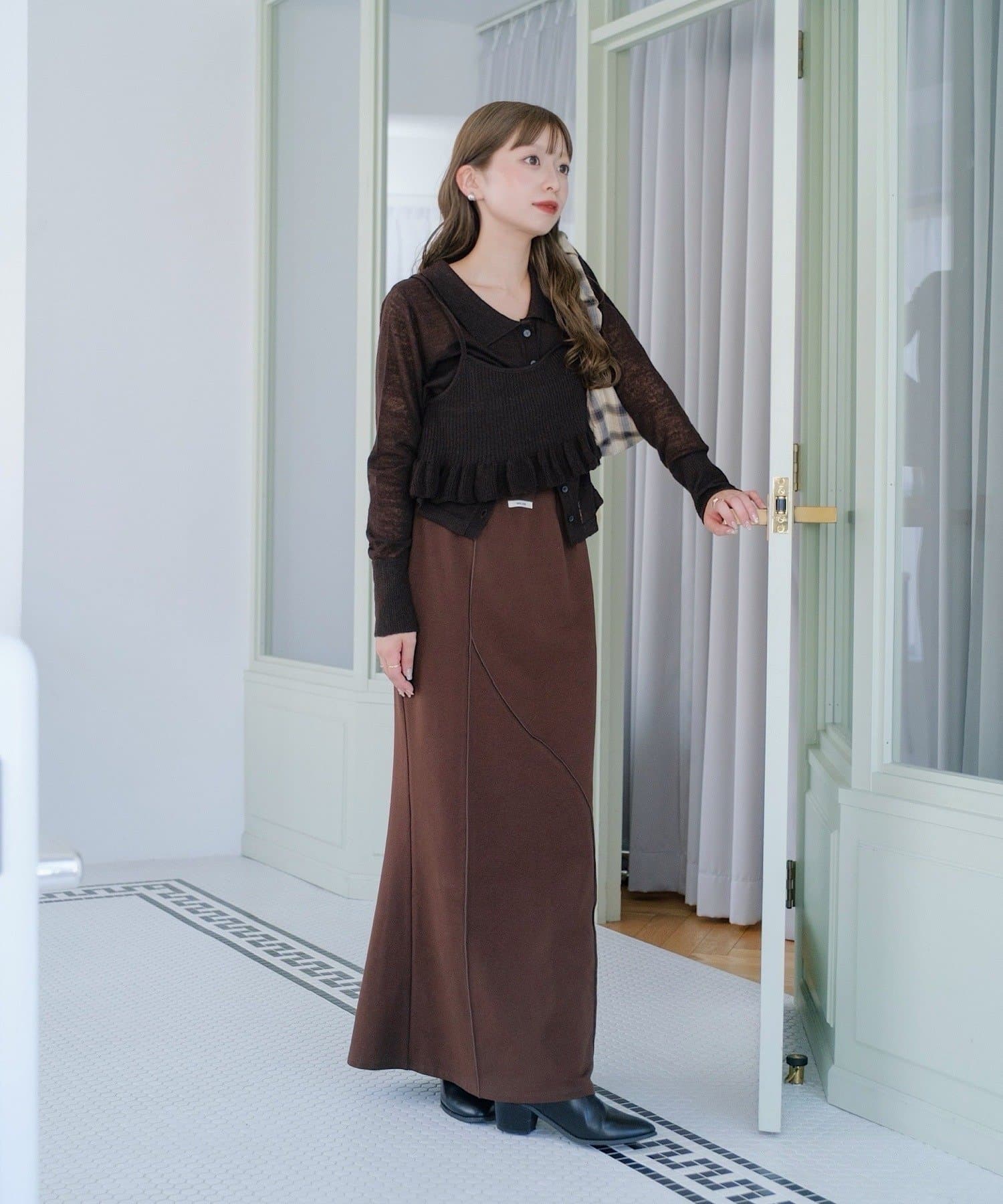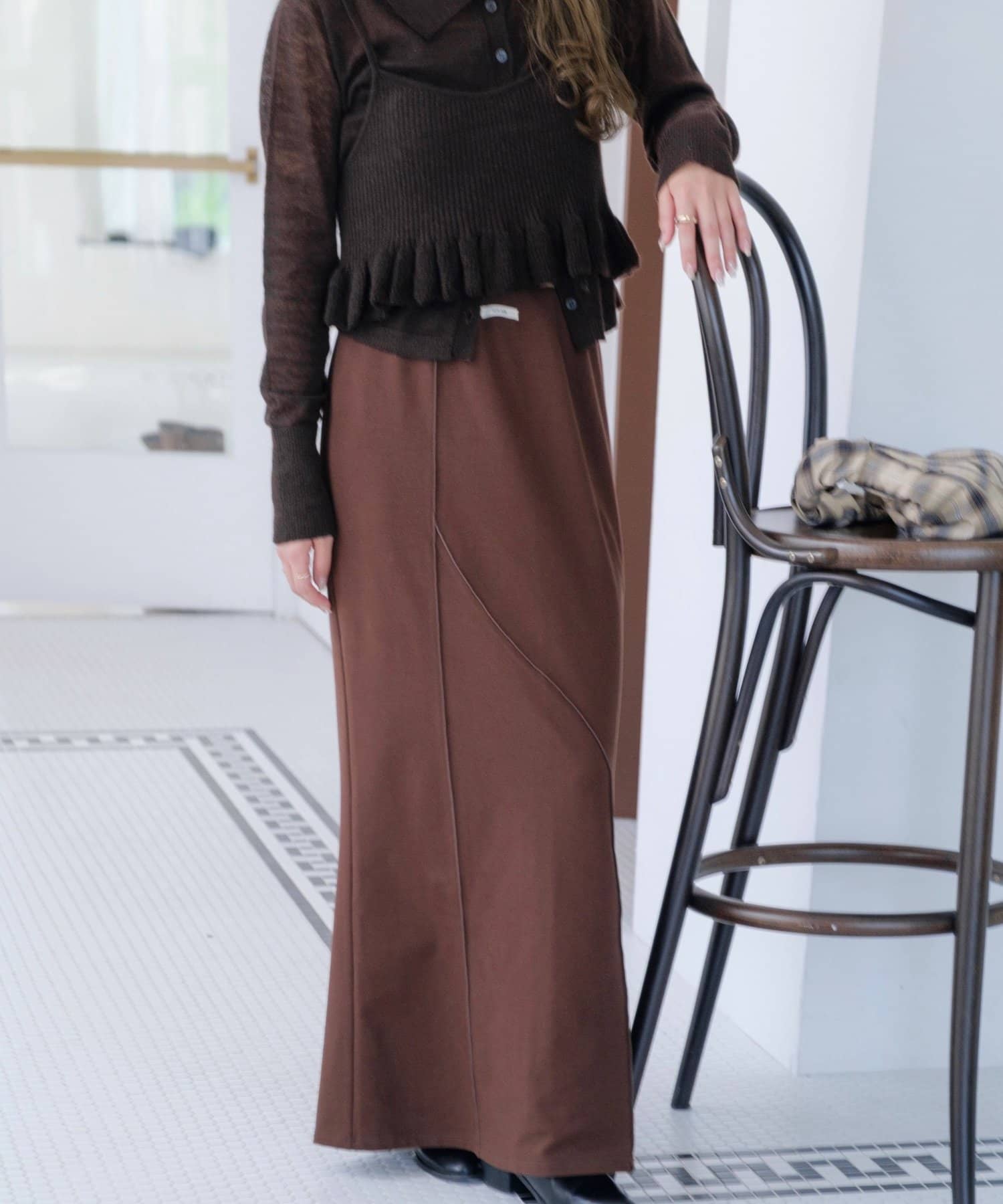 このスカートはストンと落ちる縦ラインが体型をすっきり見せてくれます◎
