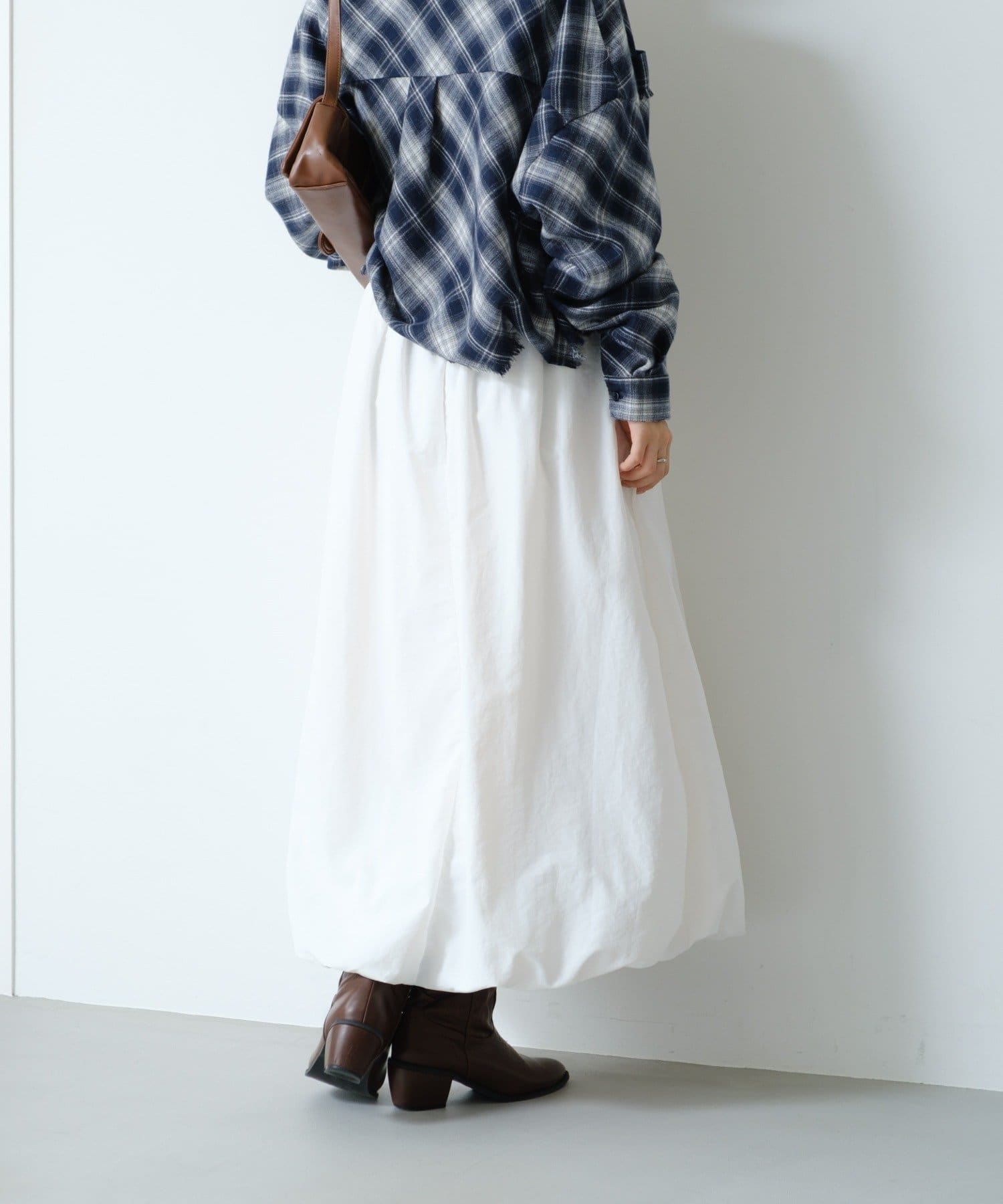 裾にかけて丸みを帯びたフォルムが特徴のバルーンボリュームスカート。