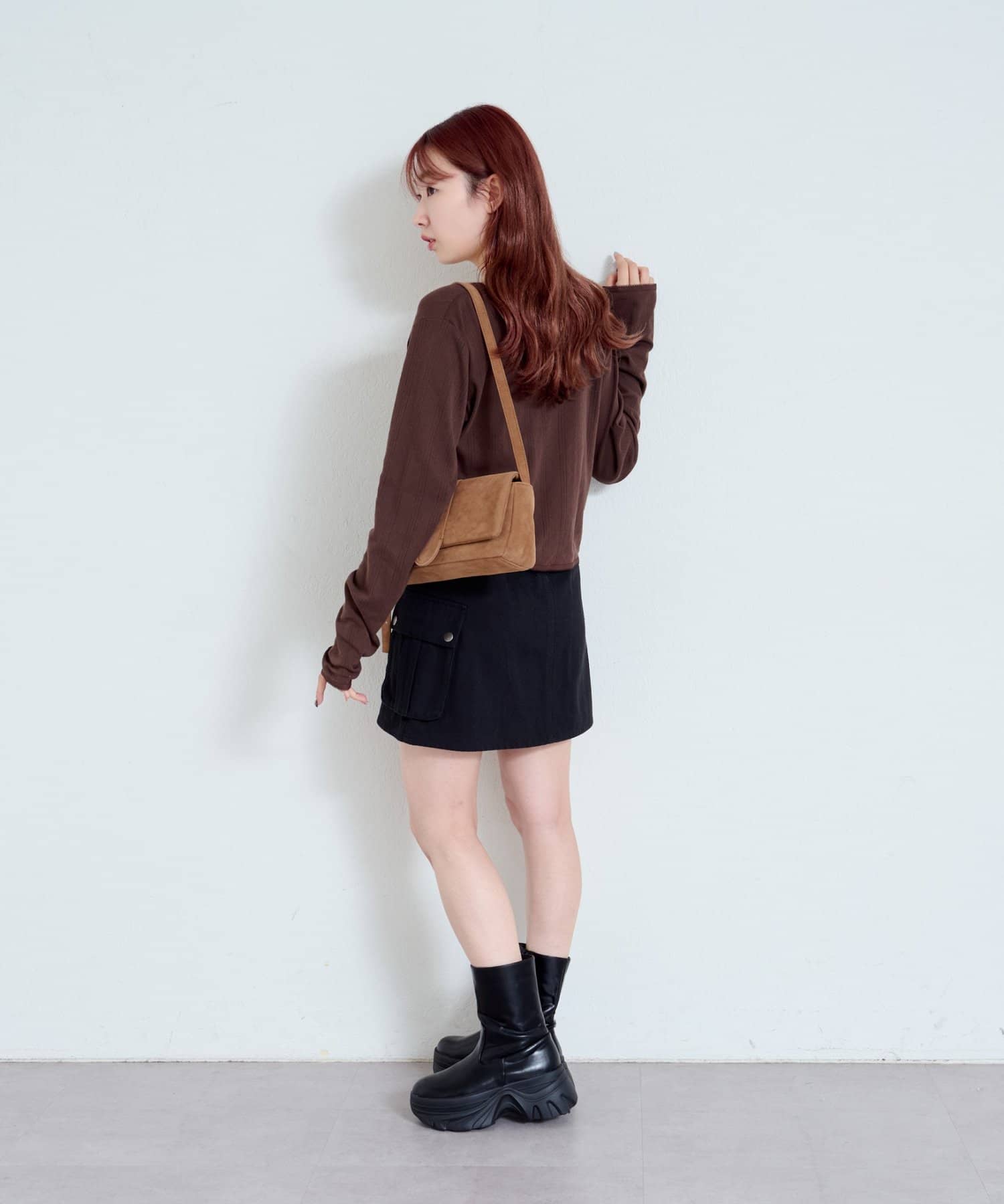 普段ミニスカートをはかないけれど思い切って購入。デザインもかわいいくて着痩せしてくれます。ロングブーツで着回したいとおもいます。