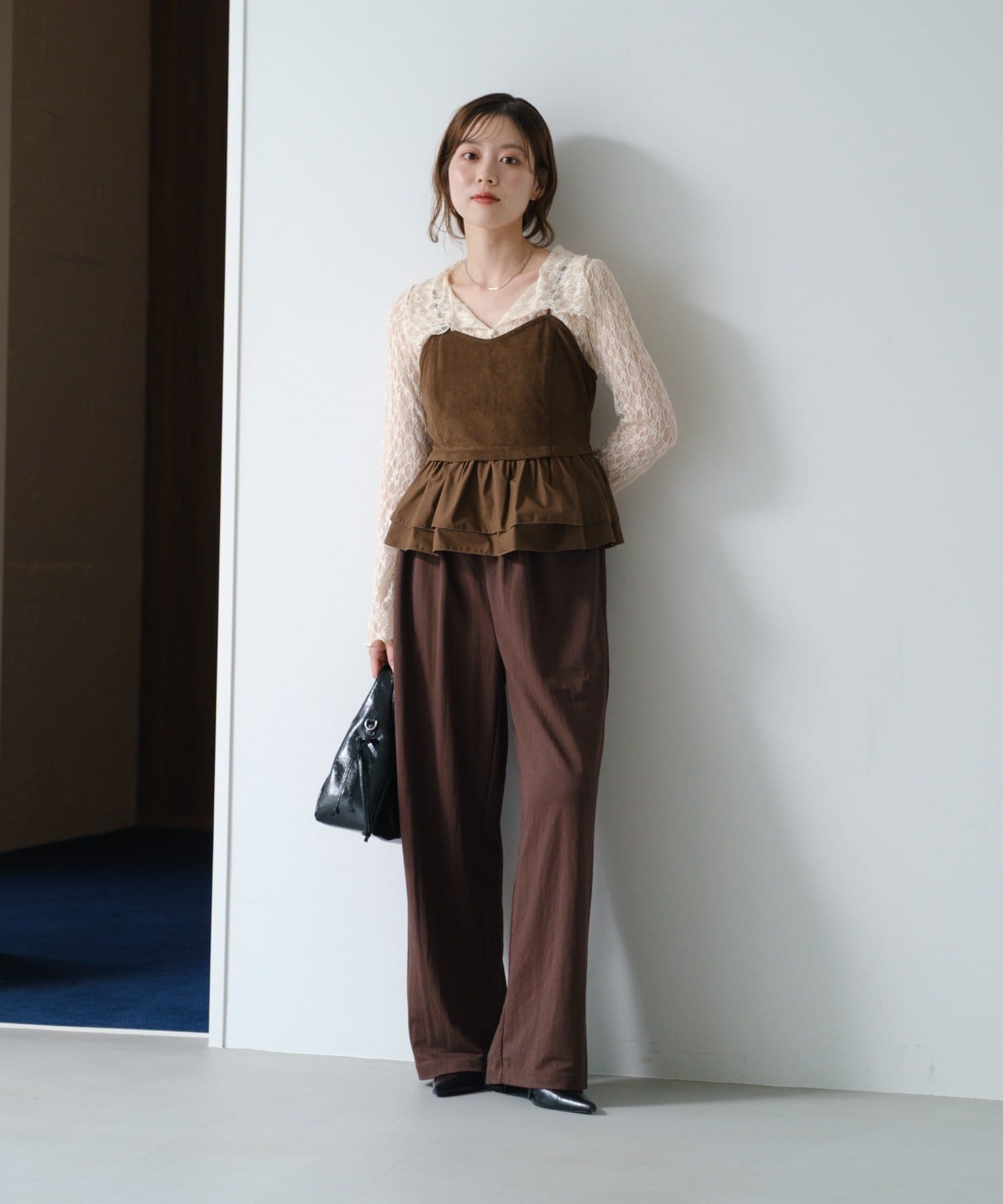 立体的なシルエットが、美脚ラインを自然に演出。シンプルながらも洗練されたシルエットは、オンオフ問わず幅広いシーンで活躍します。