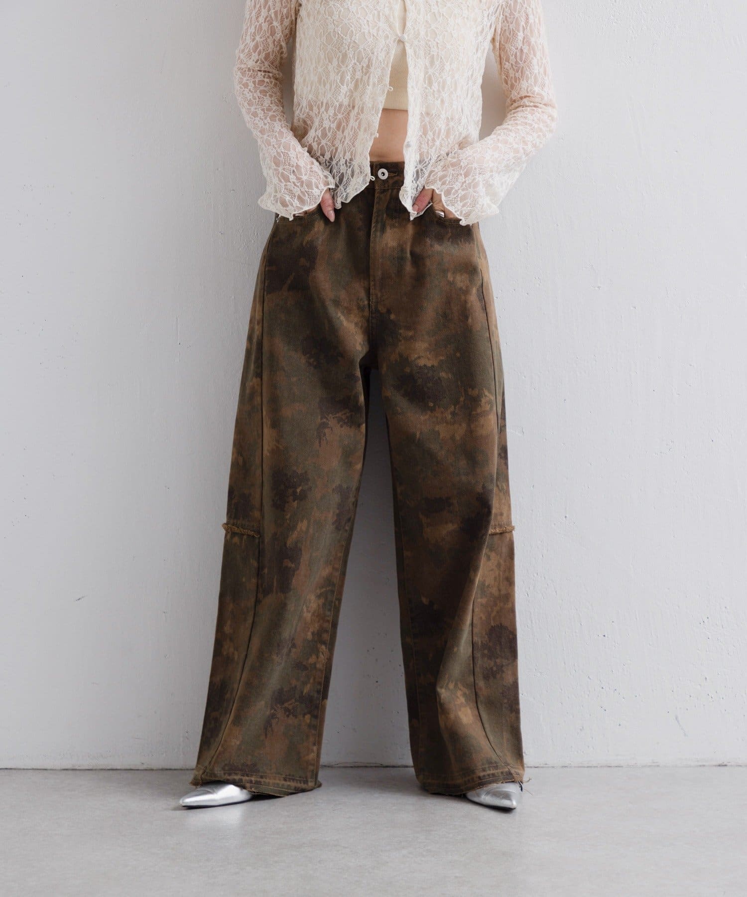 味わい深いカモフラージュ柄が印象的なミリタリーカモパンツ。