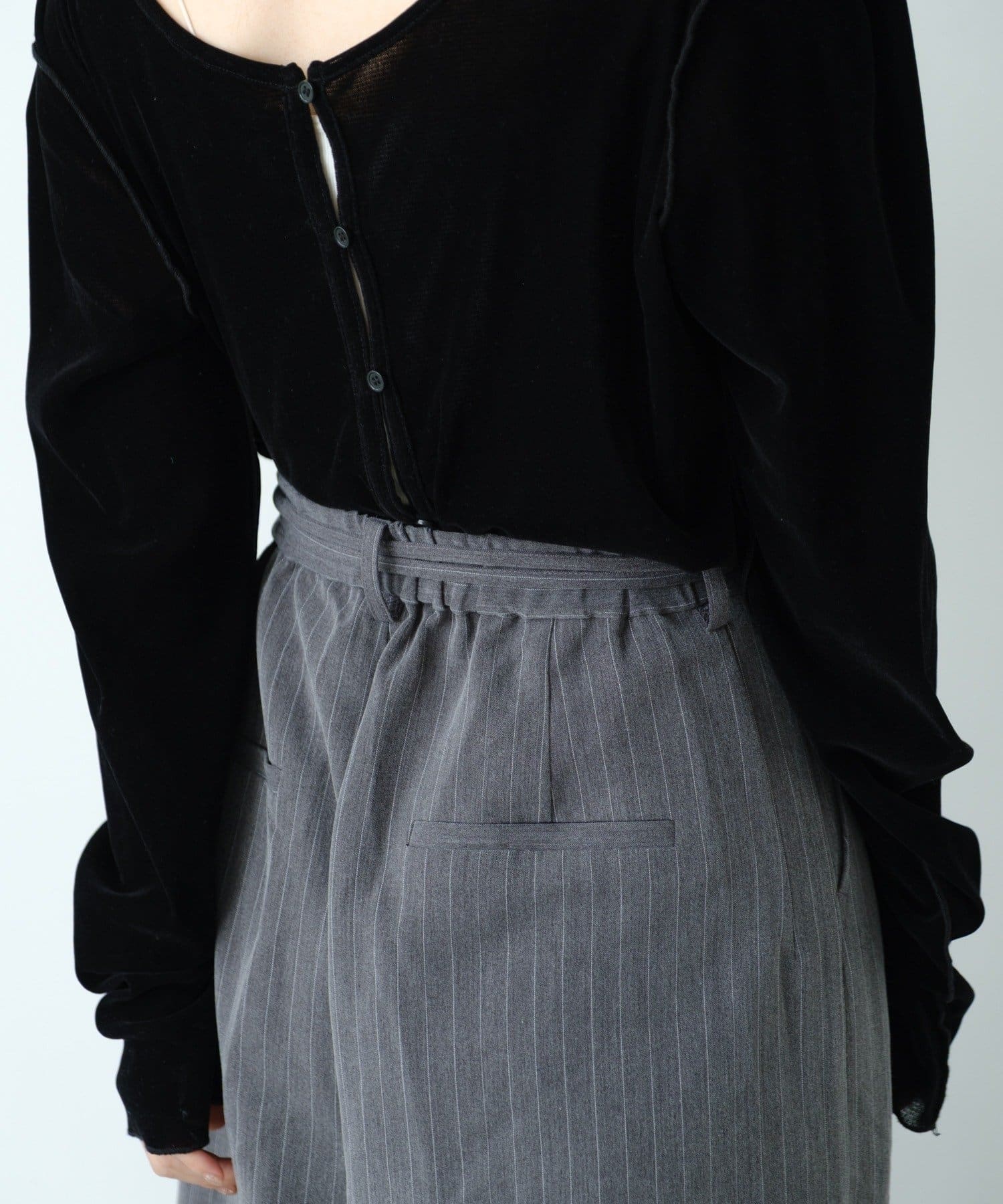 購入場所:店舗お店で試着して買うことにしました!尻のラインが見えないのとシルエットが綺麗なので買いました!リボンがついてるところも可愛くてお気に入りです!グレーのストライプとも迷いましたが、使っている素材を見てネイビーの方が毛玉が出来にくいようなのでネイビーのストライプにしました!