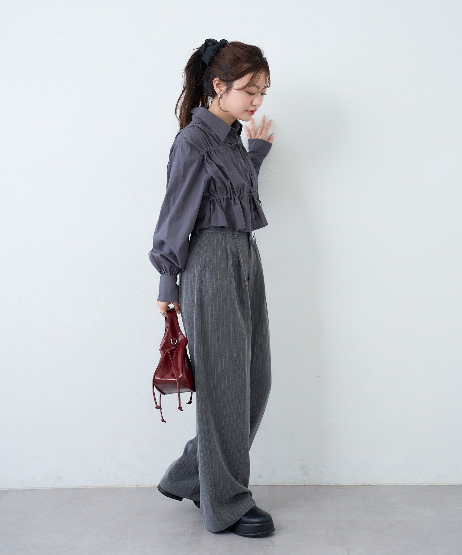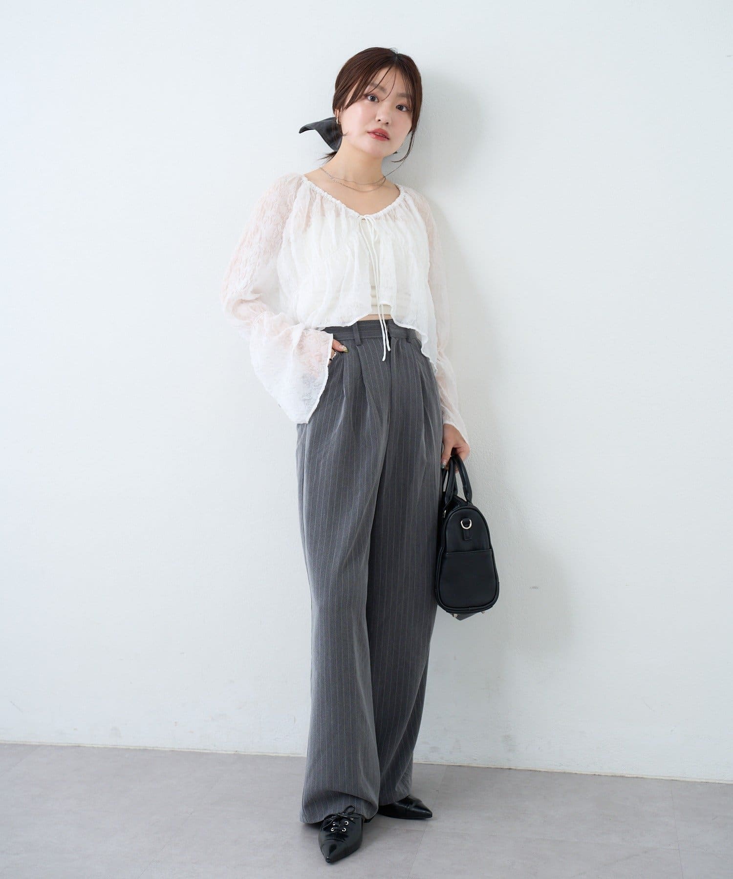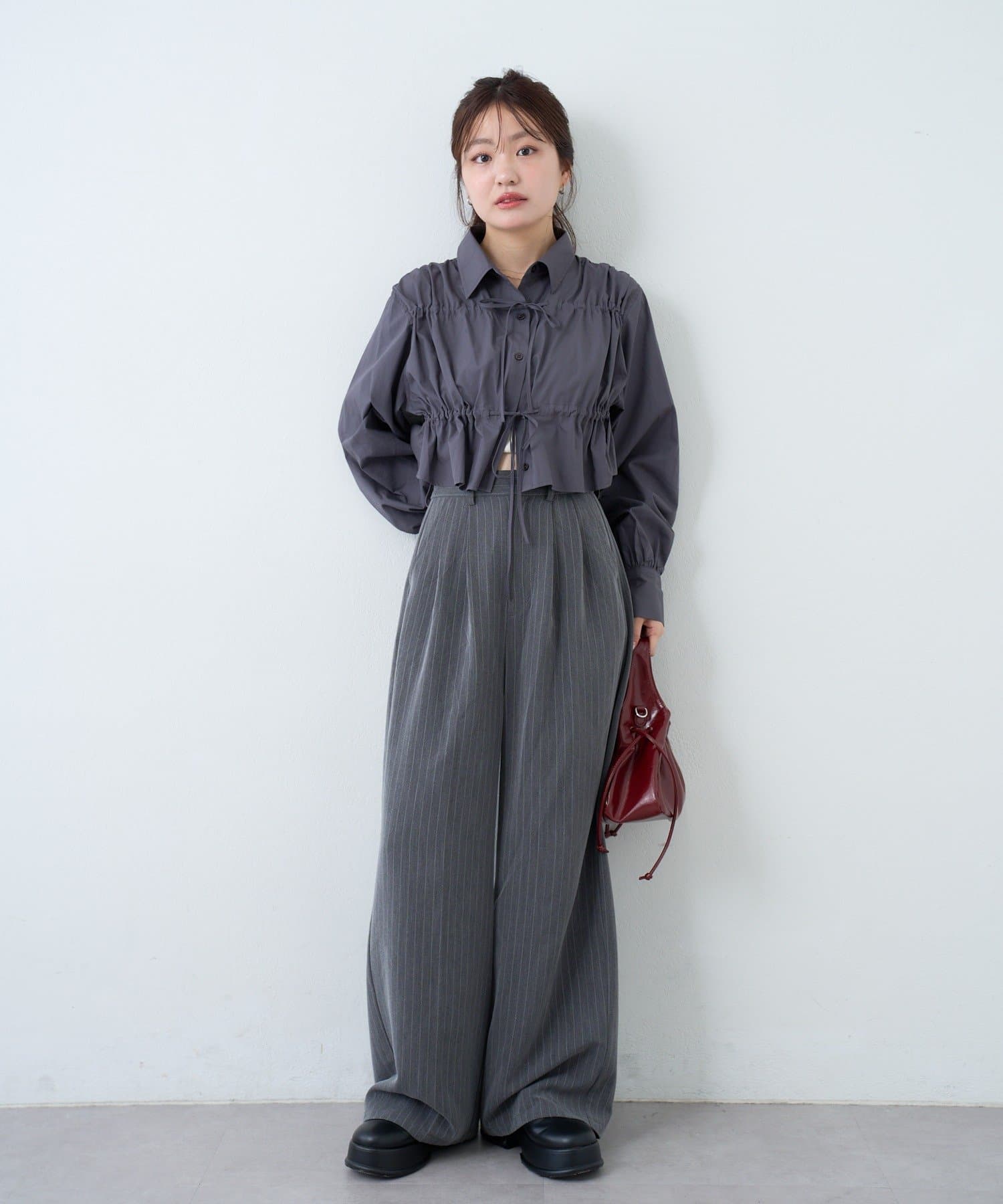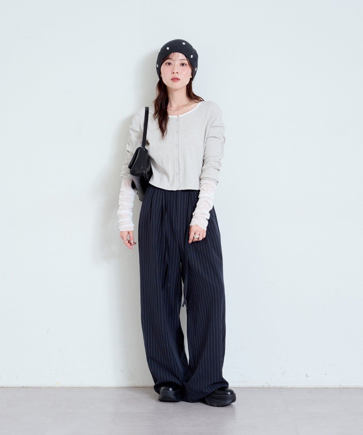 グレーなので、甘めのトップスと合わせても可愛いです!