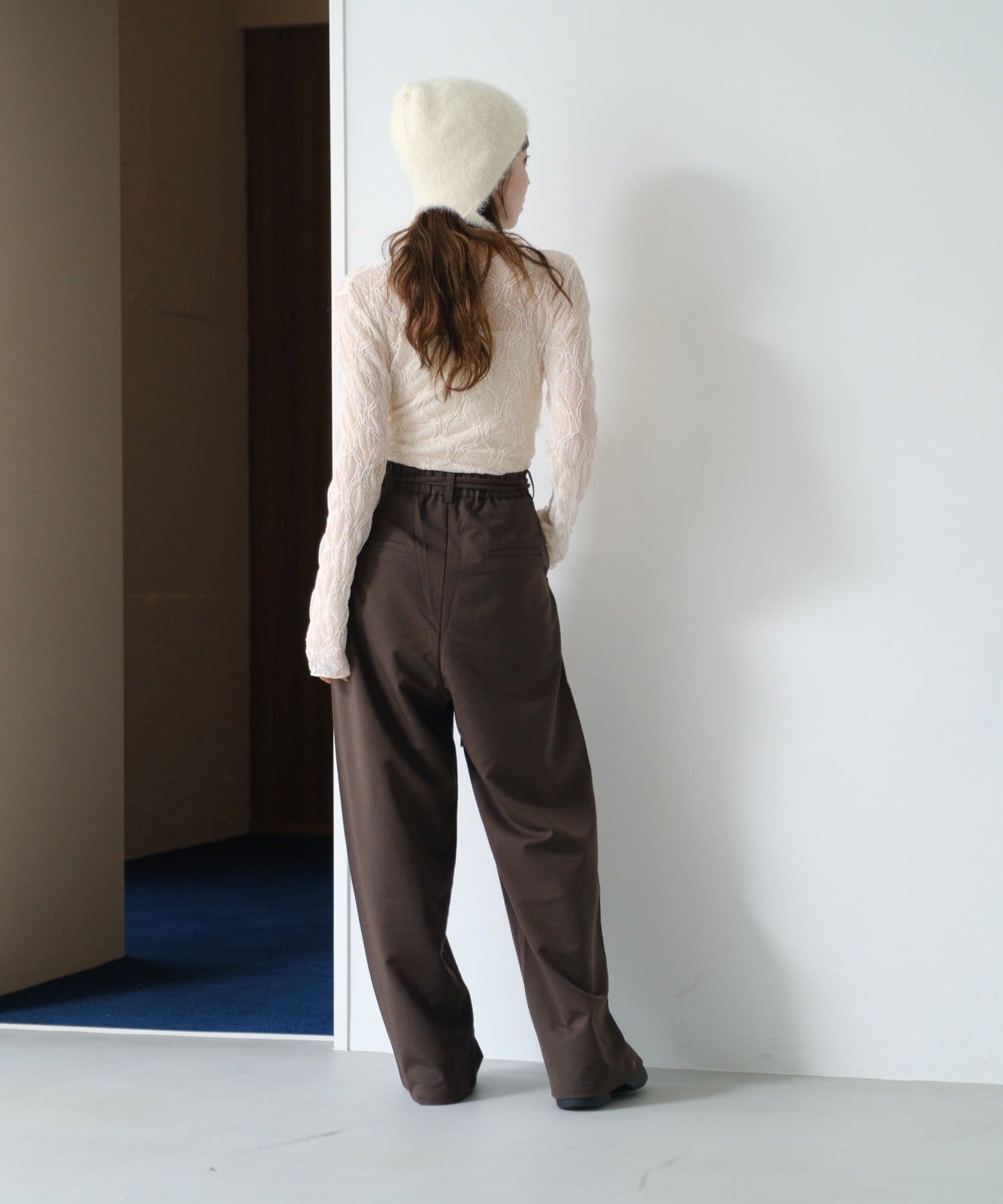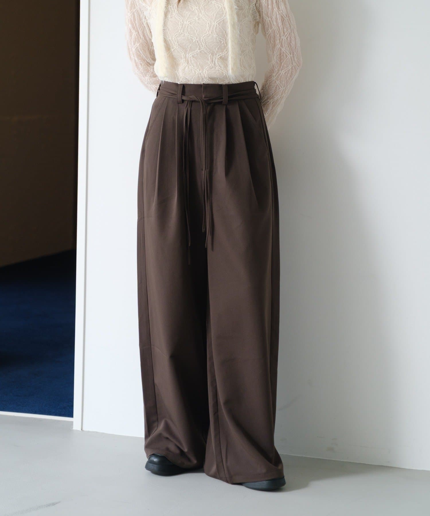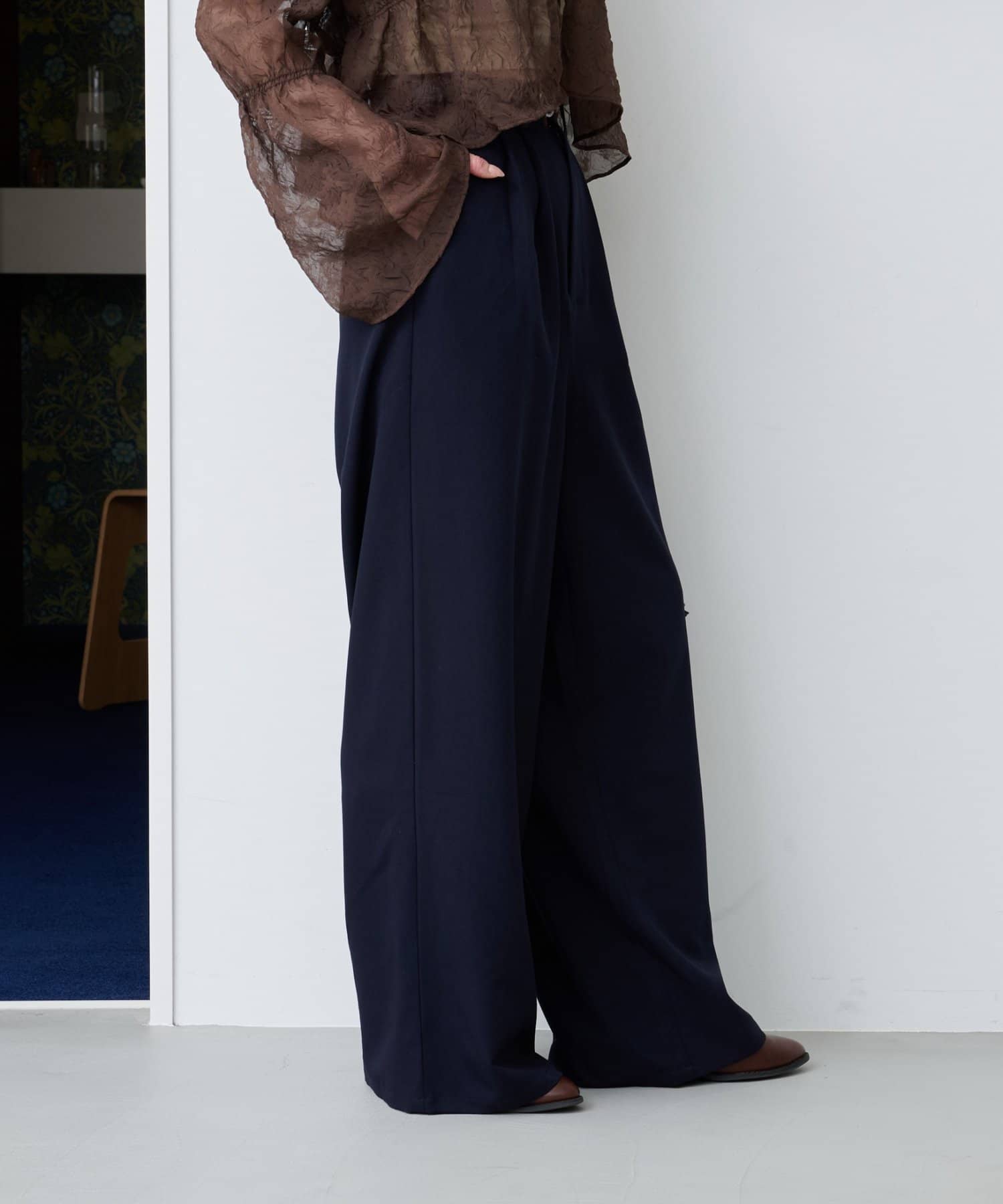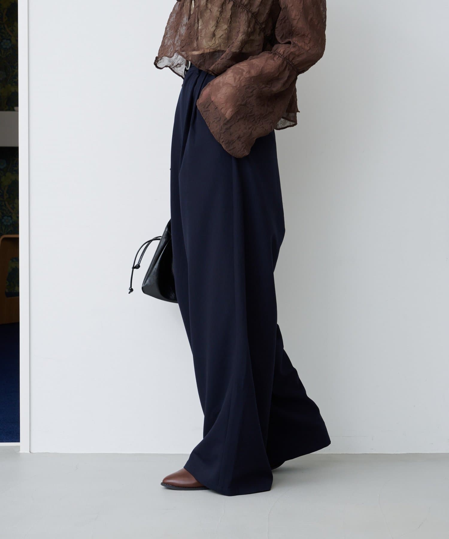 ワイドなシルエットと落ち感のある素材が、大人の余裕を感じさせる一着です。