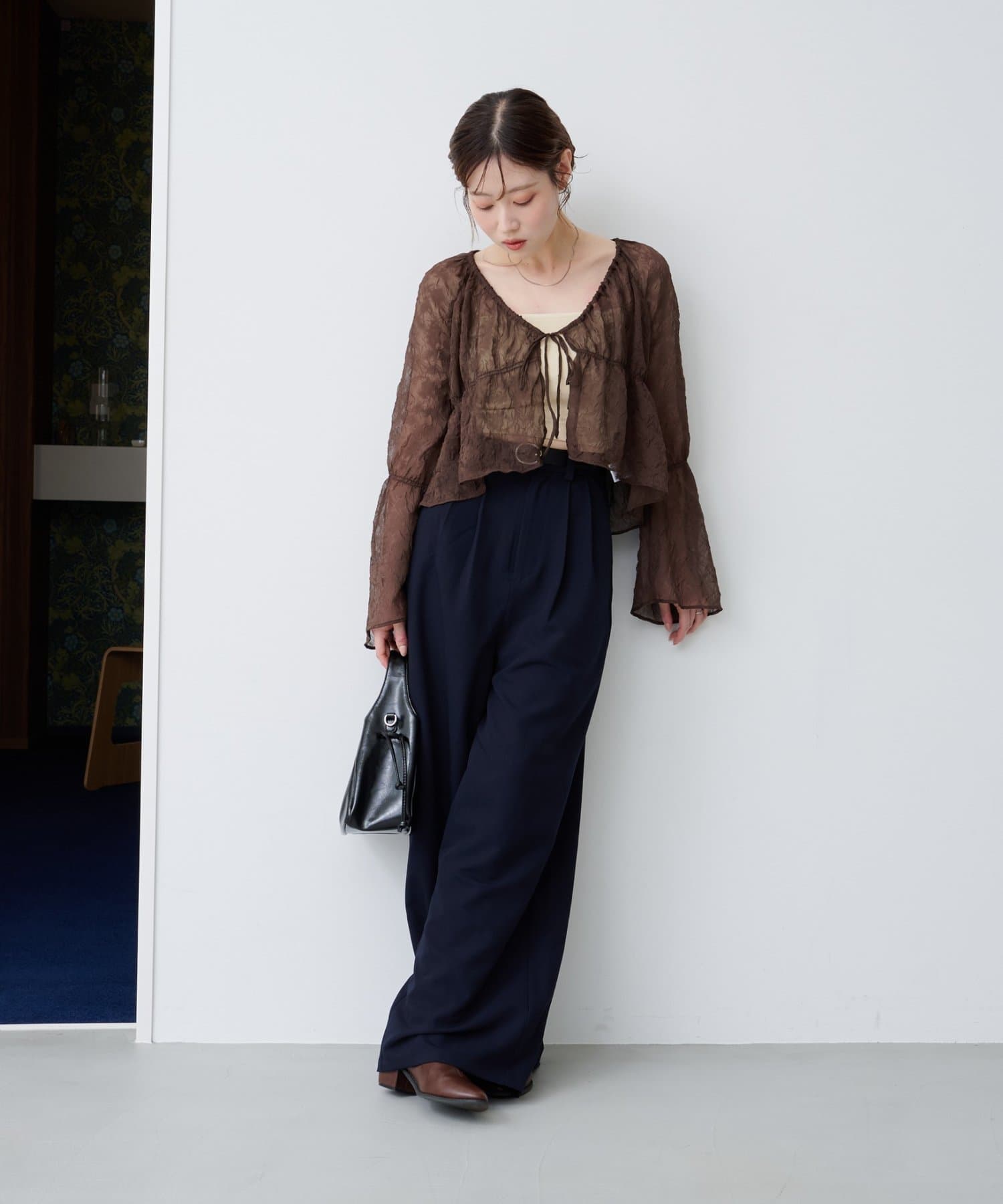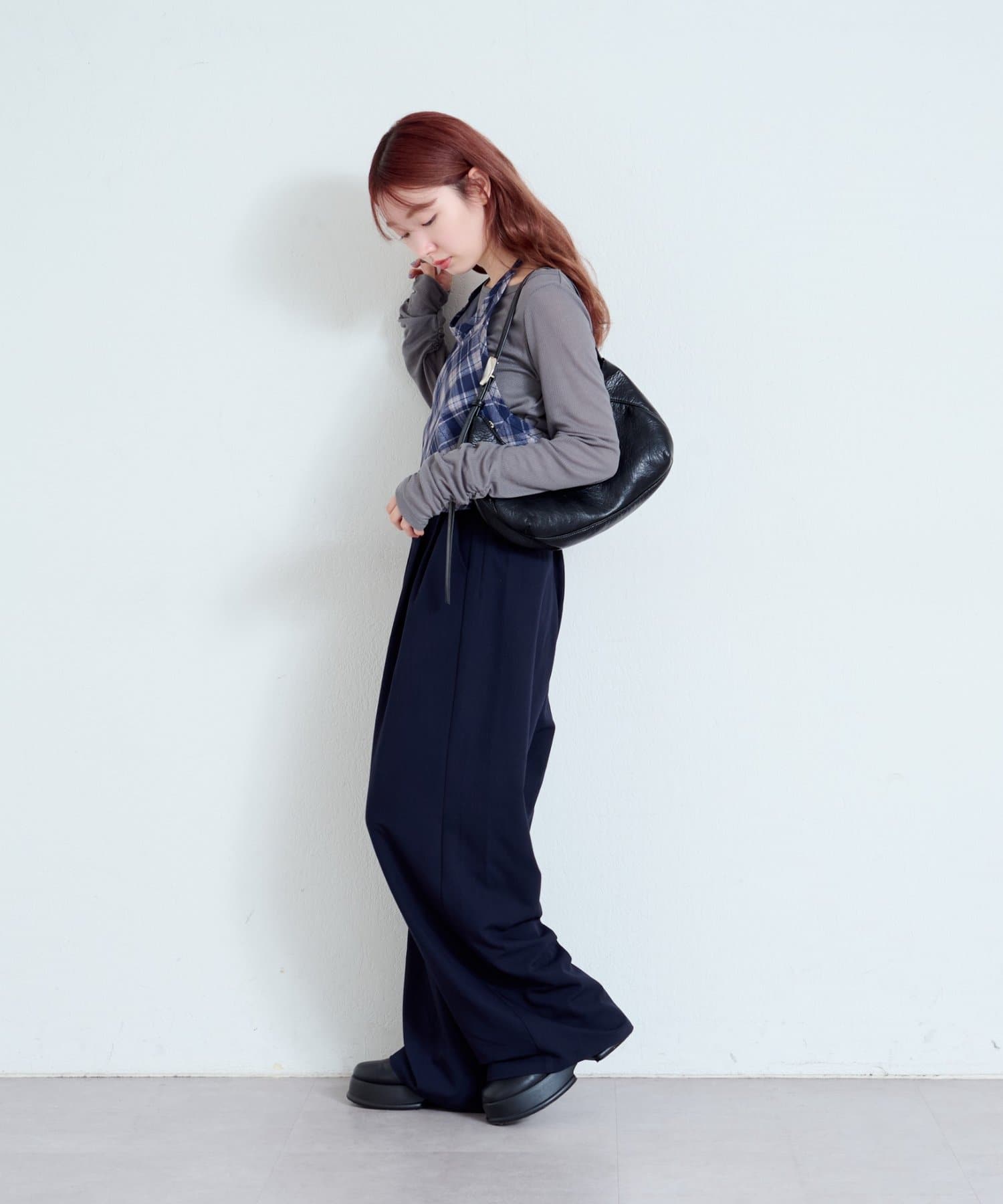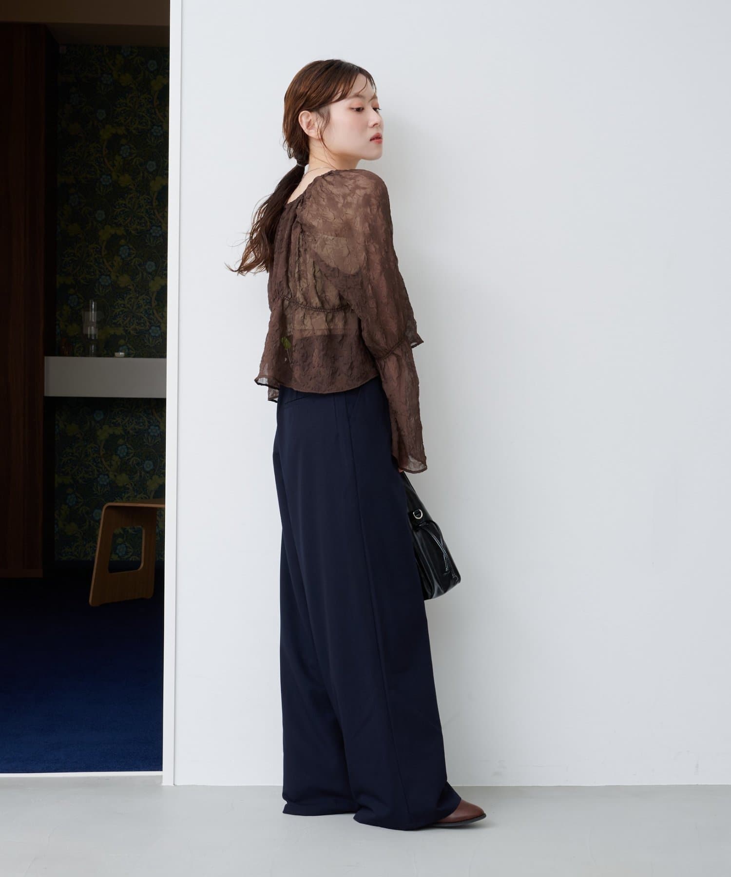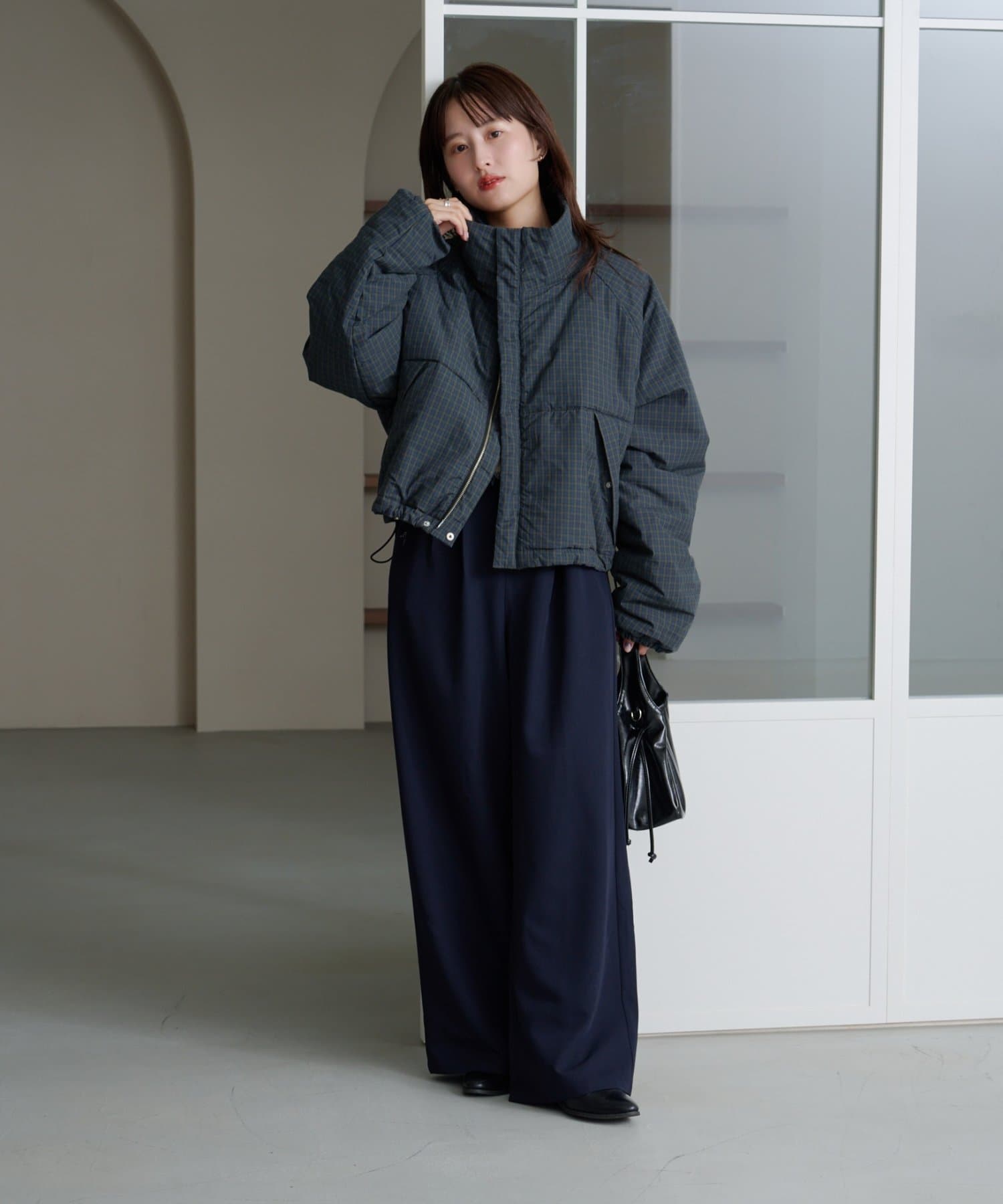 ワイドなシルエットと落ち感のある素材が、大人の余裕を感じさせる一着です。