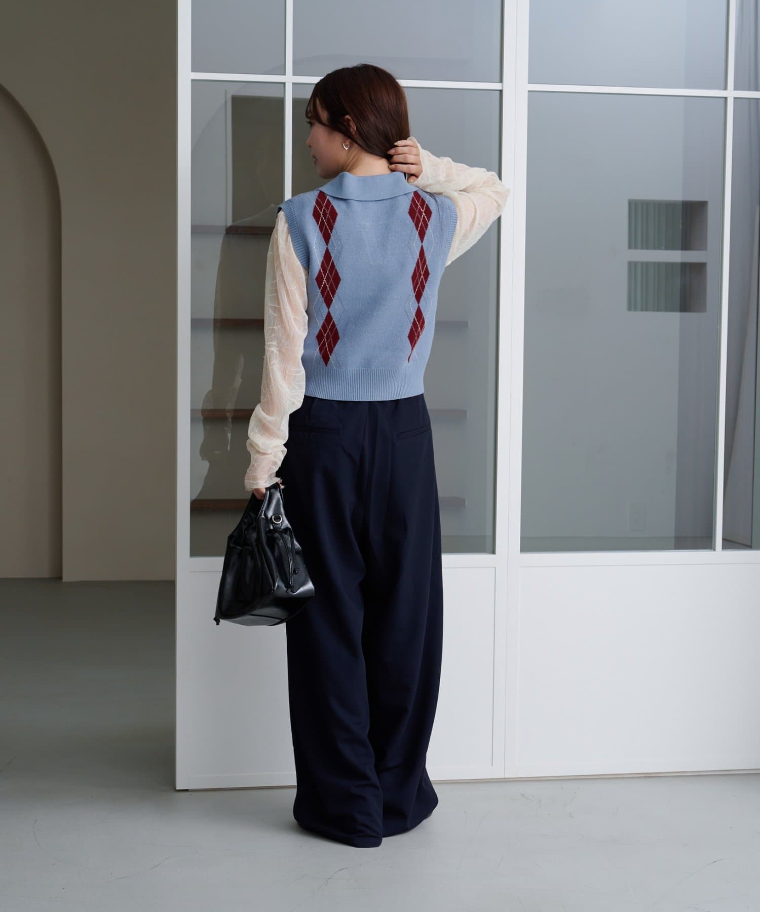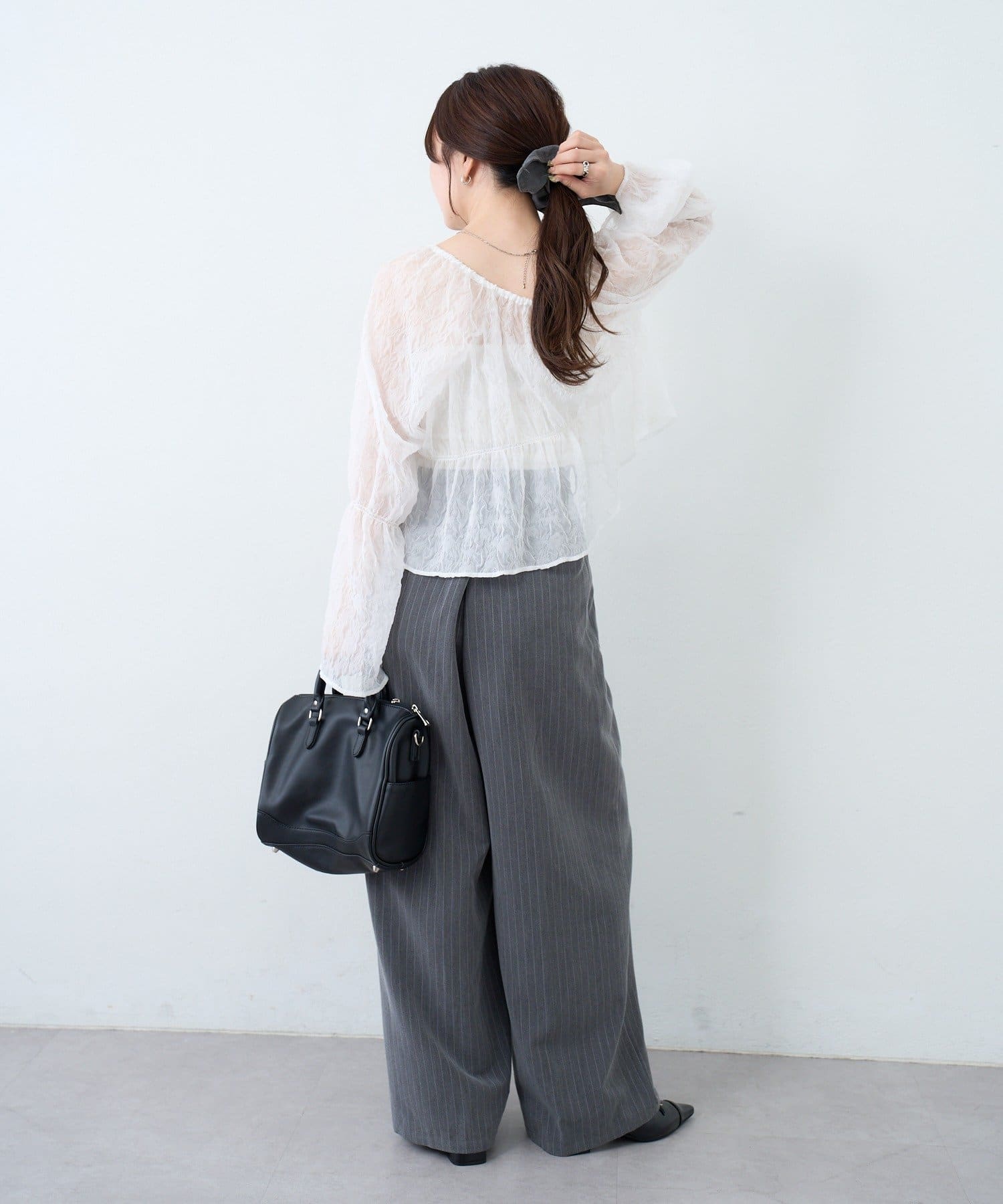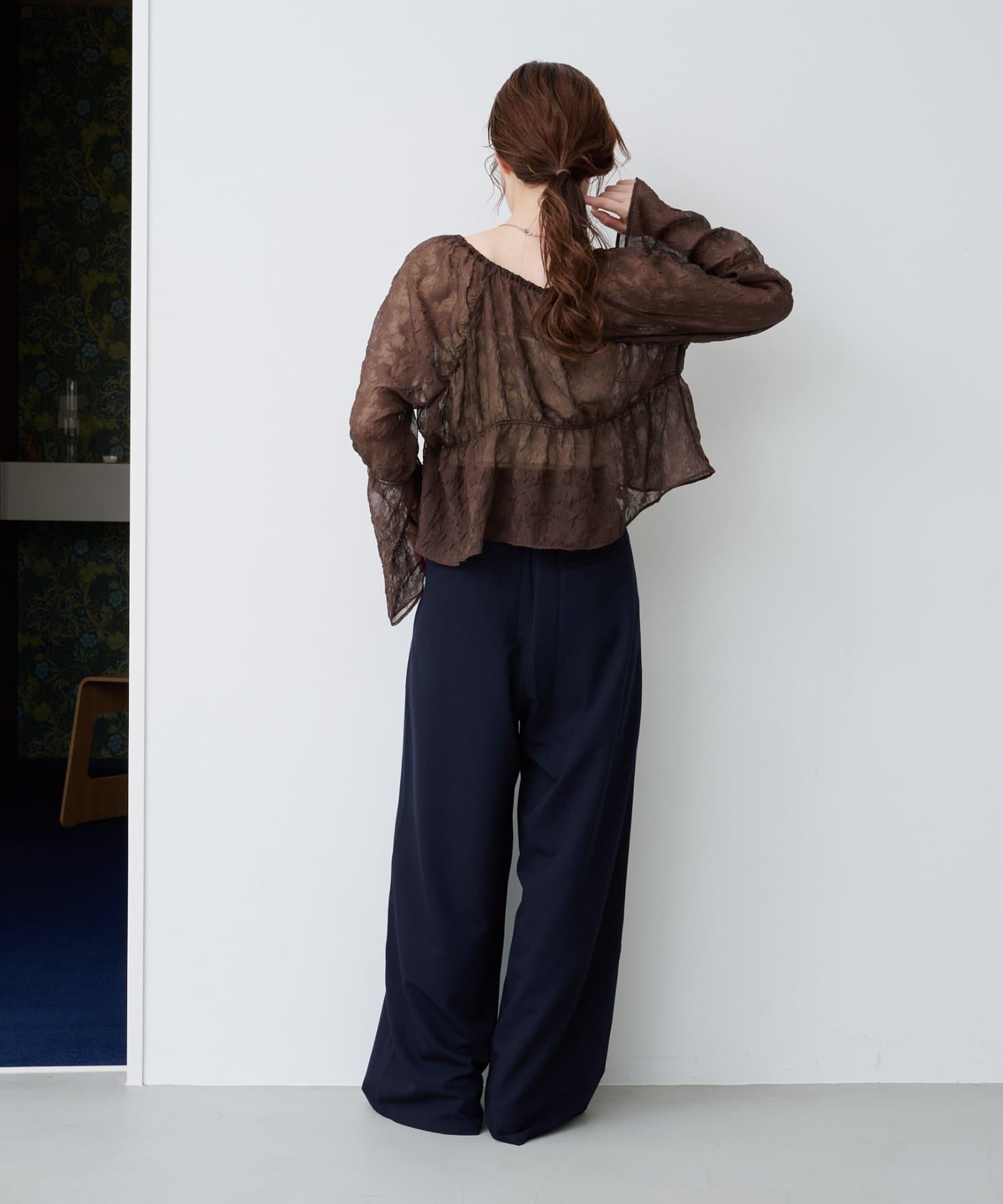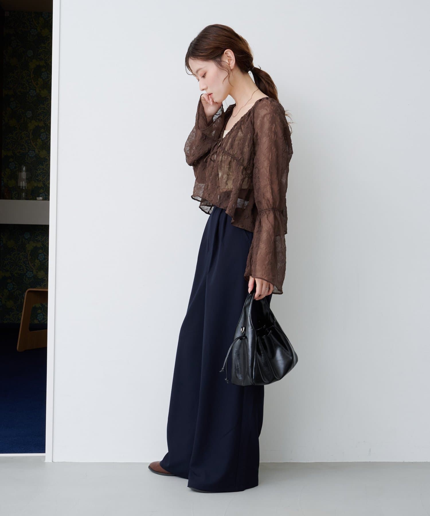 ワイドなシルエットと落ち感のある素材が、大人の余裕を感じさせる一着です。