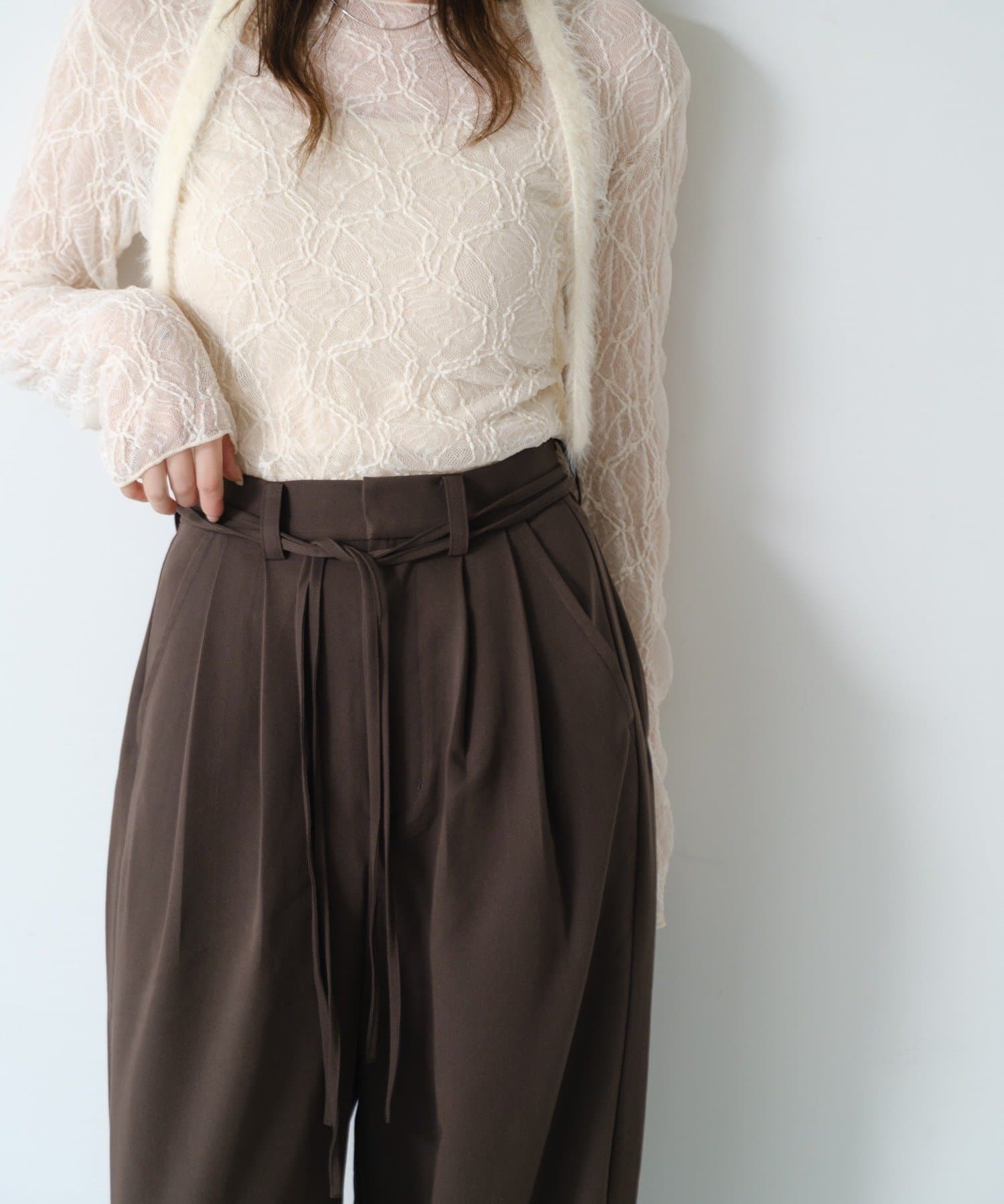 購入場所:店舗リボンがウエストにあるのでデザイン性があってとってもかわいいです!ブラウンの色味もココアっぽくてお気に入りです。たくさん履きます!