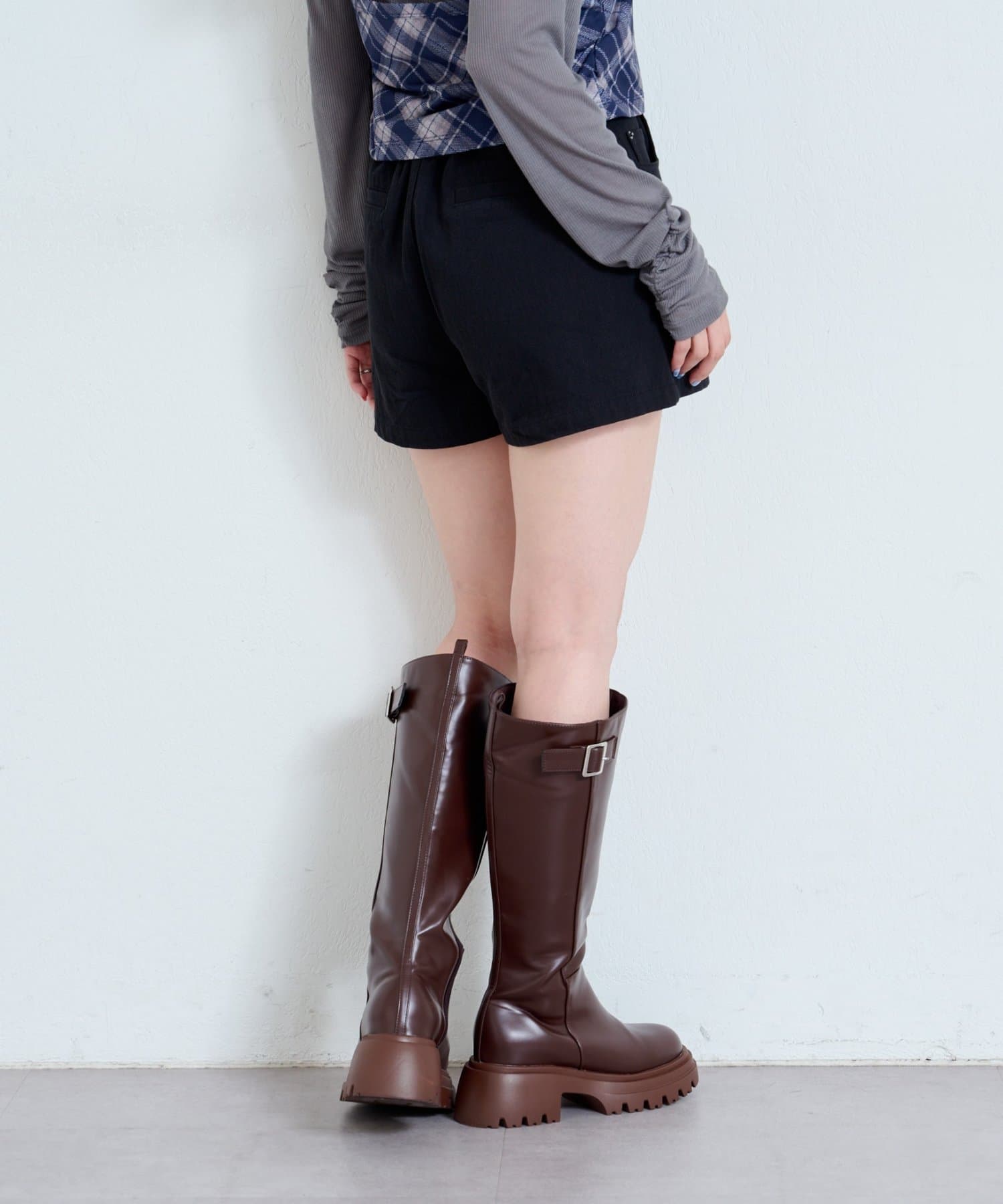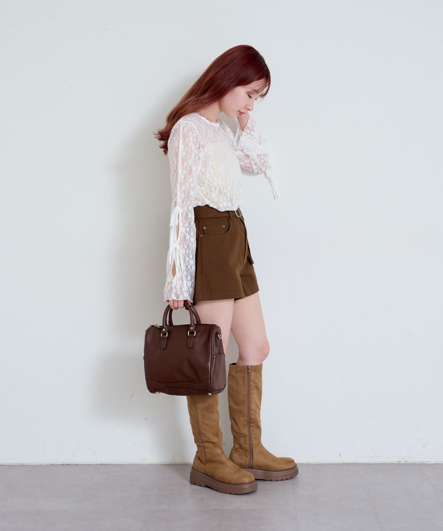 ベルトデザインがスタイリングのポイントになり、シンプルなトップスに合わせるだけでこなれ感が出ます。