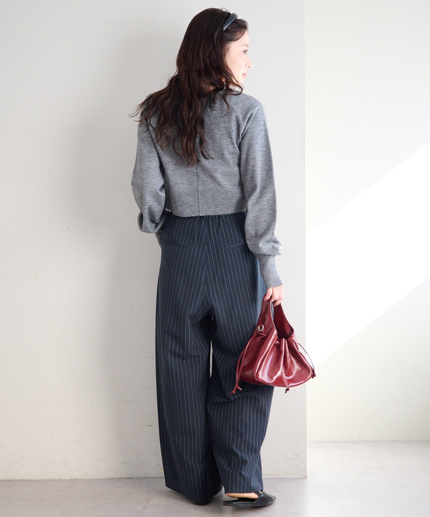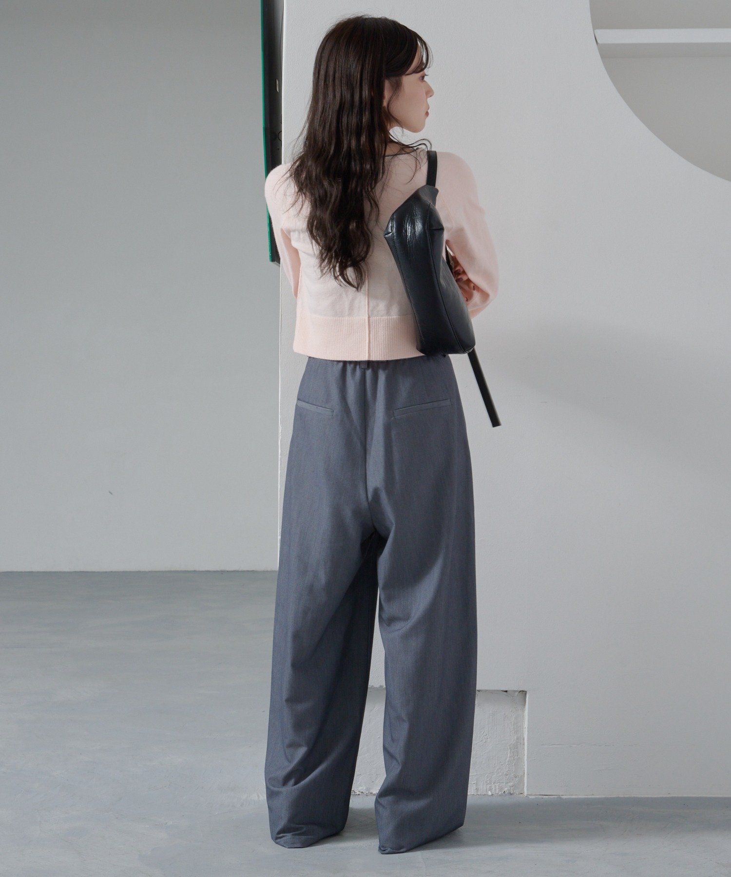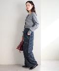 ハイウエストデニムやスラックスと合わせてシンプルに。