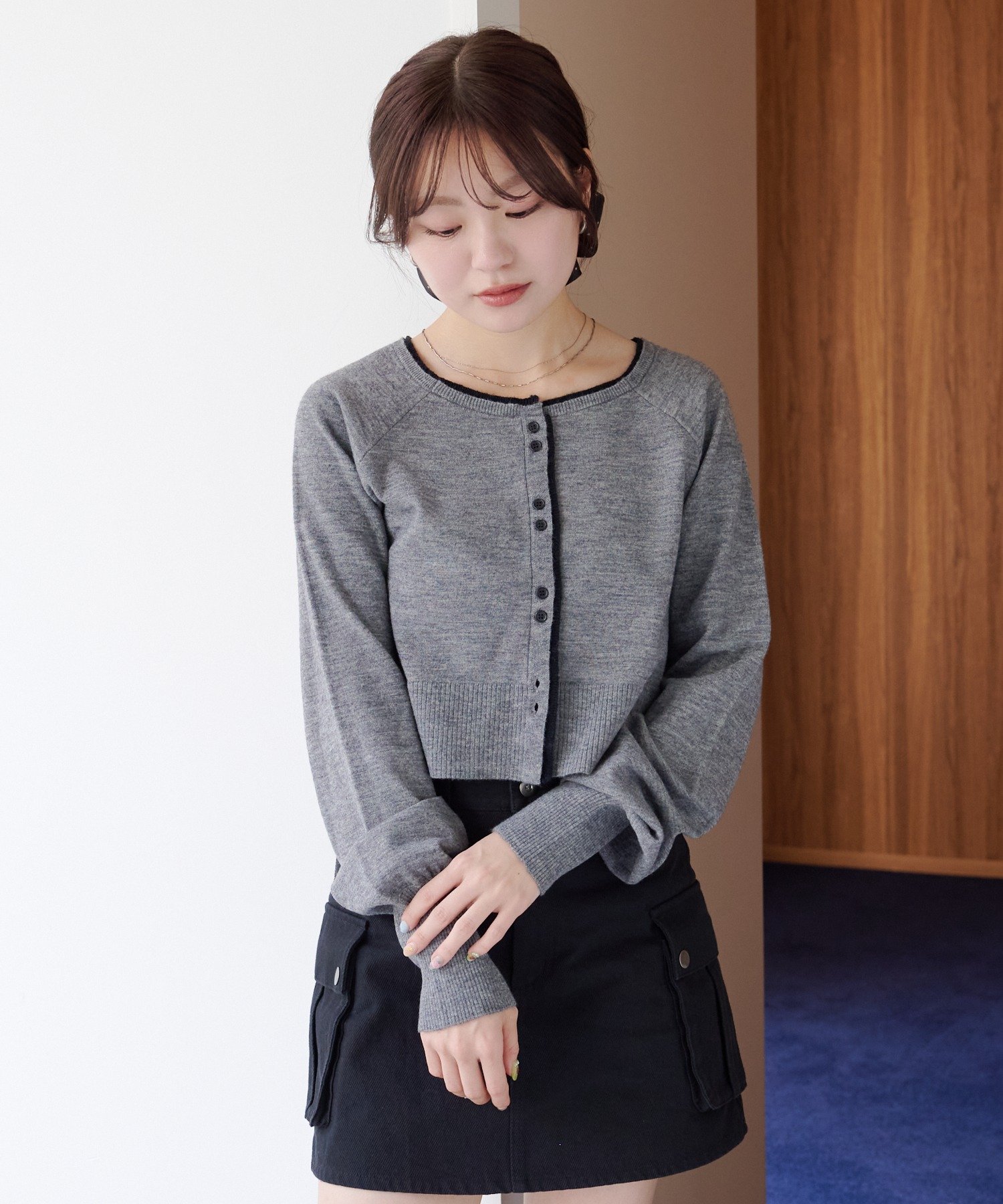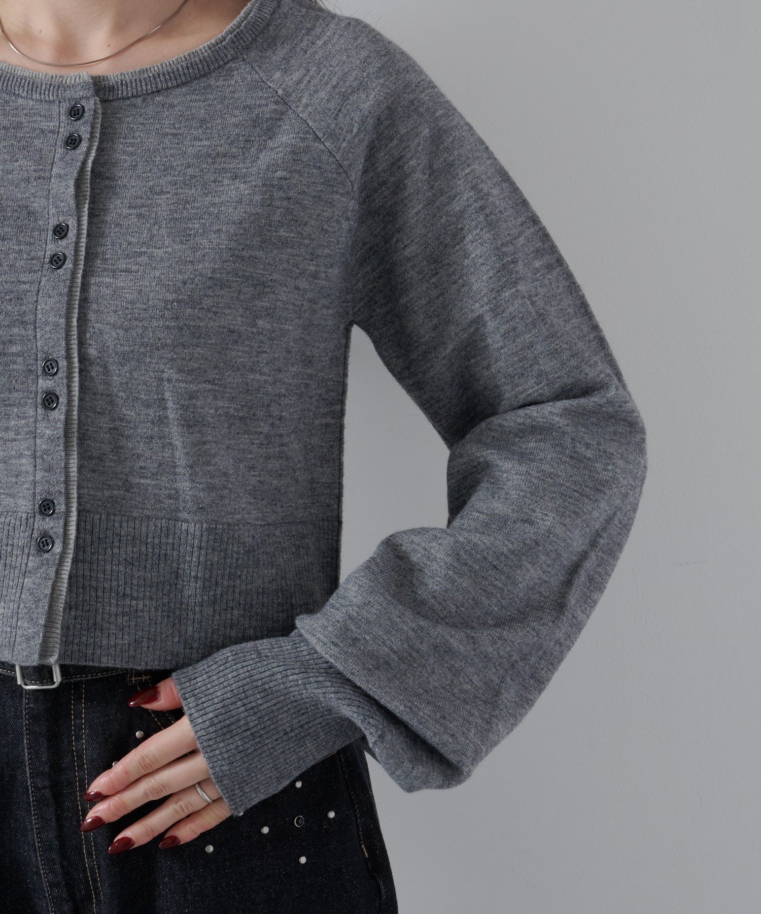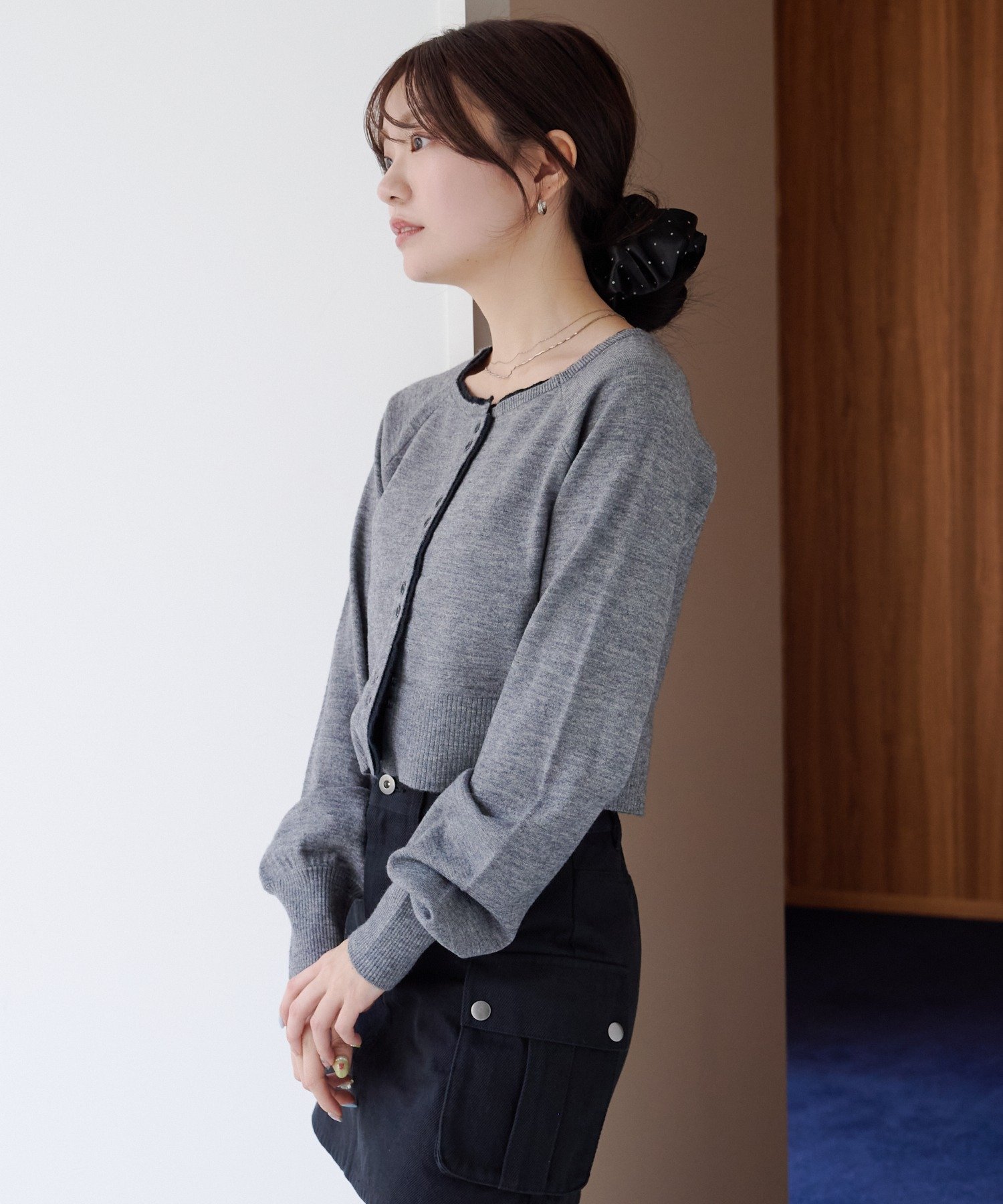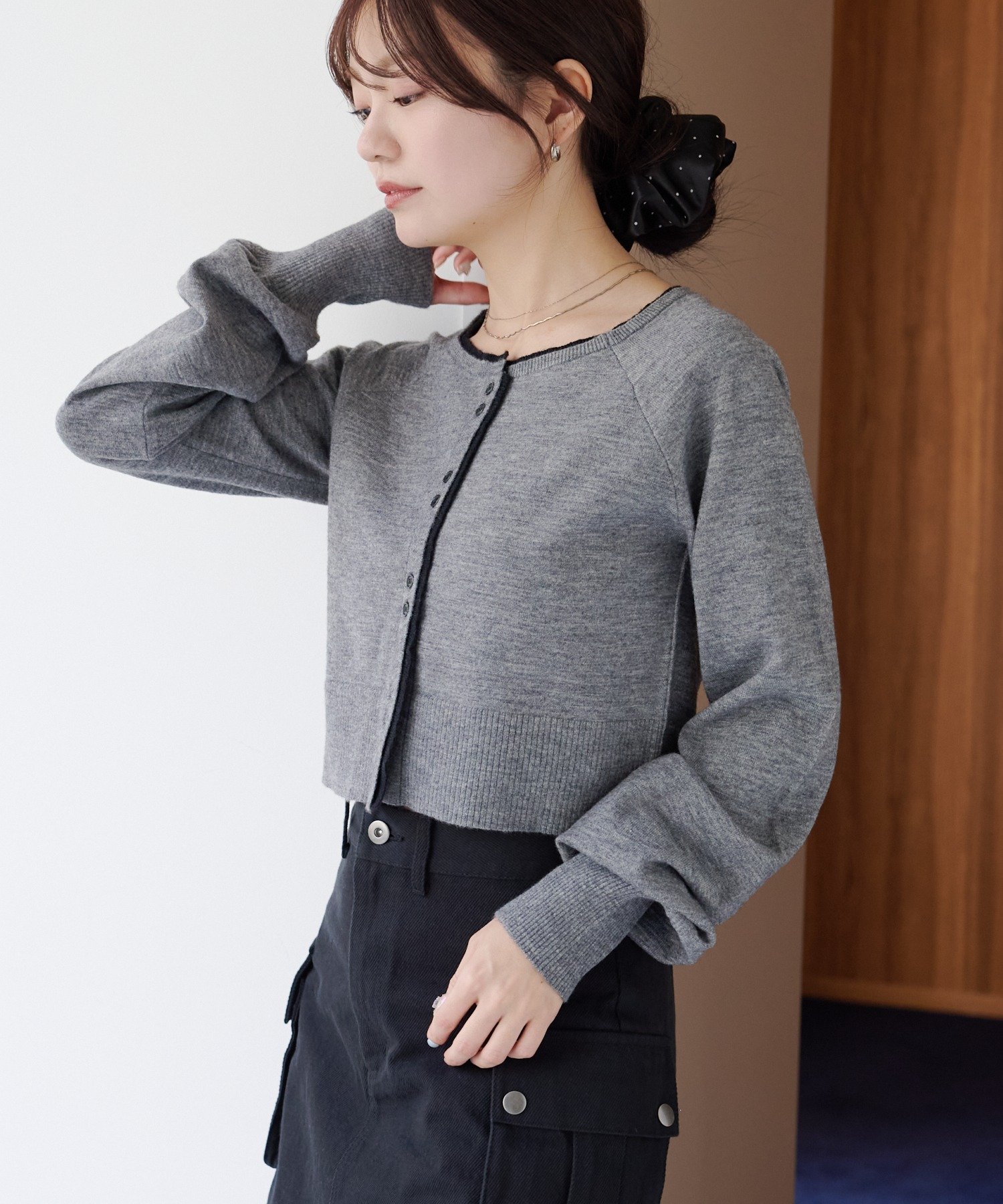 程よく短めの丈感でスタイルアップも叶い、羽織りとしてもトップスとしても使える万能アイテムです。