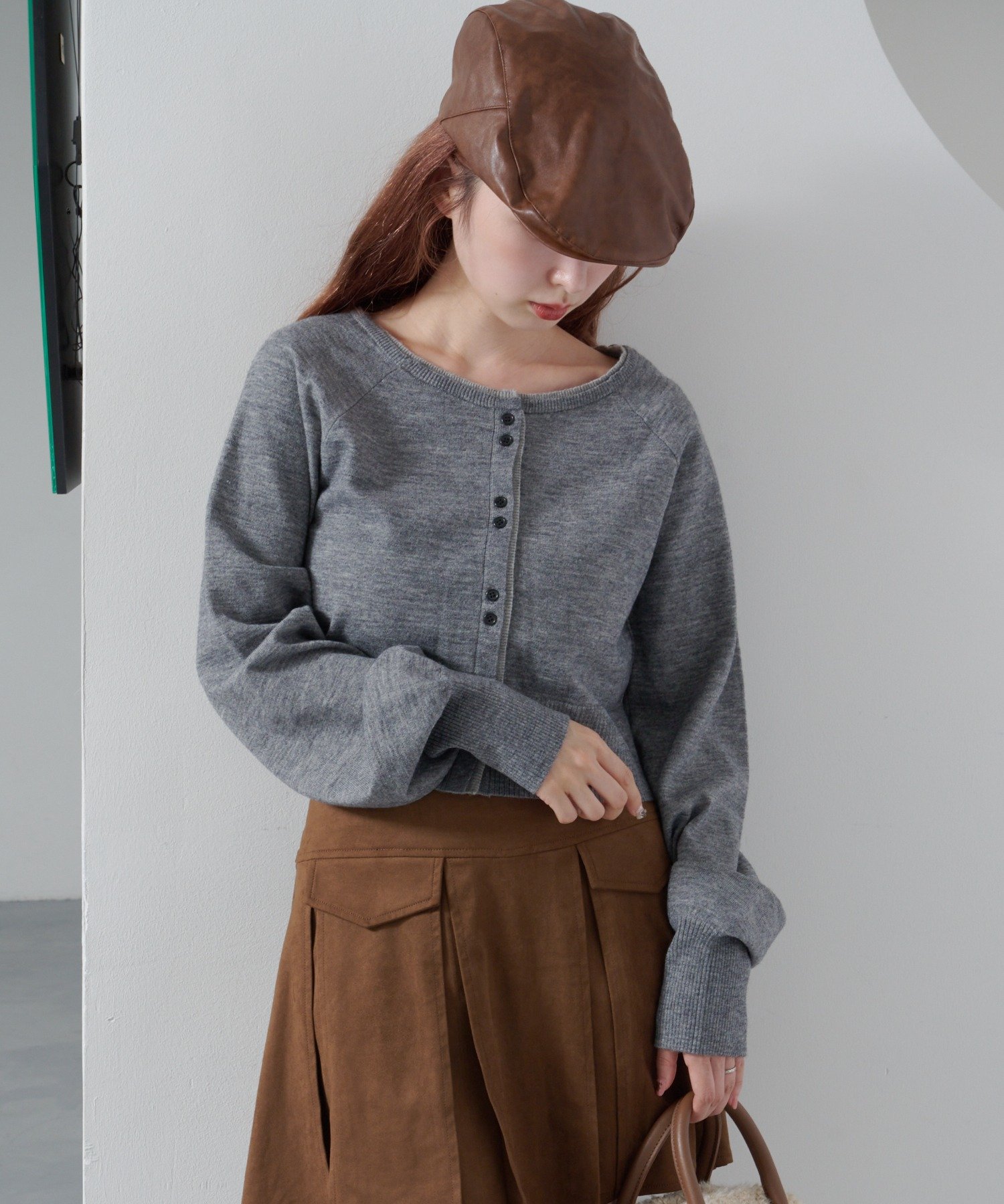 春先も着ていただきやすいニットです。