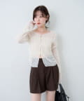 前開きのボタンデザインで、インナーとのレイヤードを楽しめるアイテムです。