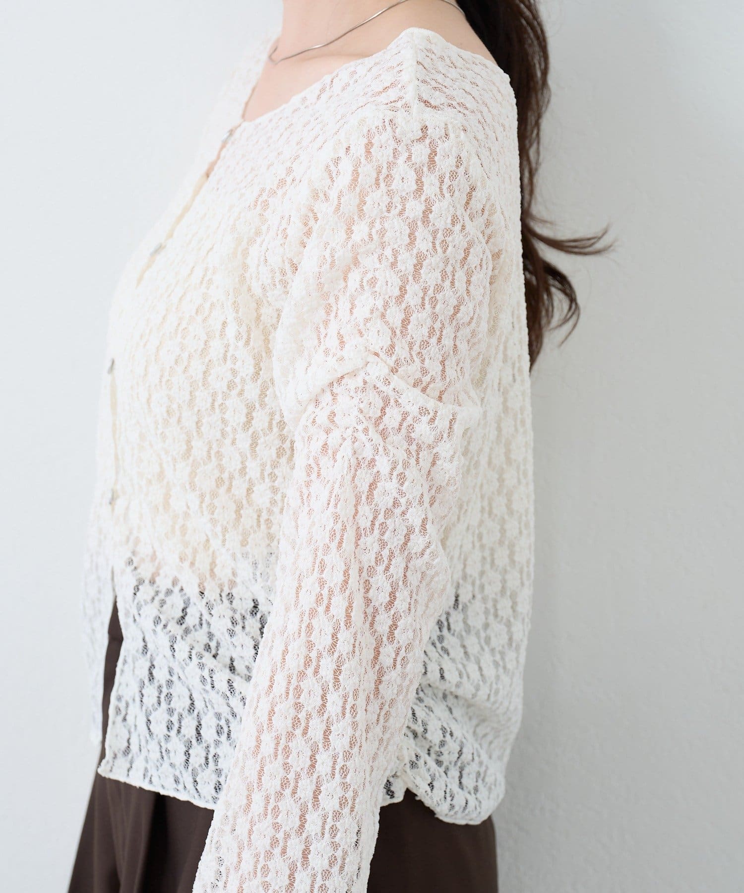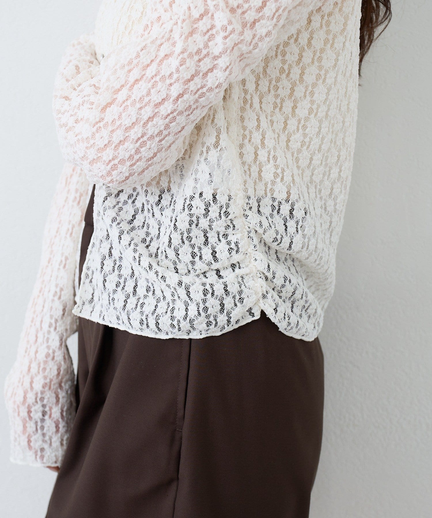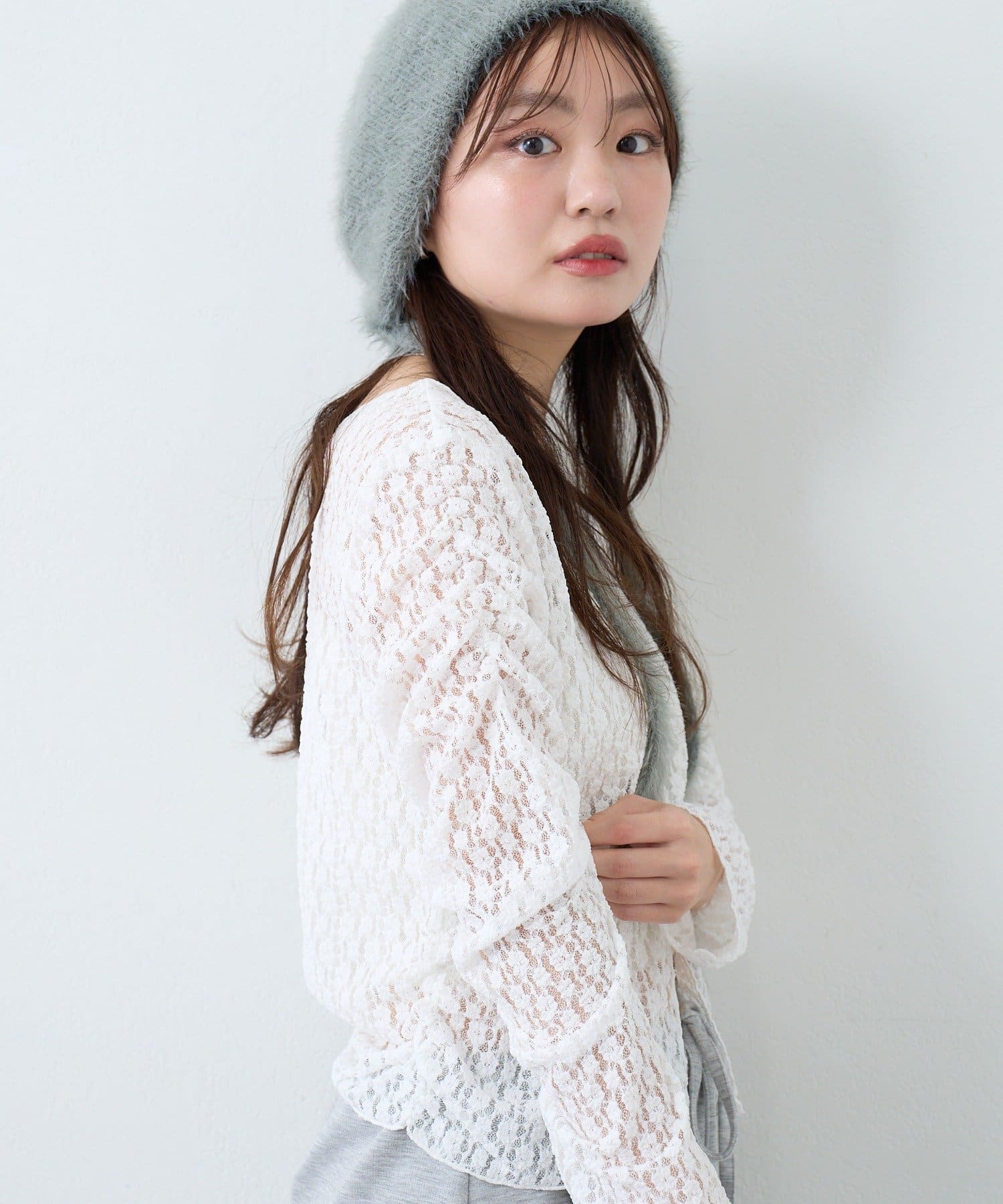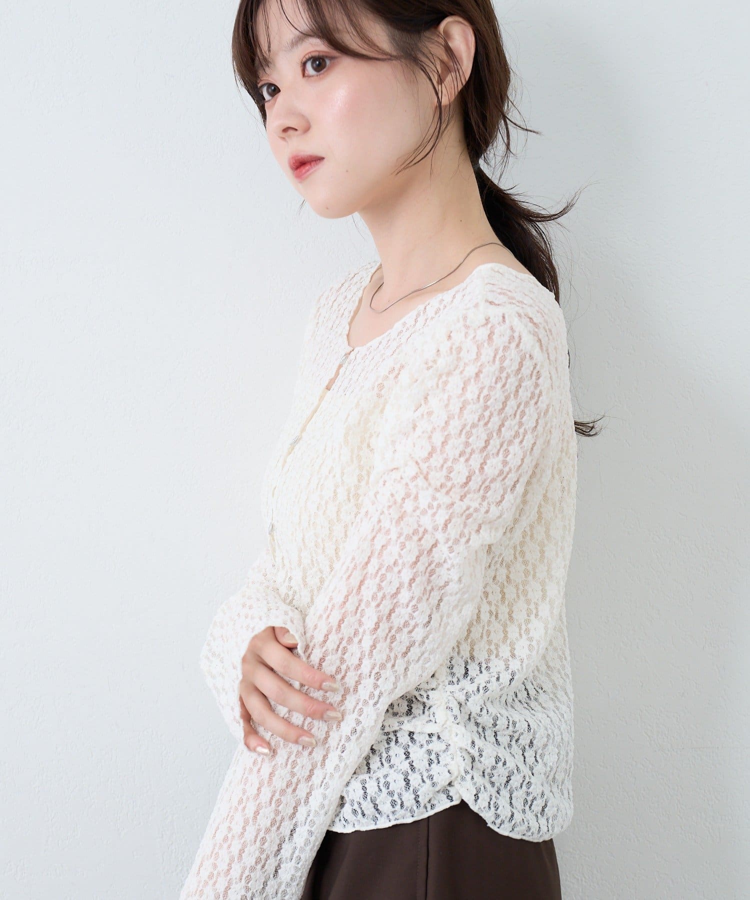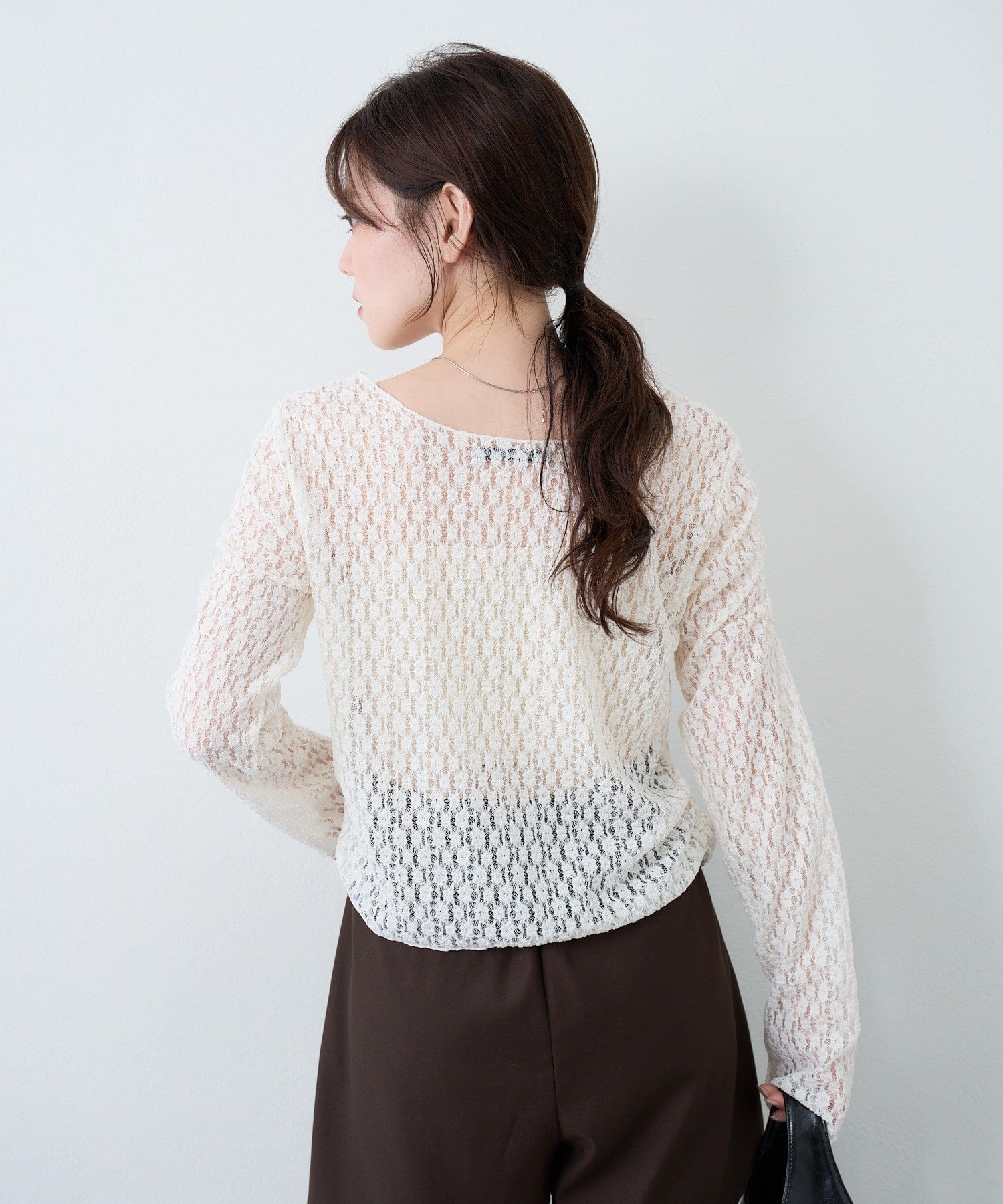 繊細な透け感が魅力の、大人フェミニンなレーストップス