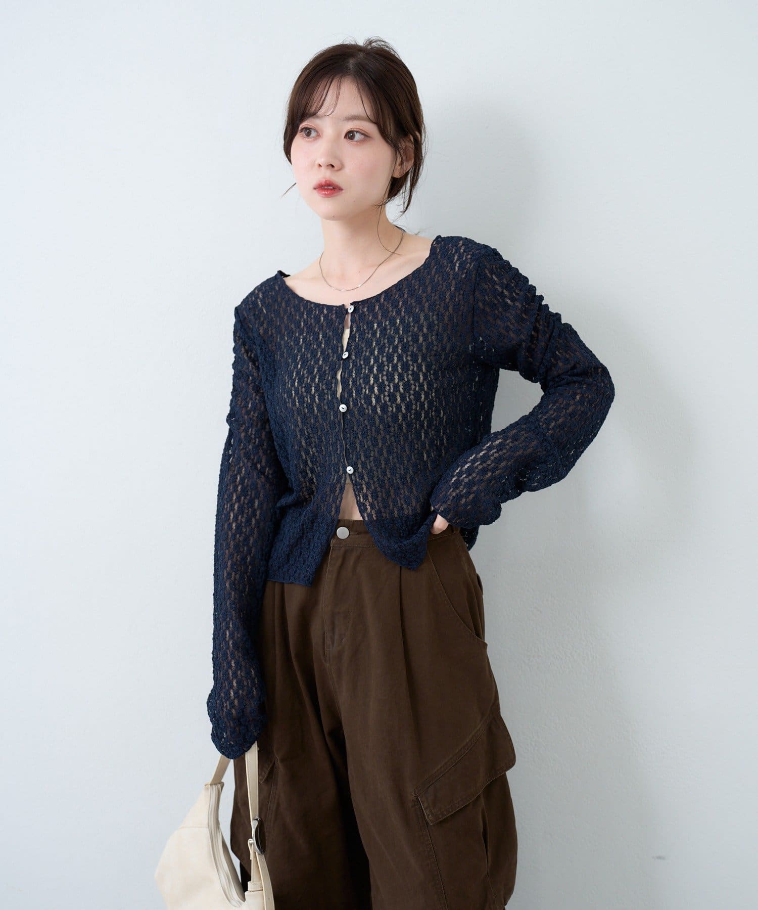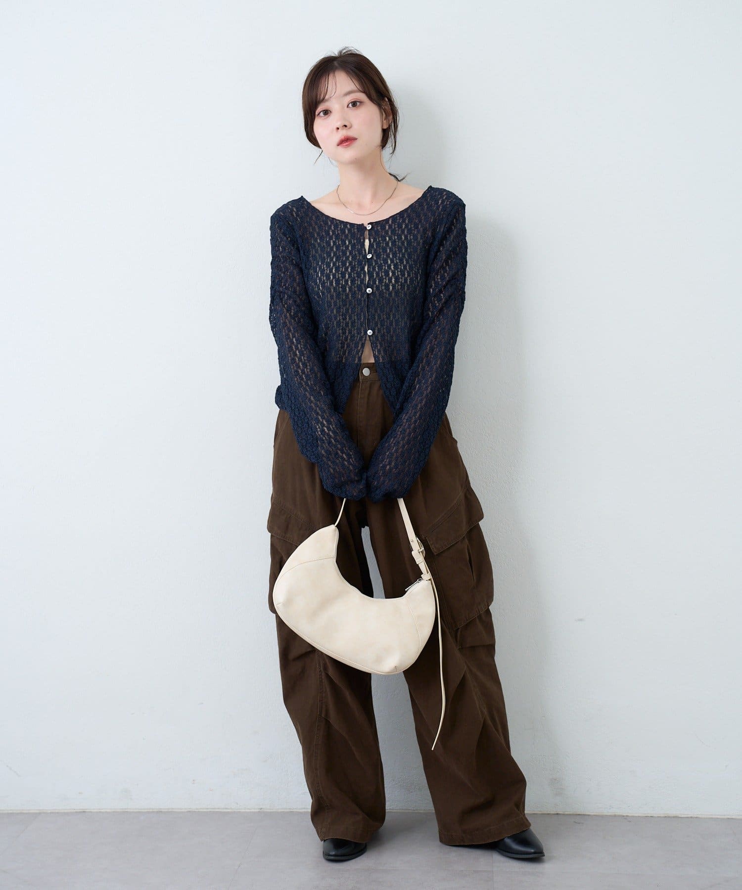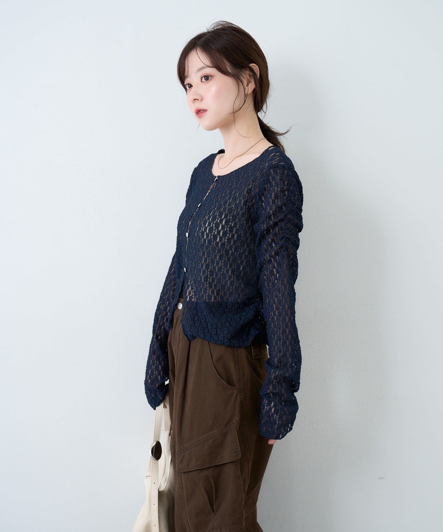 程よい透け感があり、インナーとのレイヤードを楽しめるのが特徴。
