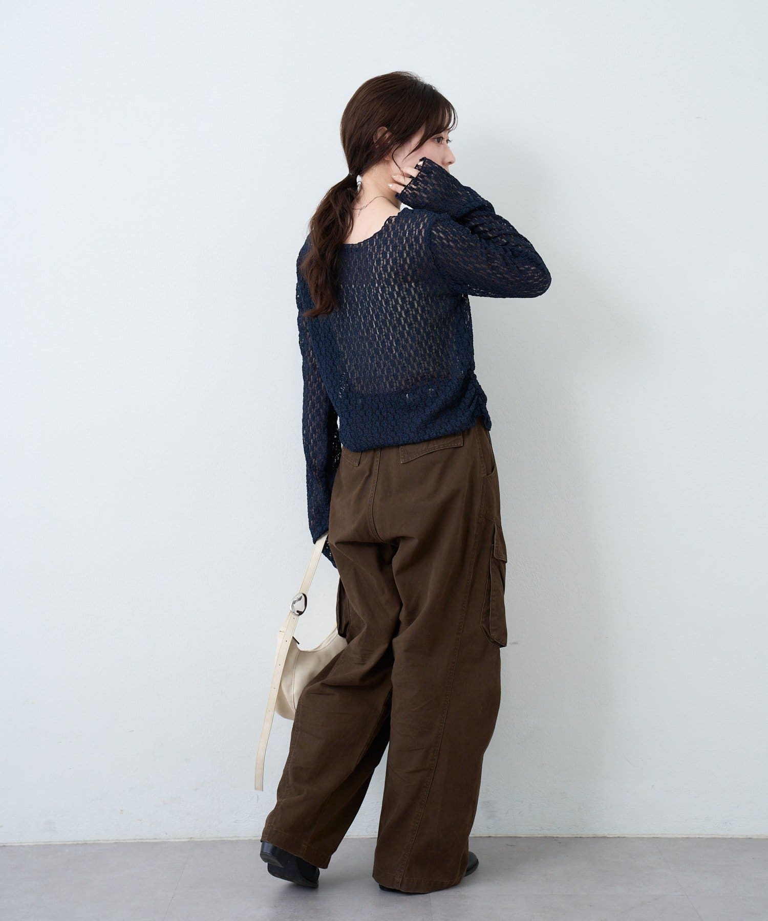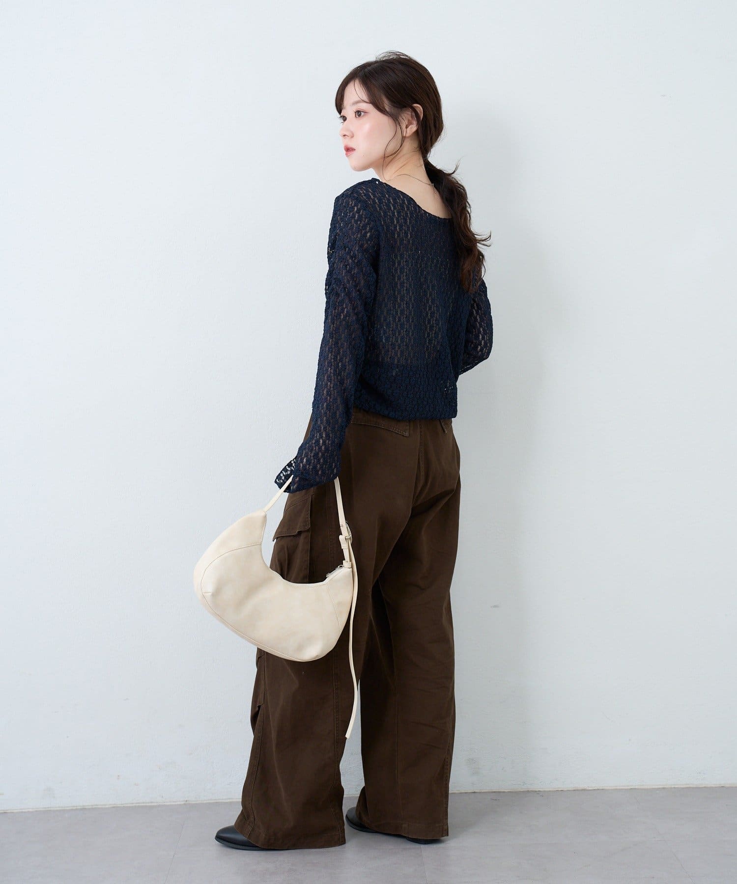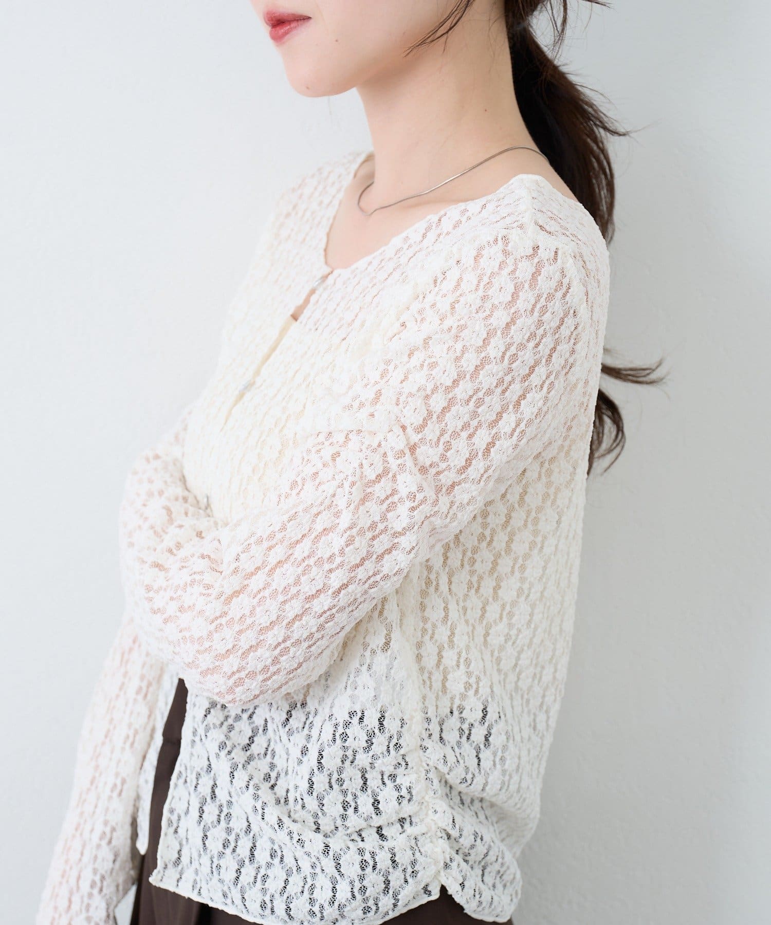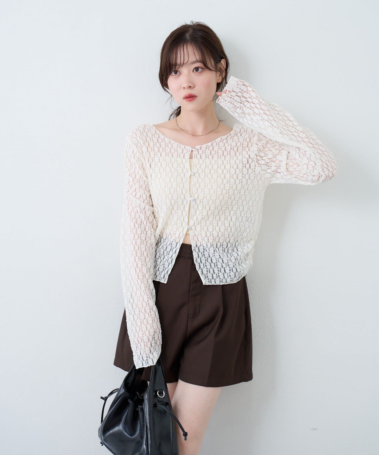 程よい透け感があり、インナーとのレイヤードを楽しめるのが特徴。