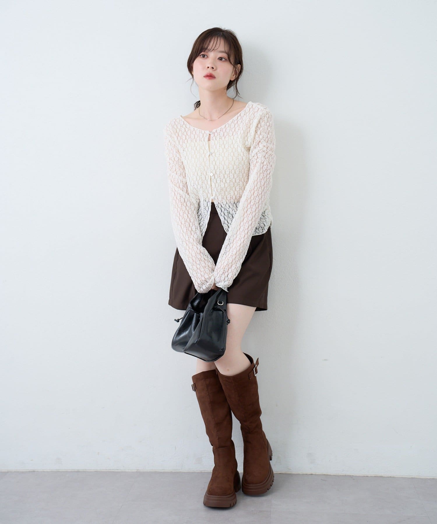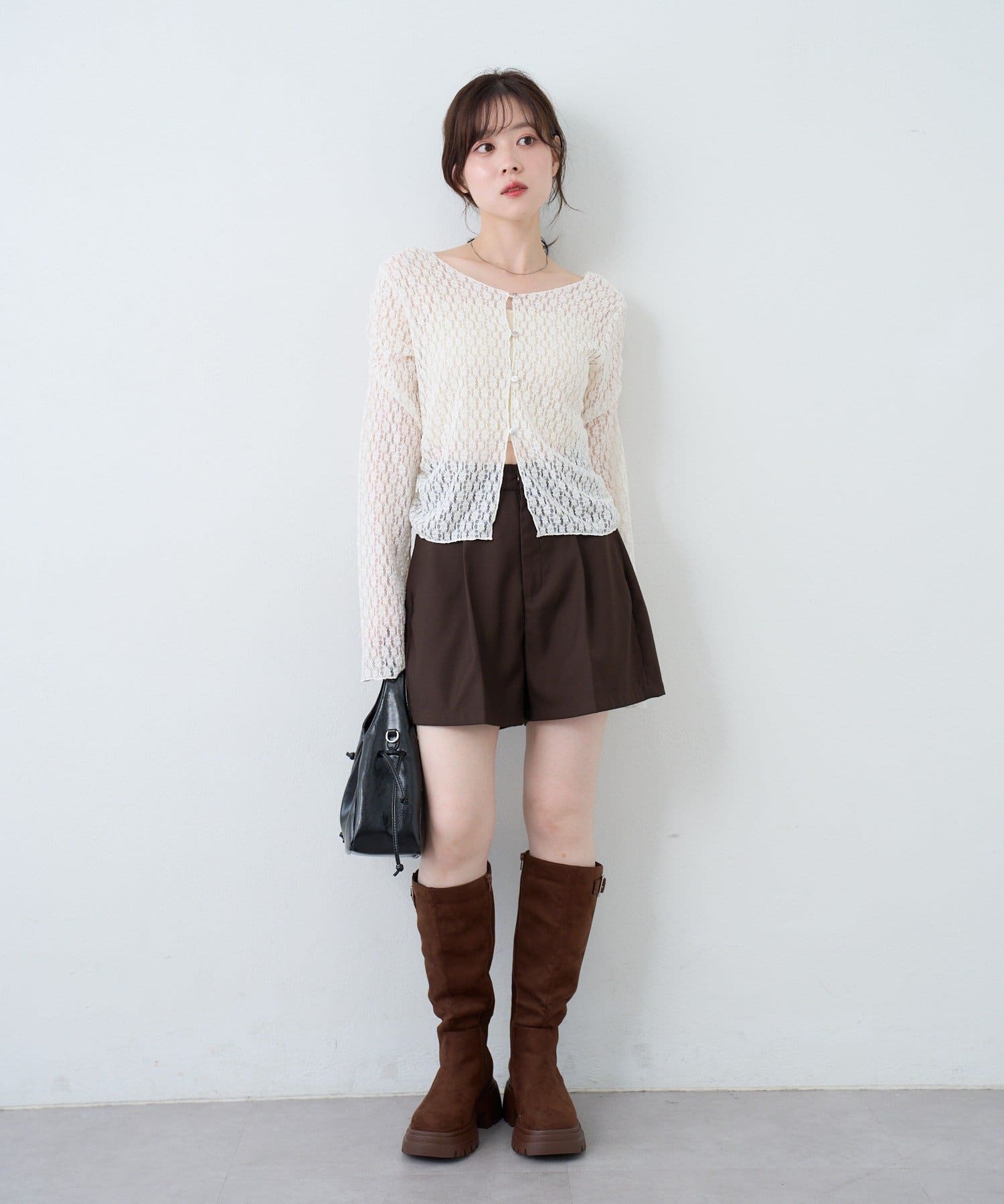 ミディ丈スカートやプリーツスカートと合わせて、ガーリーな印象に。