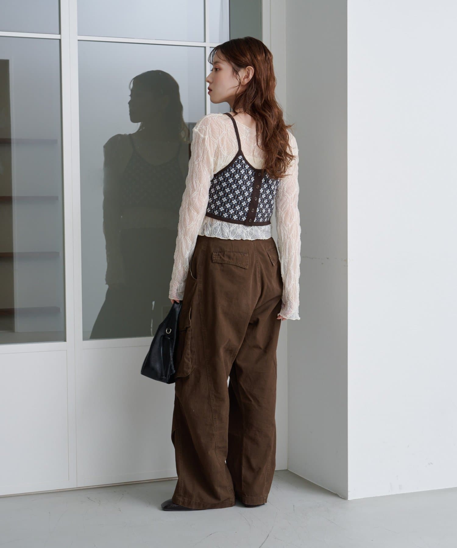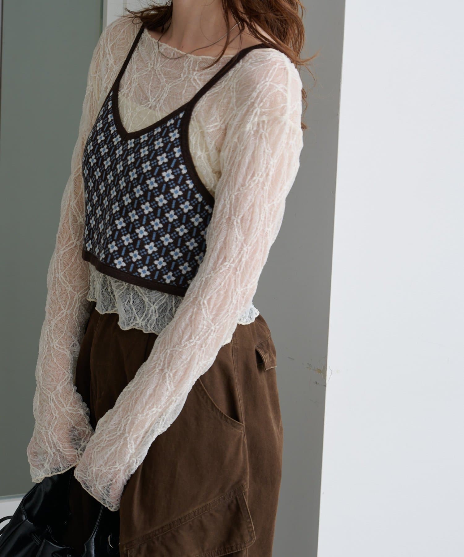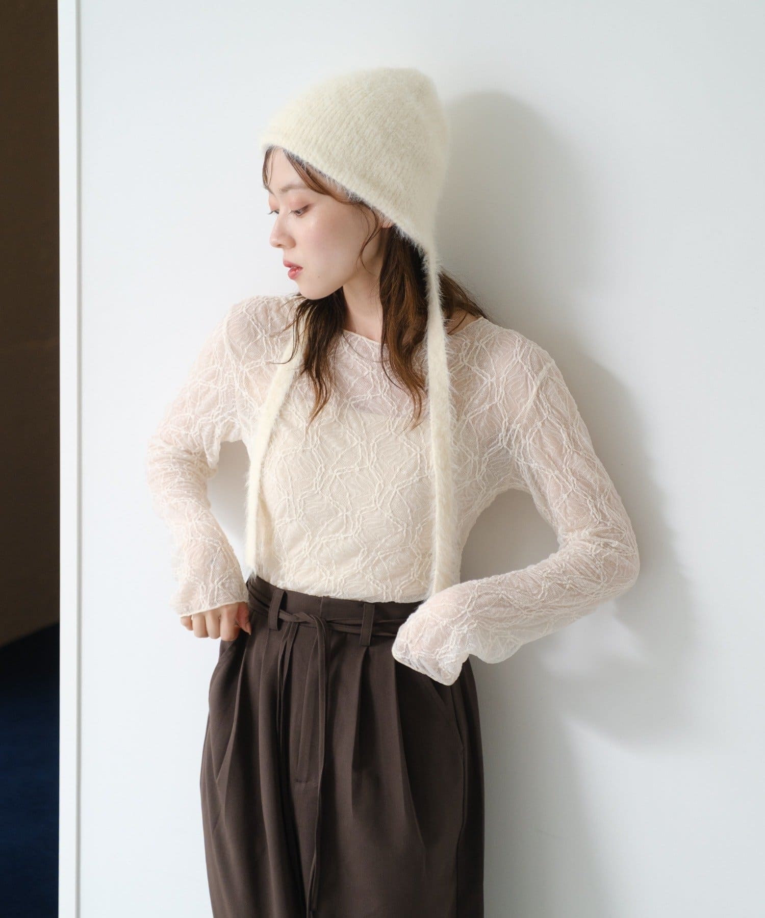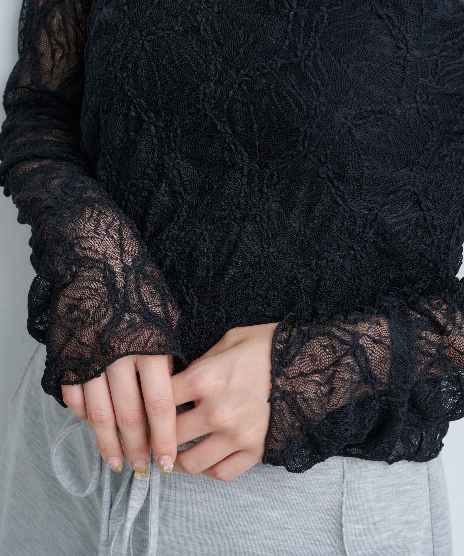 繊細な総レースを使用したフェミニンなシアープルオーバー。