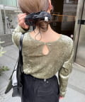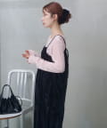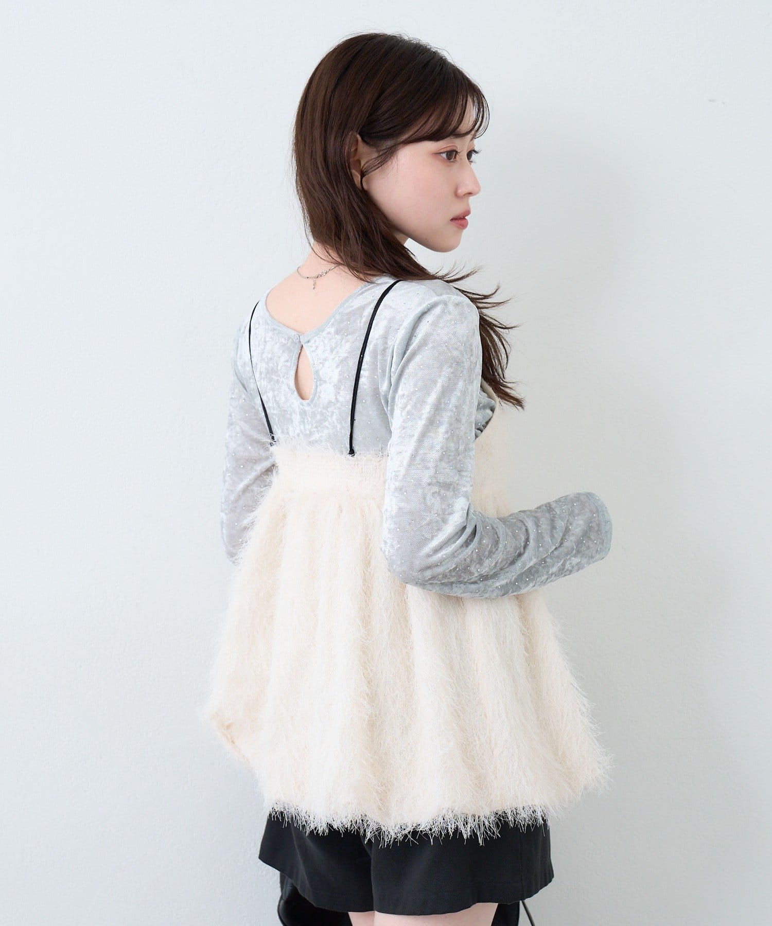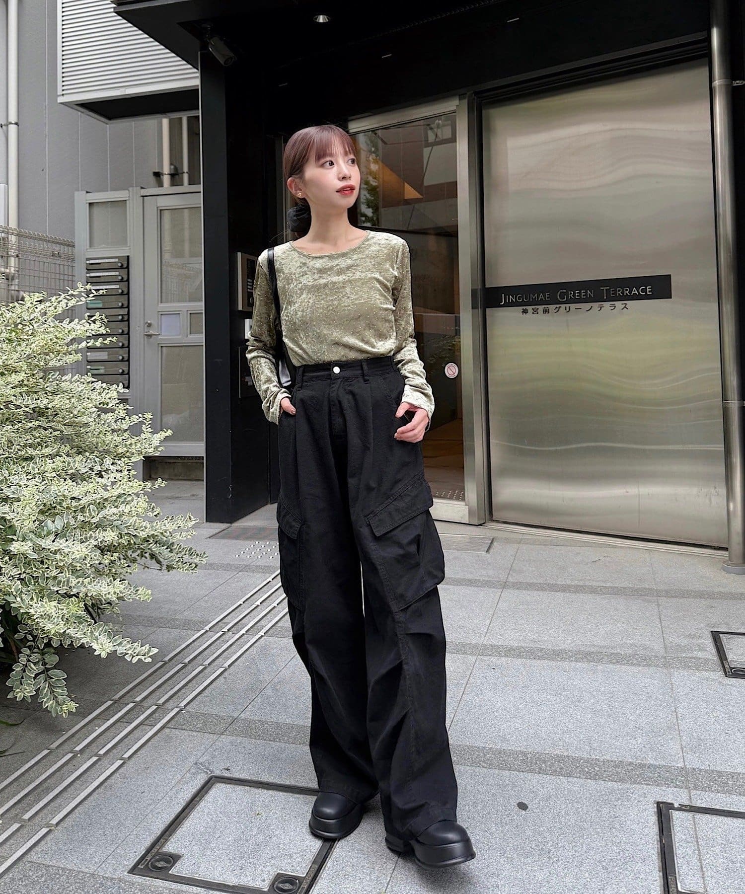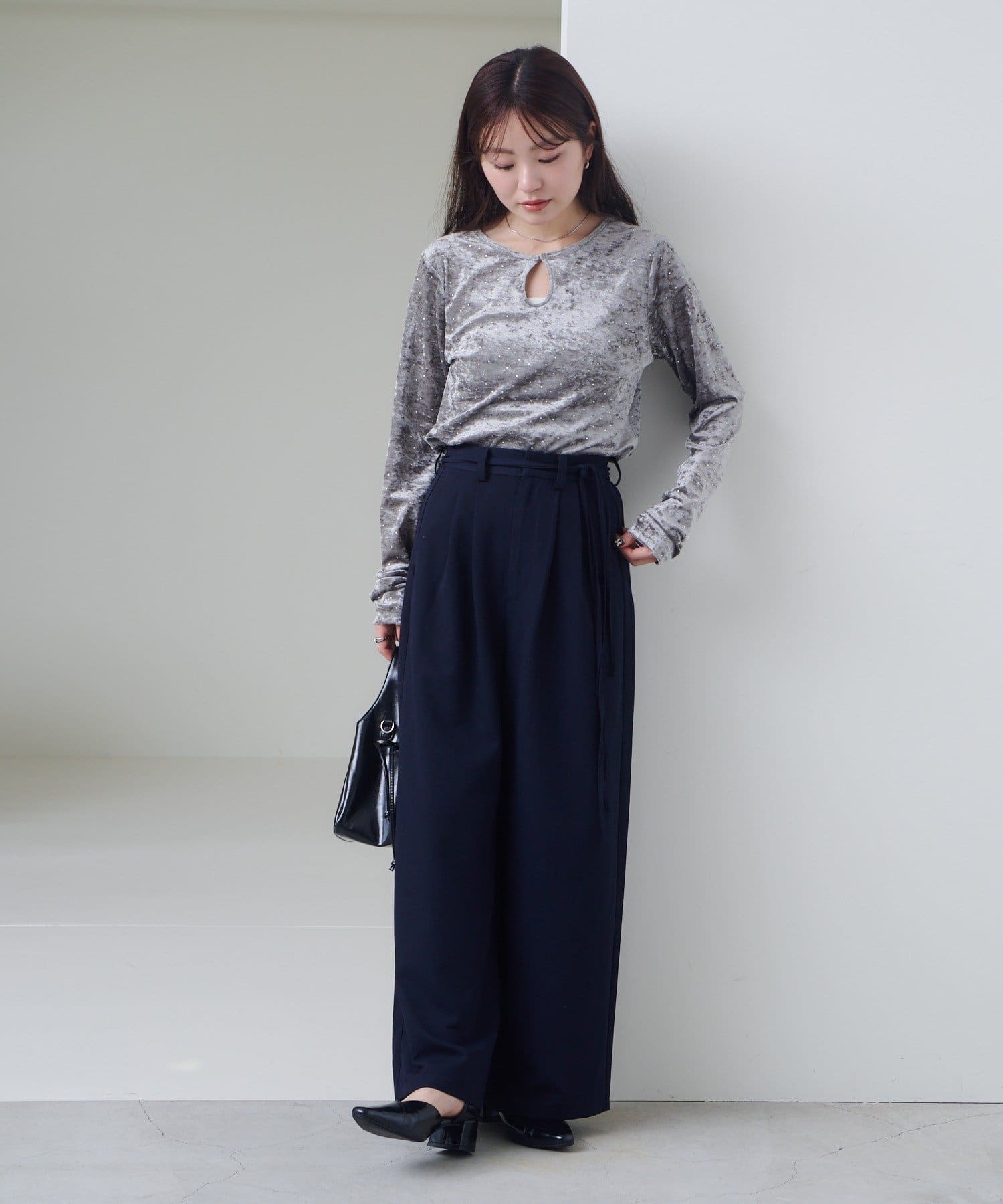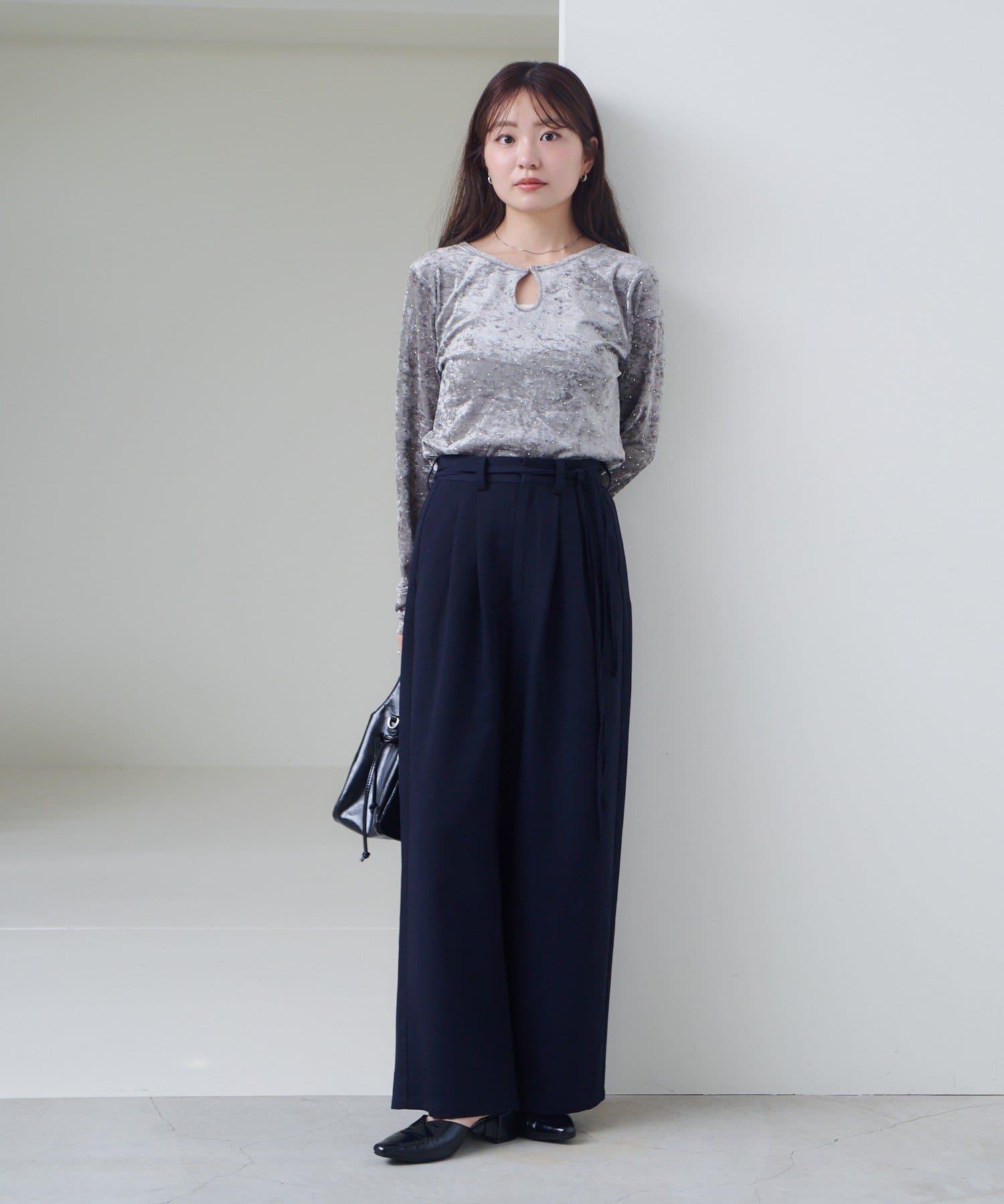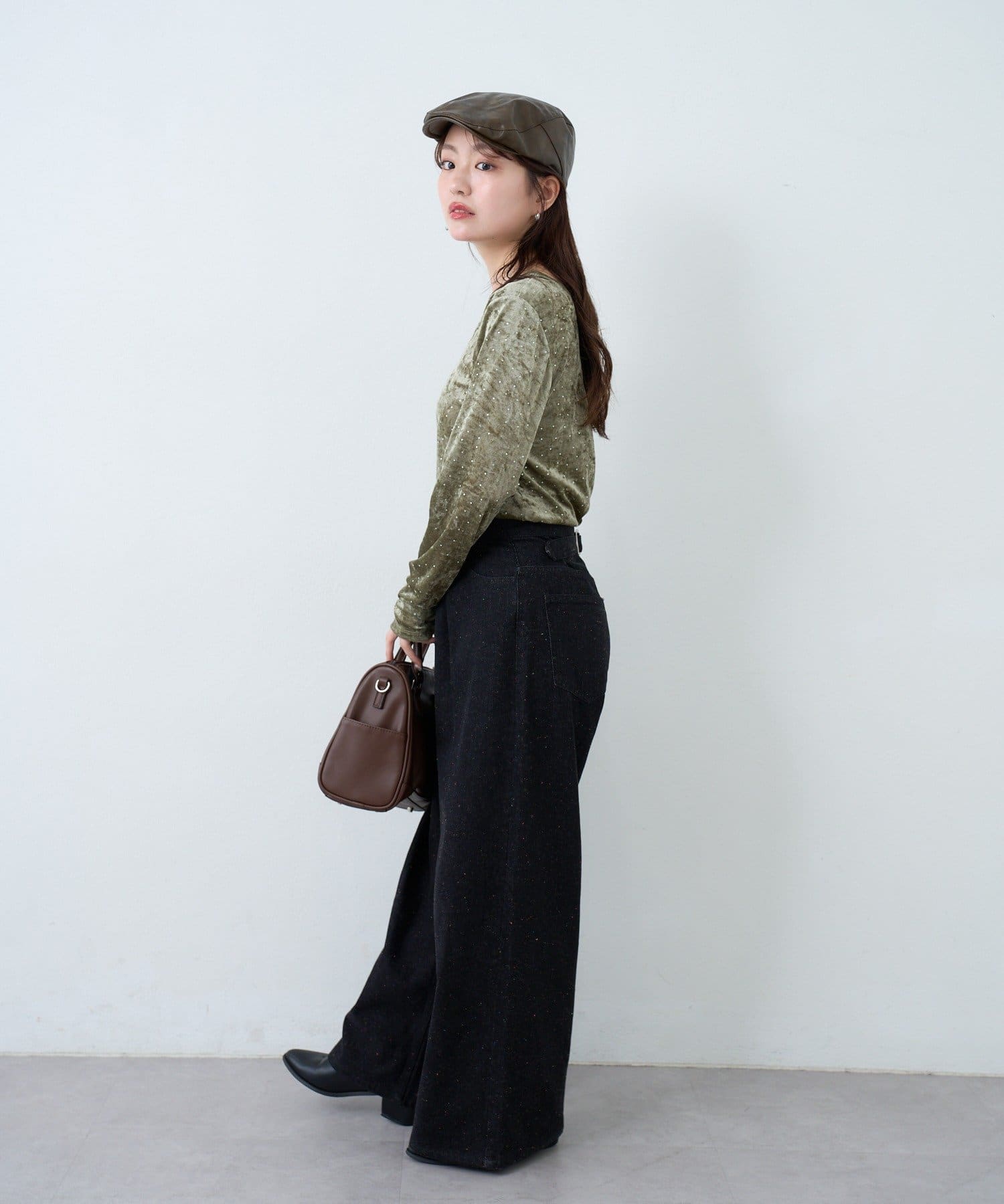 しっとりとした光沢感が魅力のベロア素材に細やかなスタッズを散りばめたカットソー。