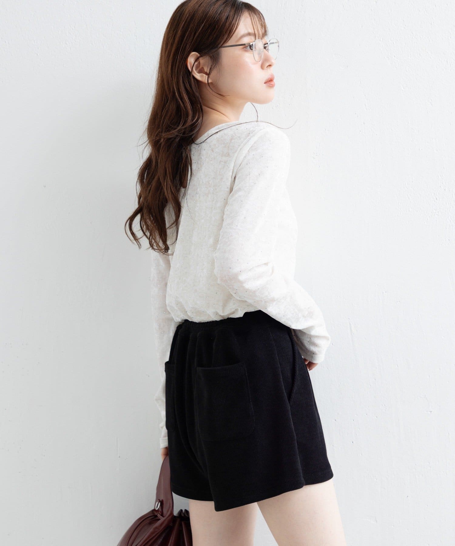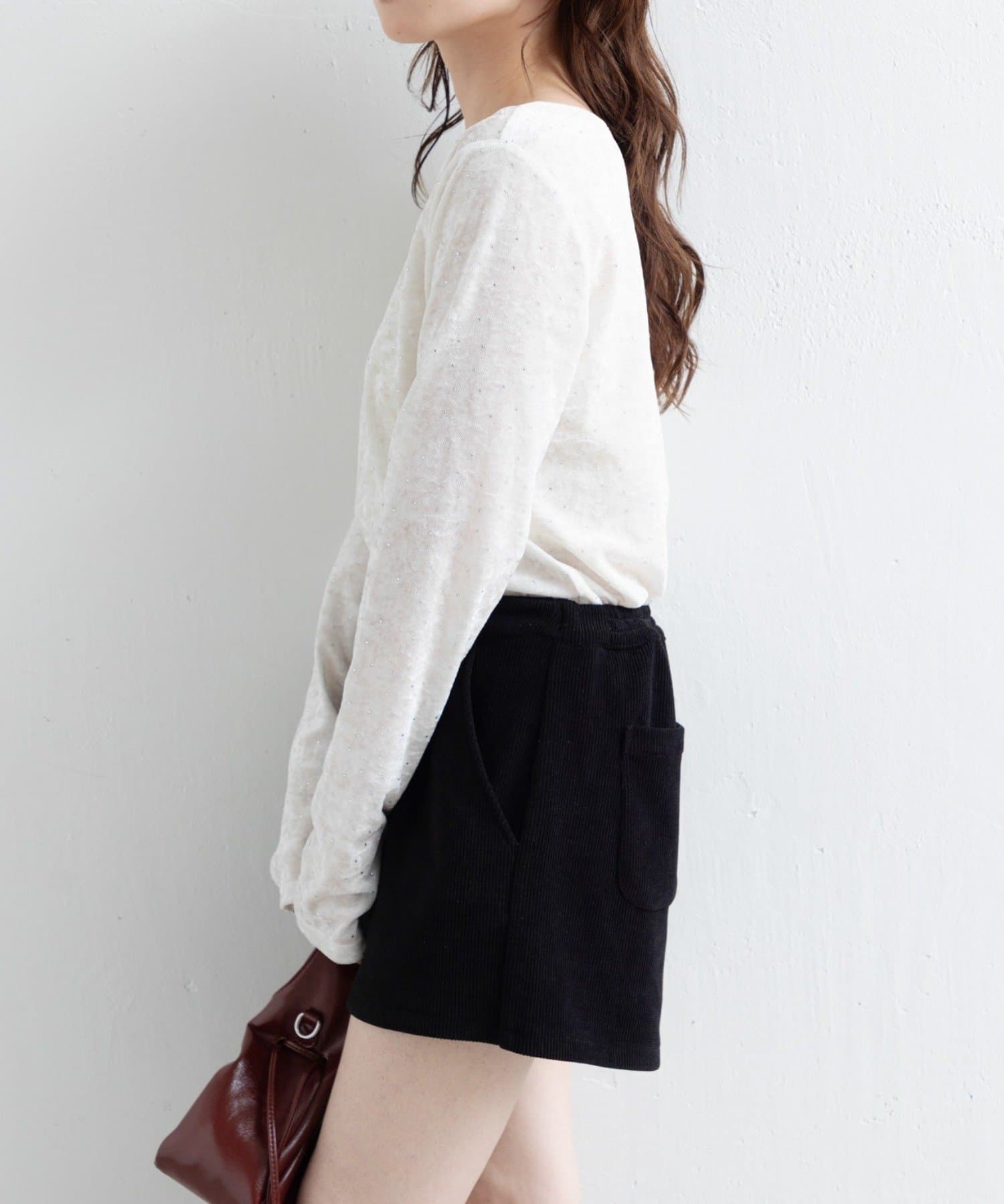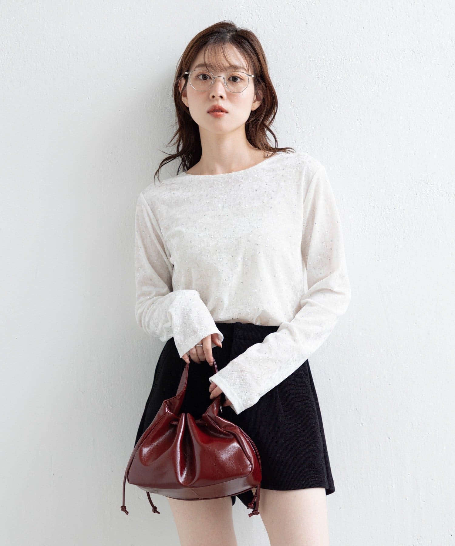 シンプルなデザインながら、動くたびにきらめくディテールがポイント。