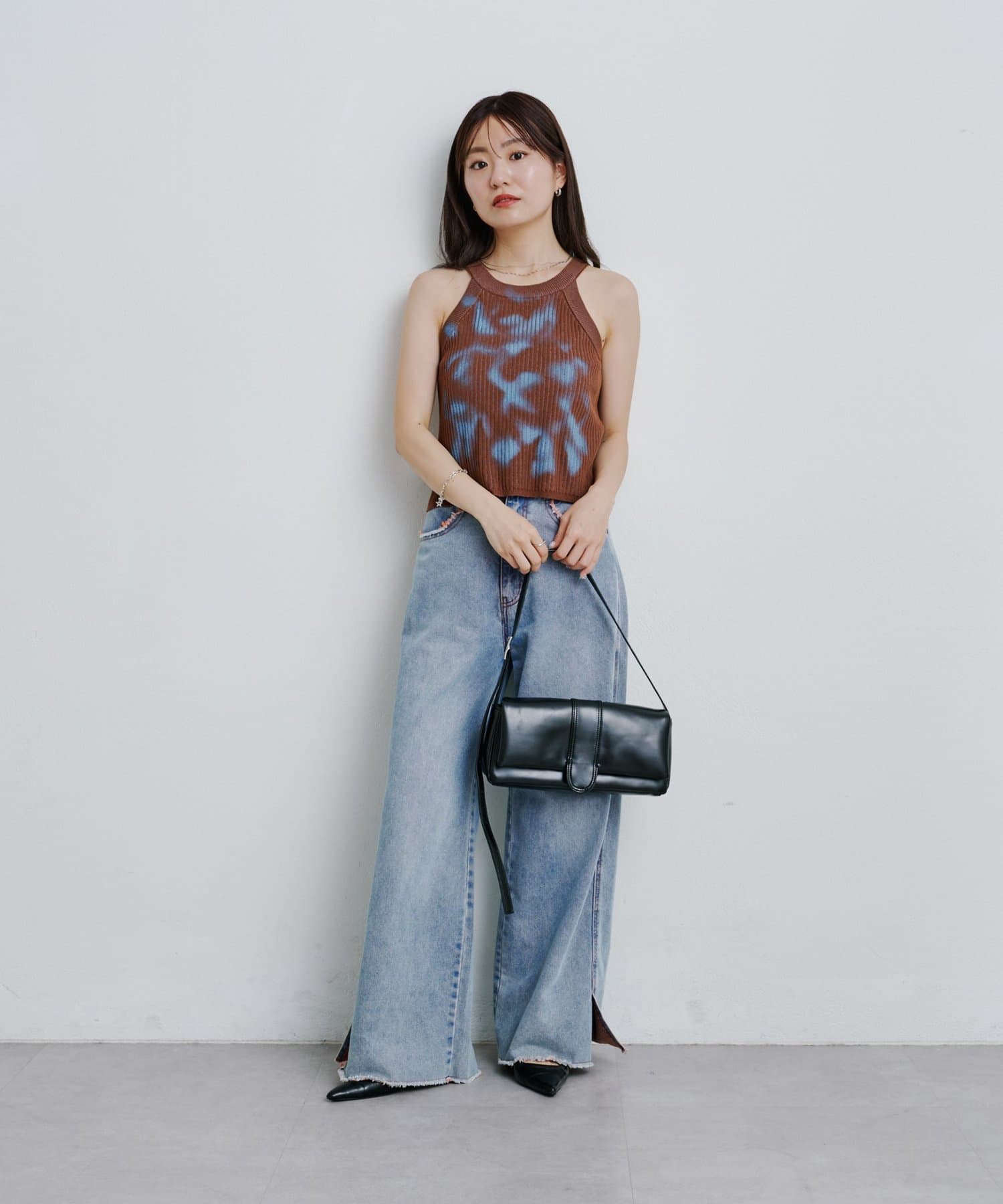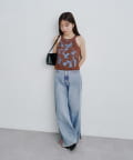 ワイドデニムパンツやストレートジーンズと合わせて、ラフで抜け感のある大人カジュアルに。足元はスニーカーやフラットサンダルが◎。