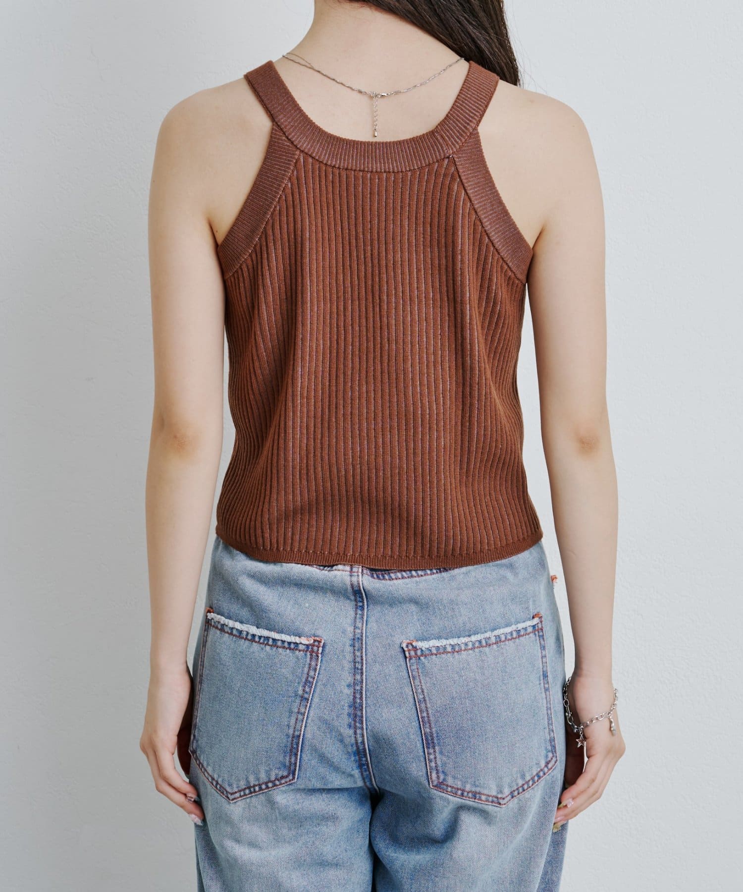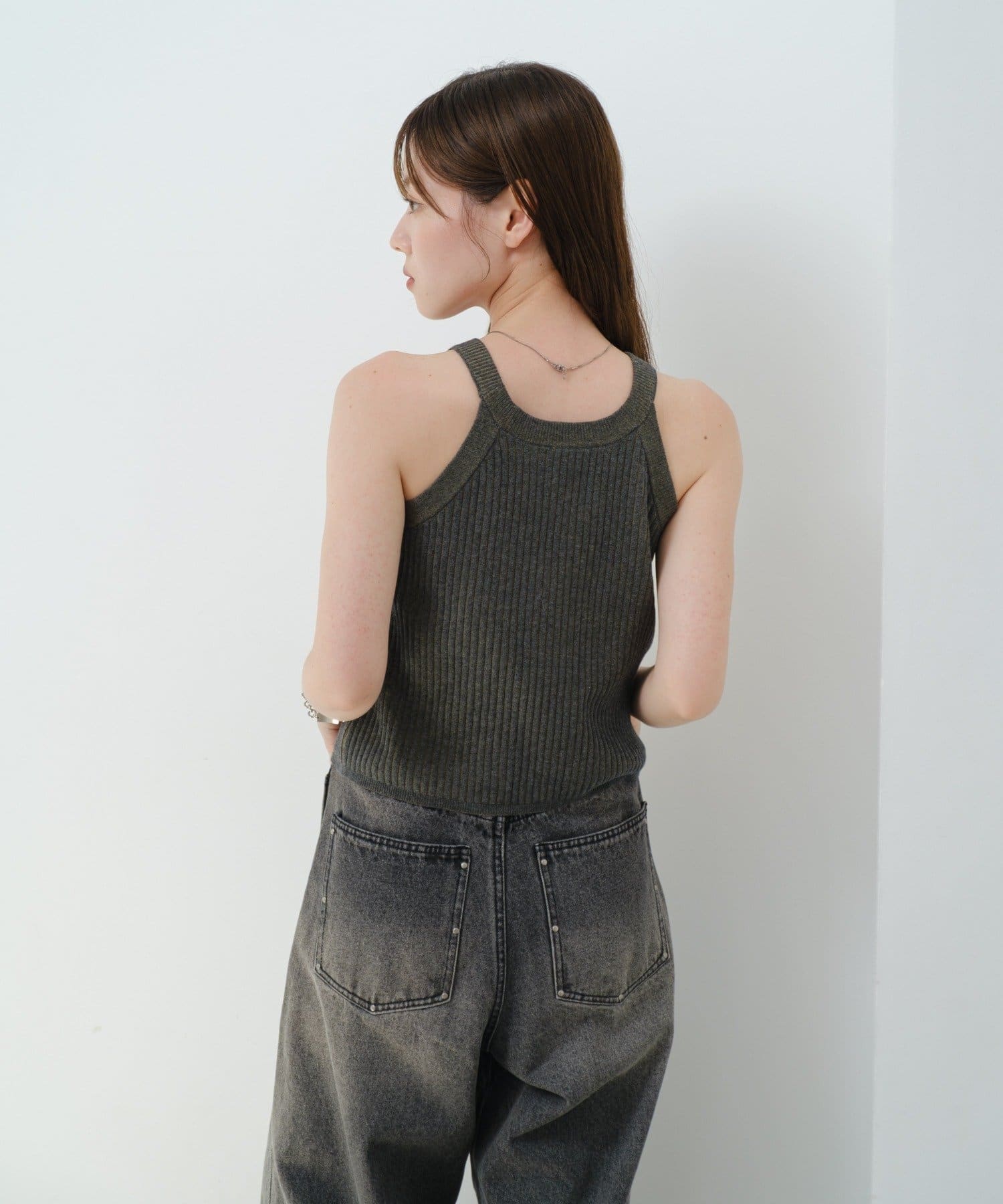 肩周りをすっきり見せてくれるタンクトップデザインで、秋のレイヤードコーデにも活躍します。
