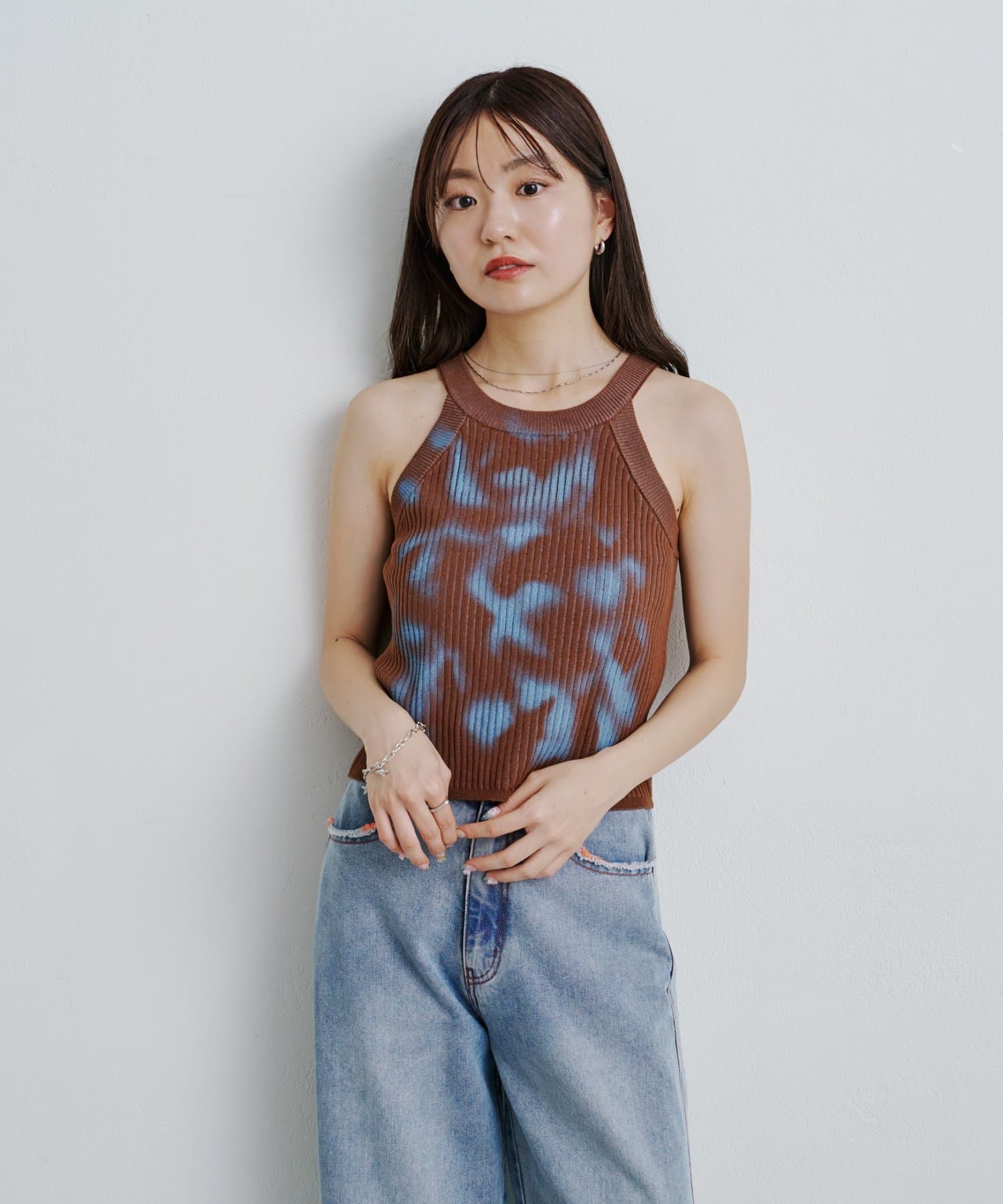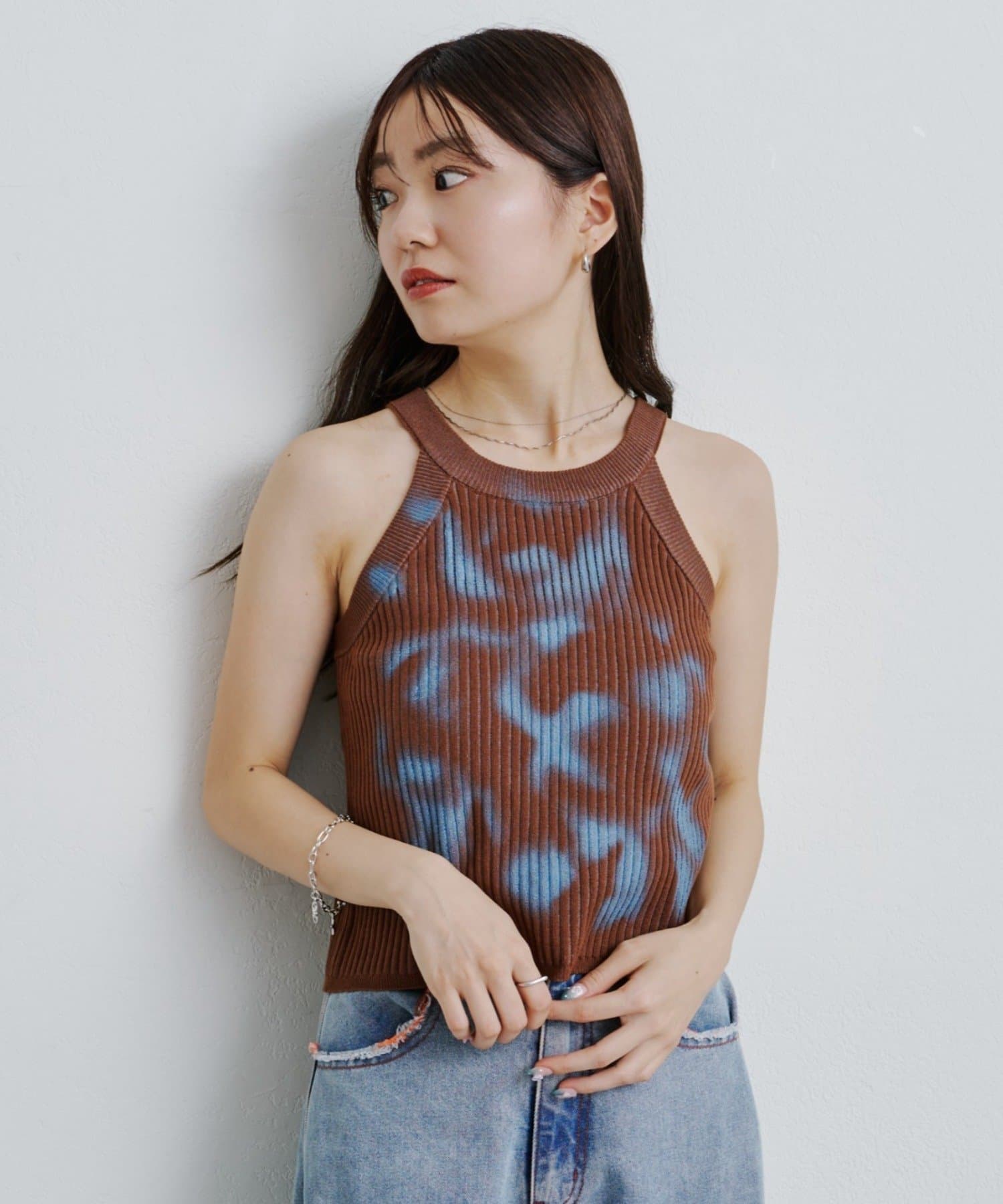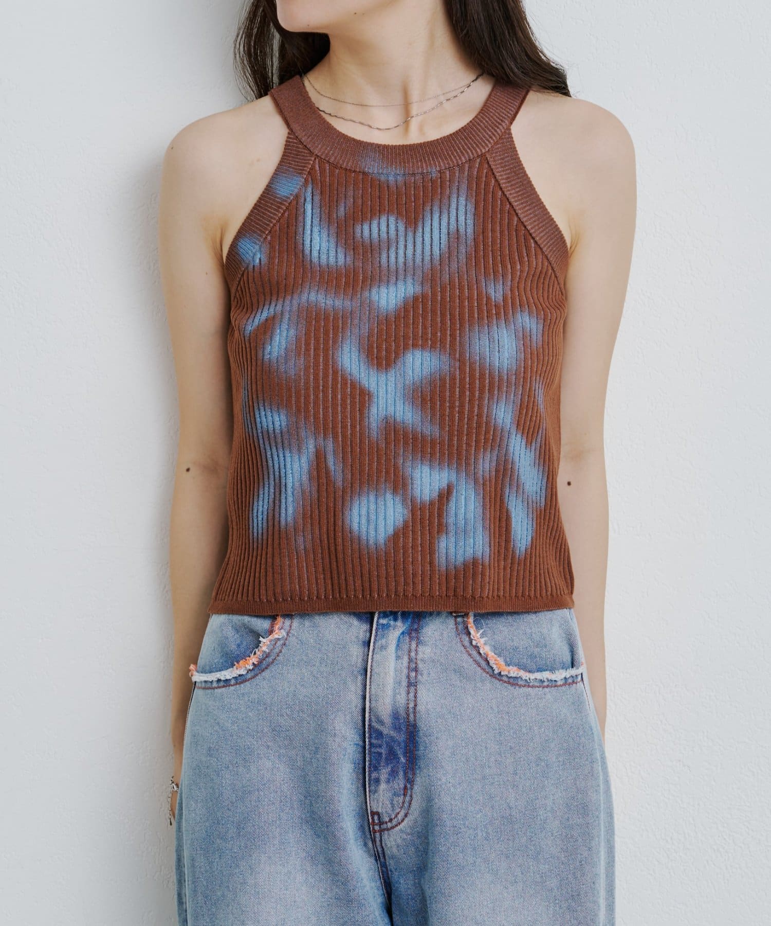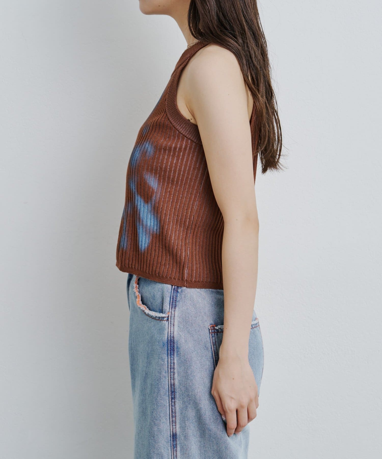 スプレーアートのようなプリントが目を引く、一枚で主役になるキャミトップス。