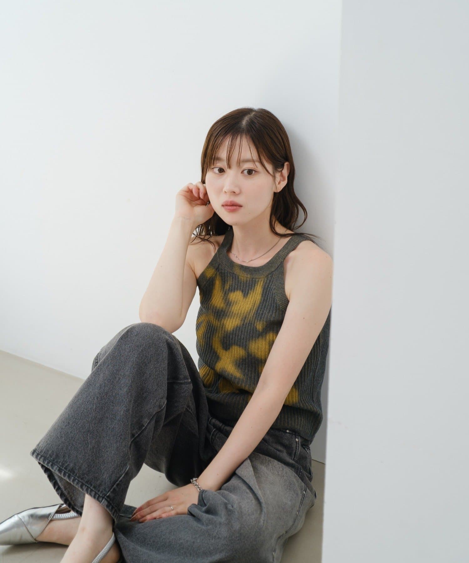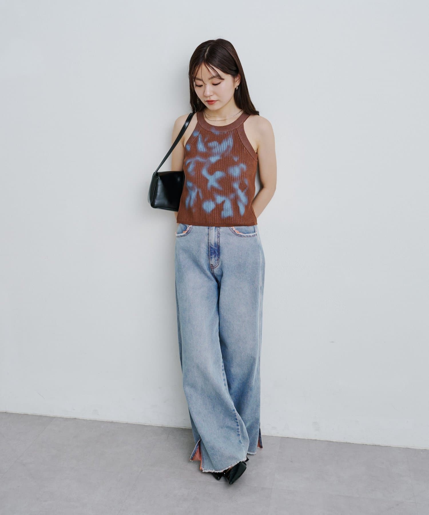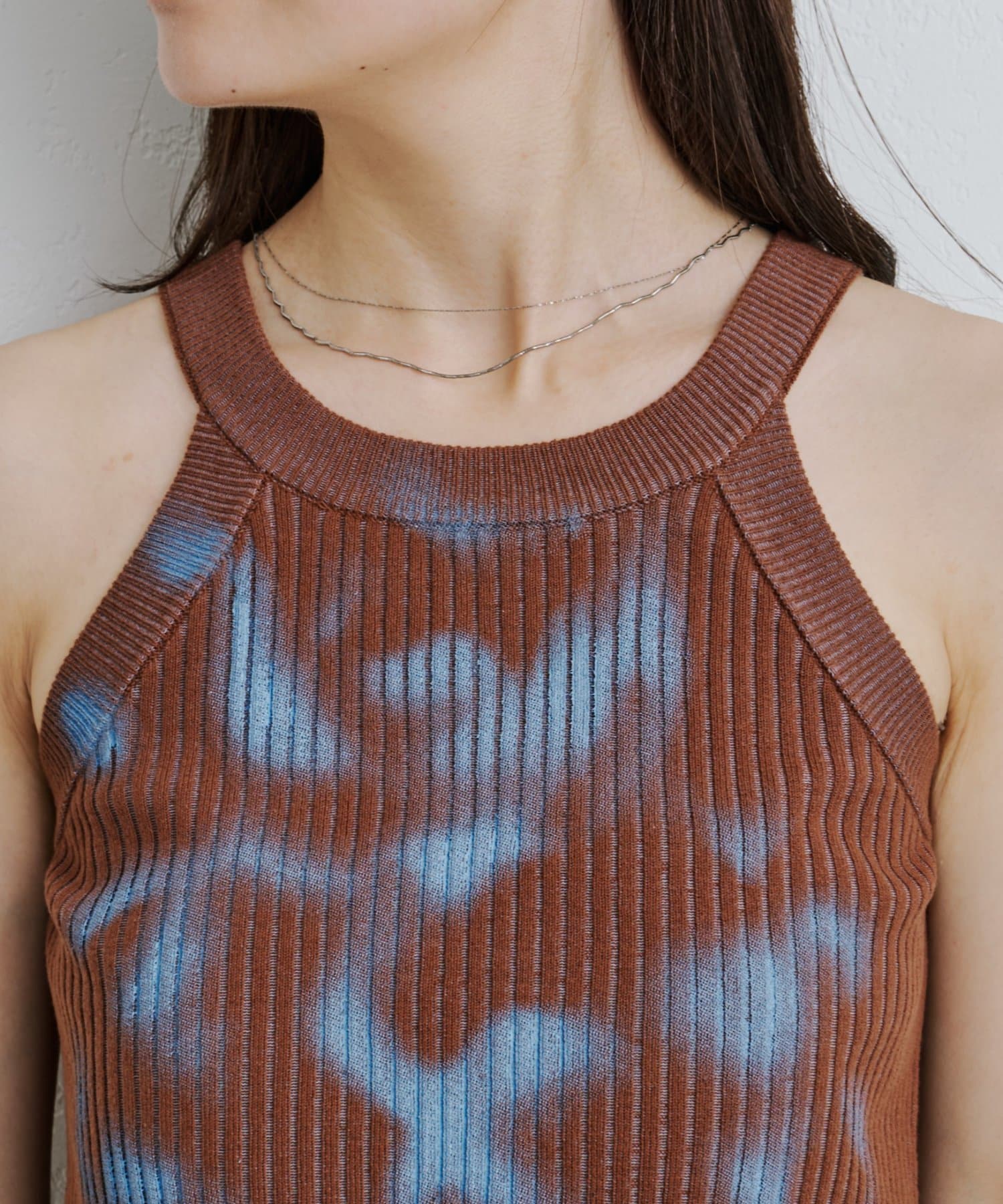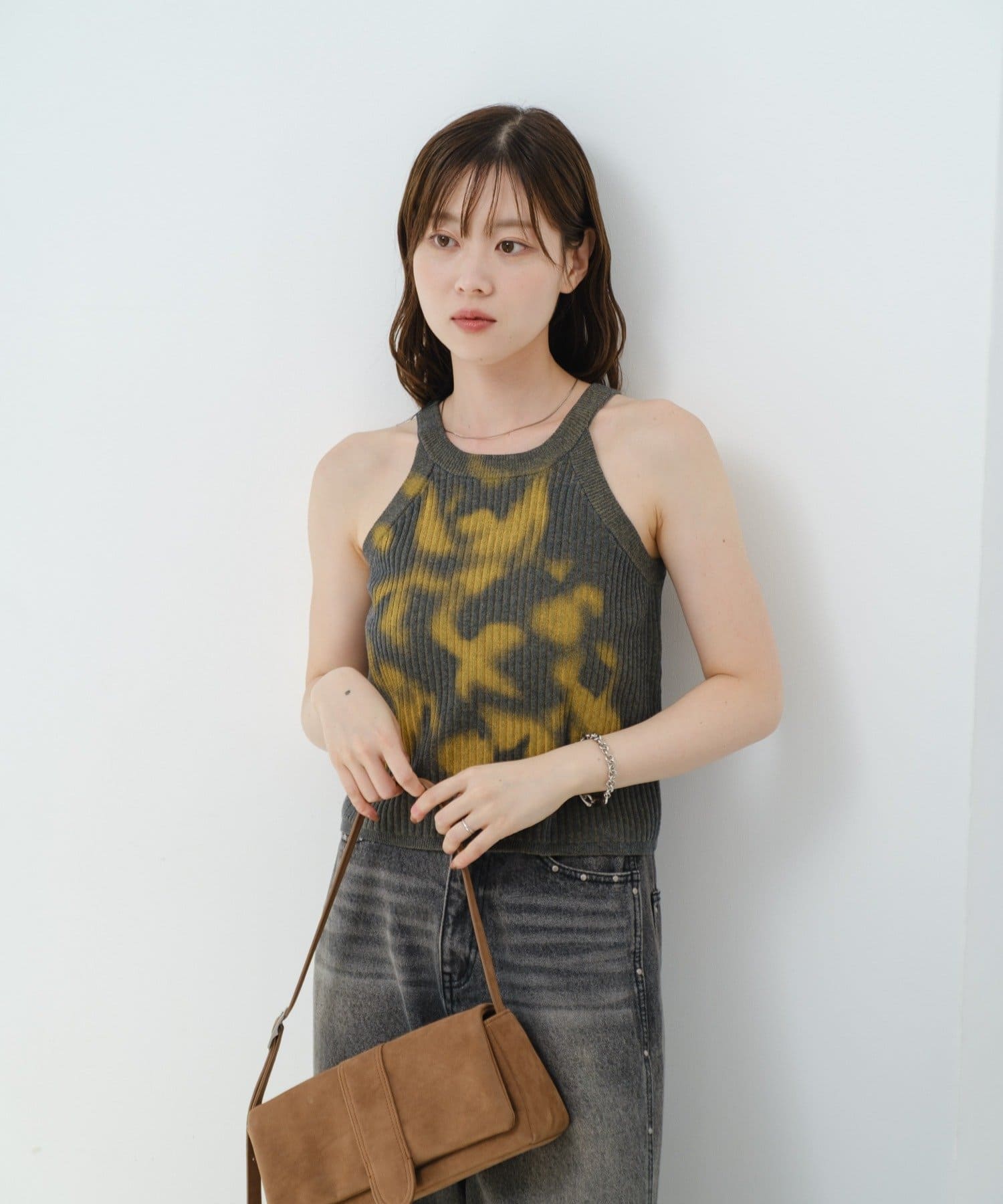 スプレーアートのようなプリントが目を引く、一枚で主役になるキャミトップス。