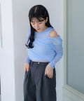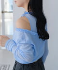 片側の肩を肌見せするとすっきり見えますが、肌見せをせずとも着用可能です。