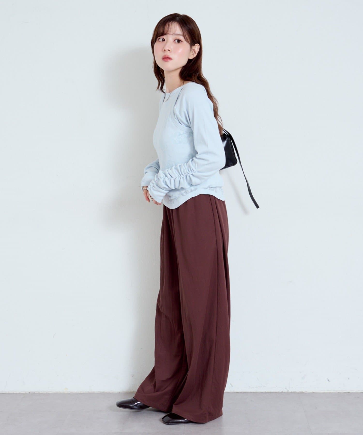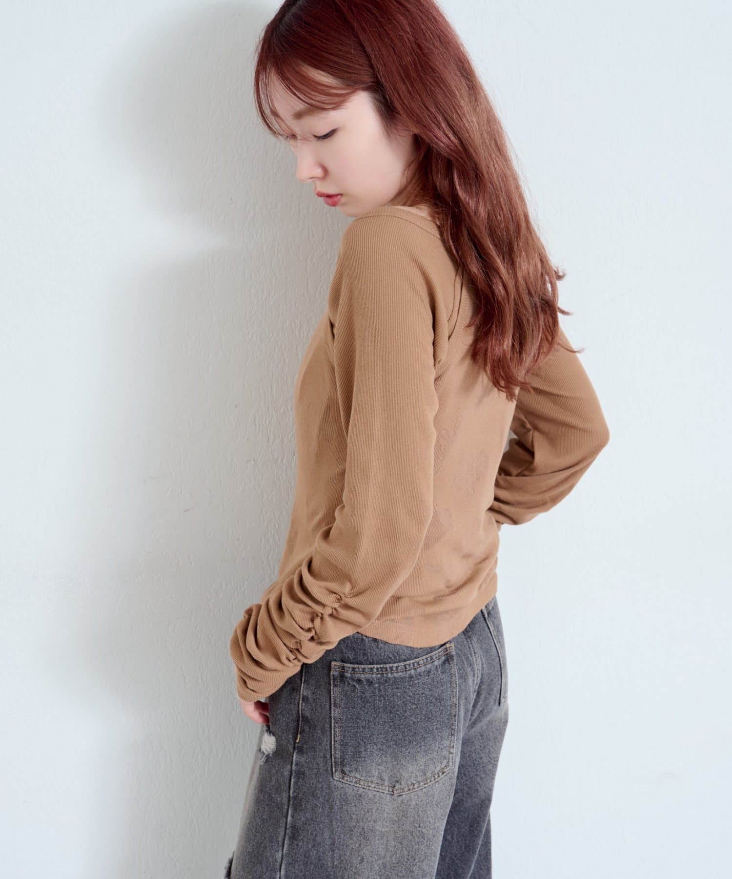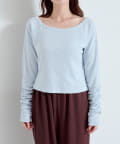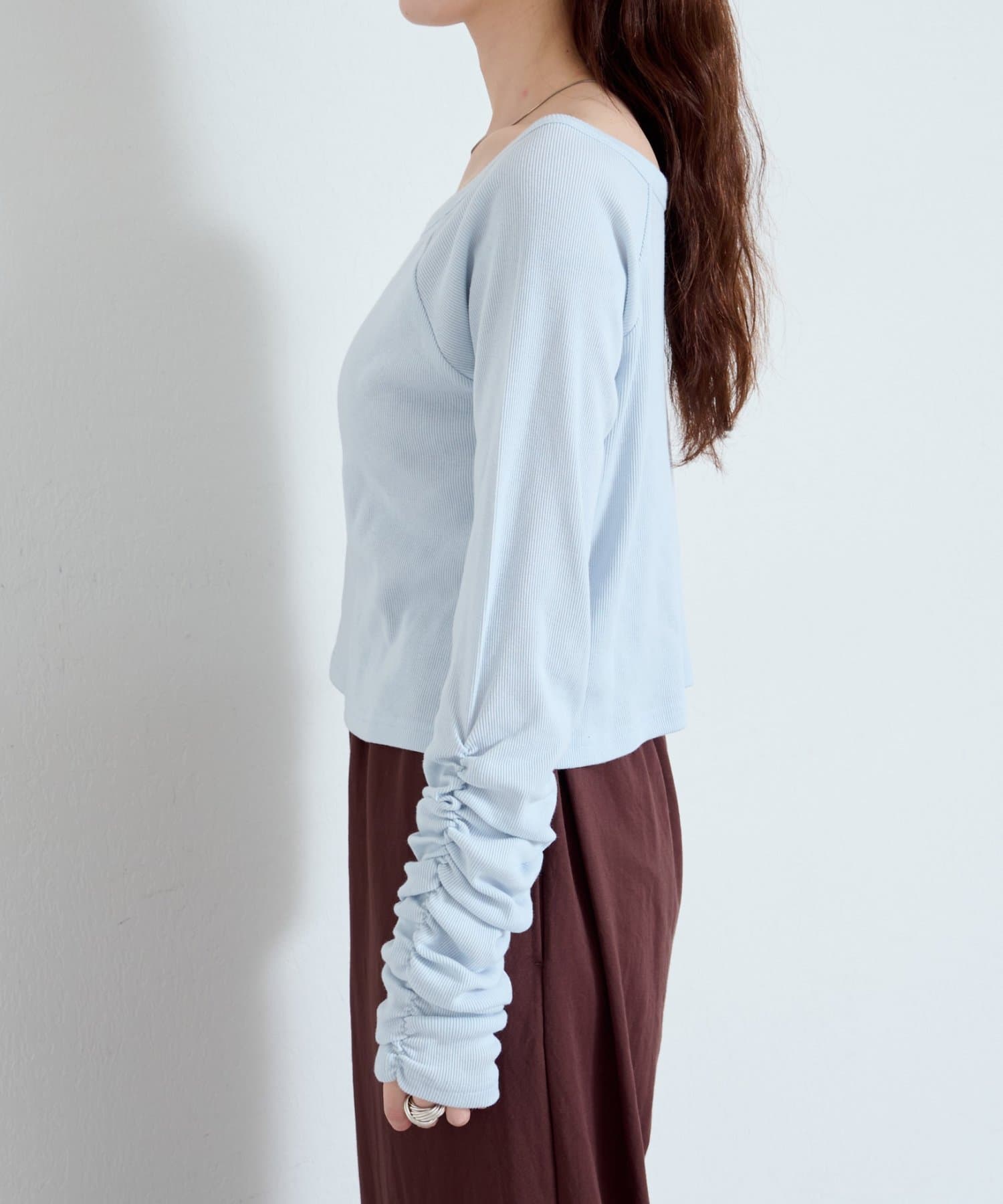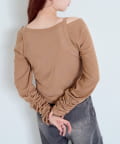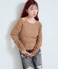 袖部分には細かいギャザーを寄せ、ニュアンスのあるシルエットに。
