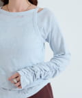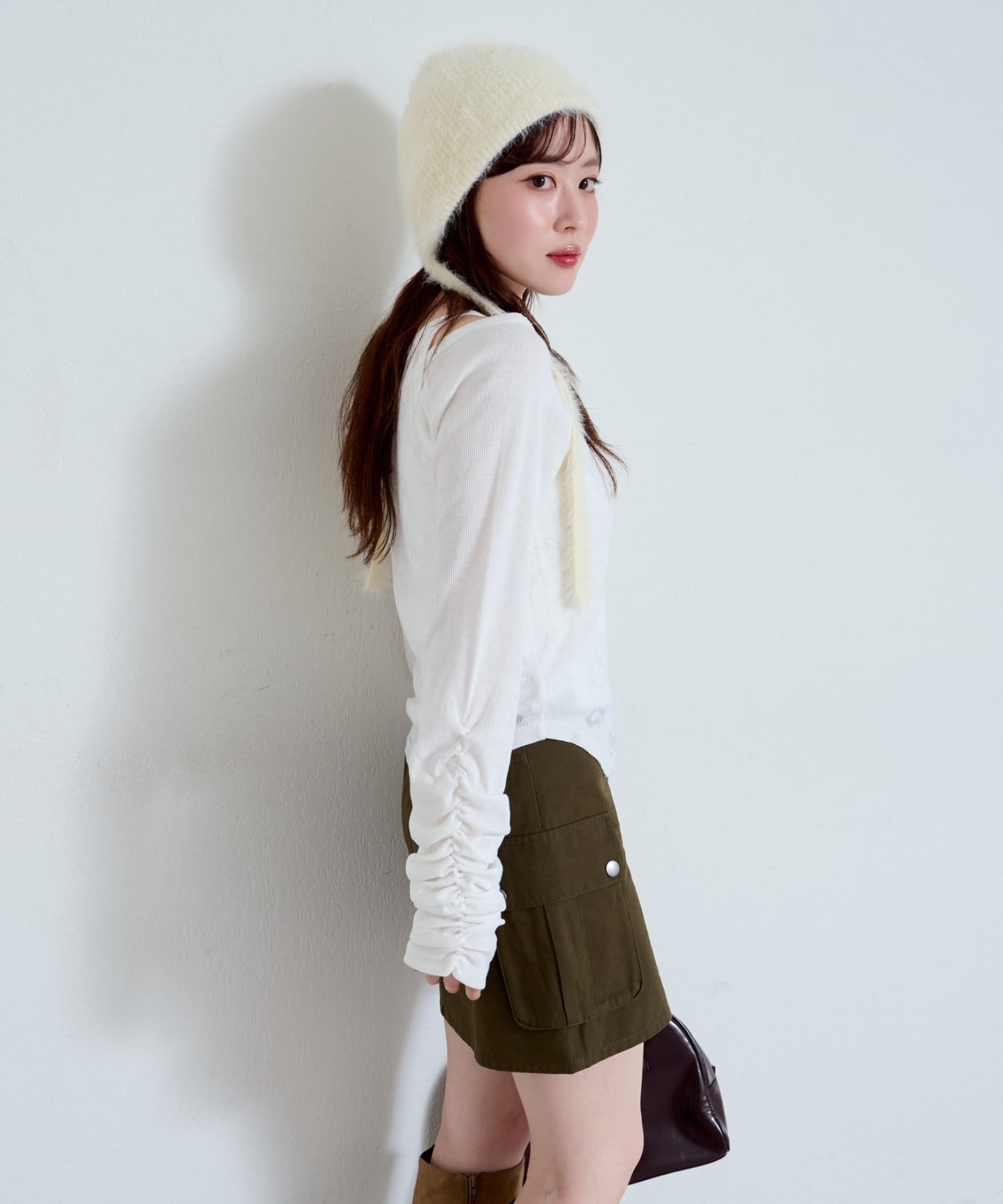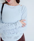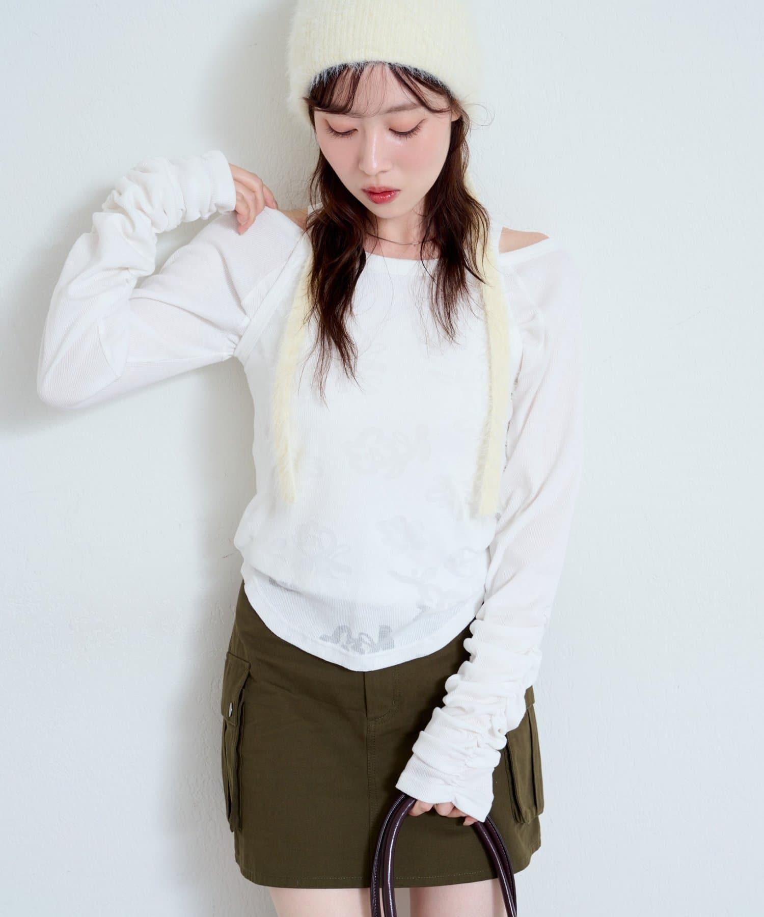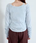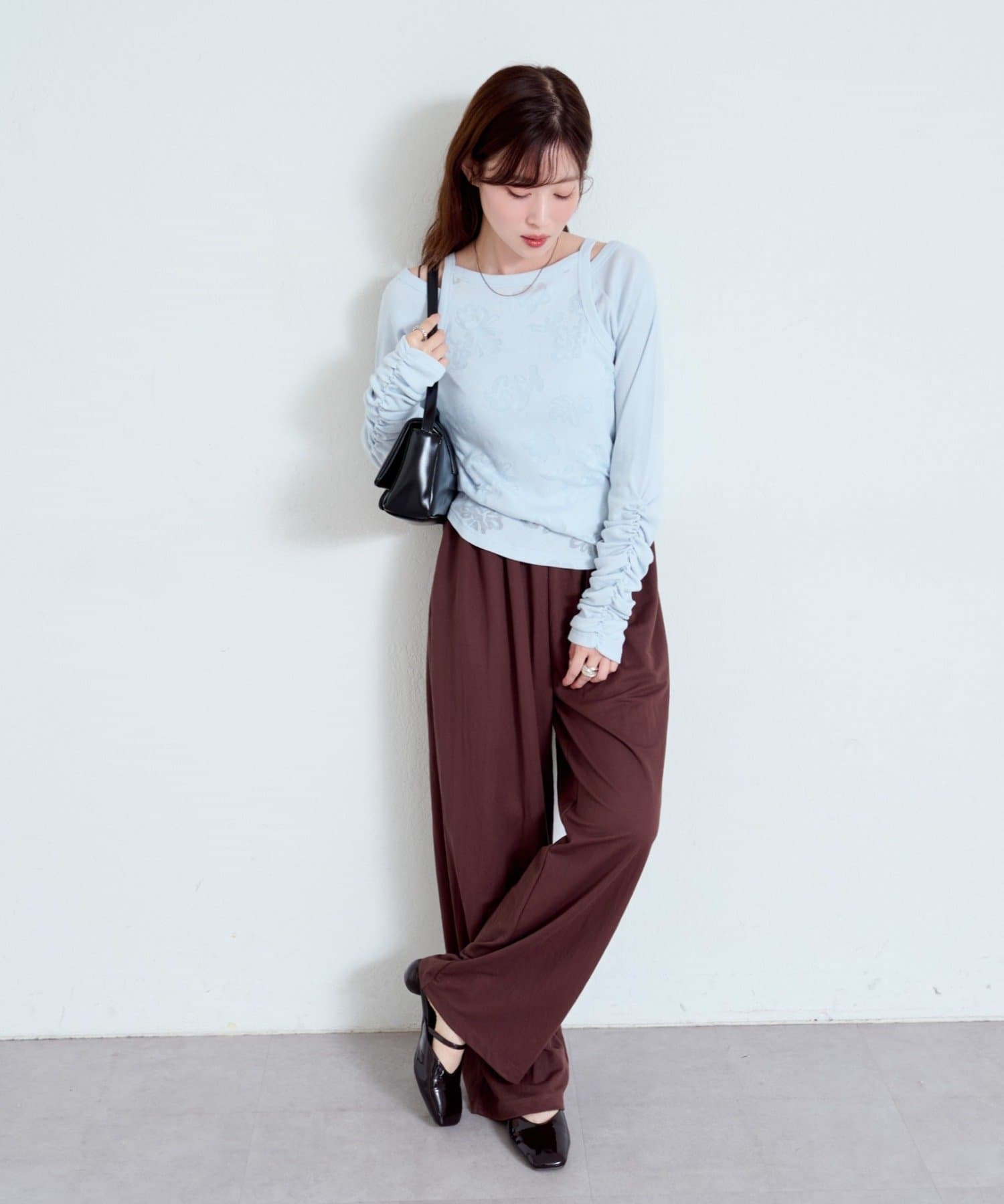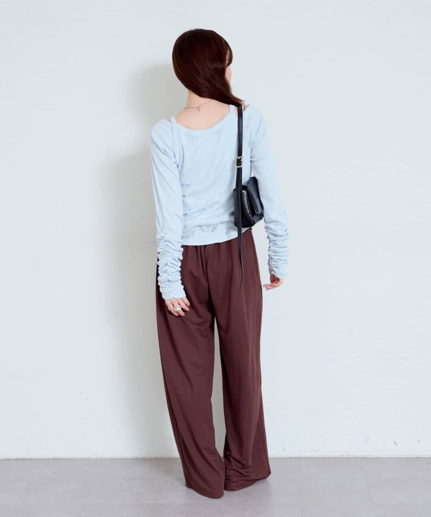 袖部分には細かいギャザーを寄せ、ニュアンスのあるシルエットに。