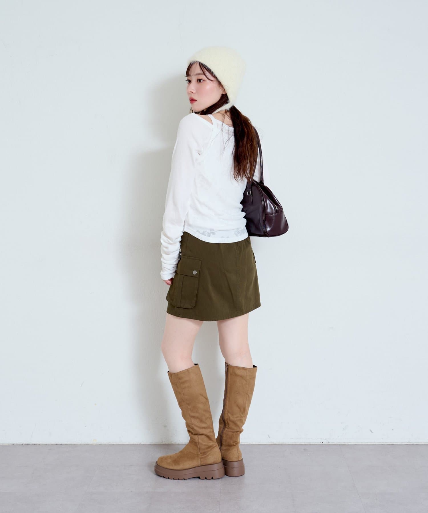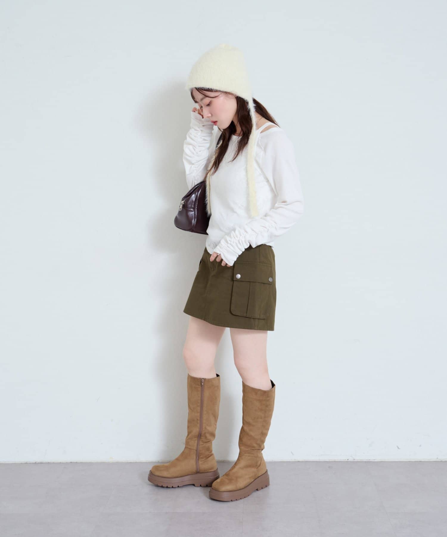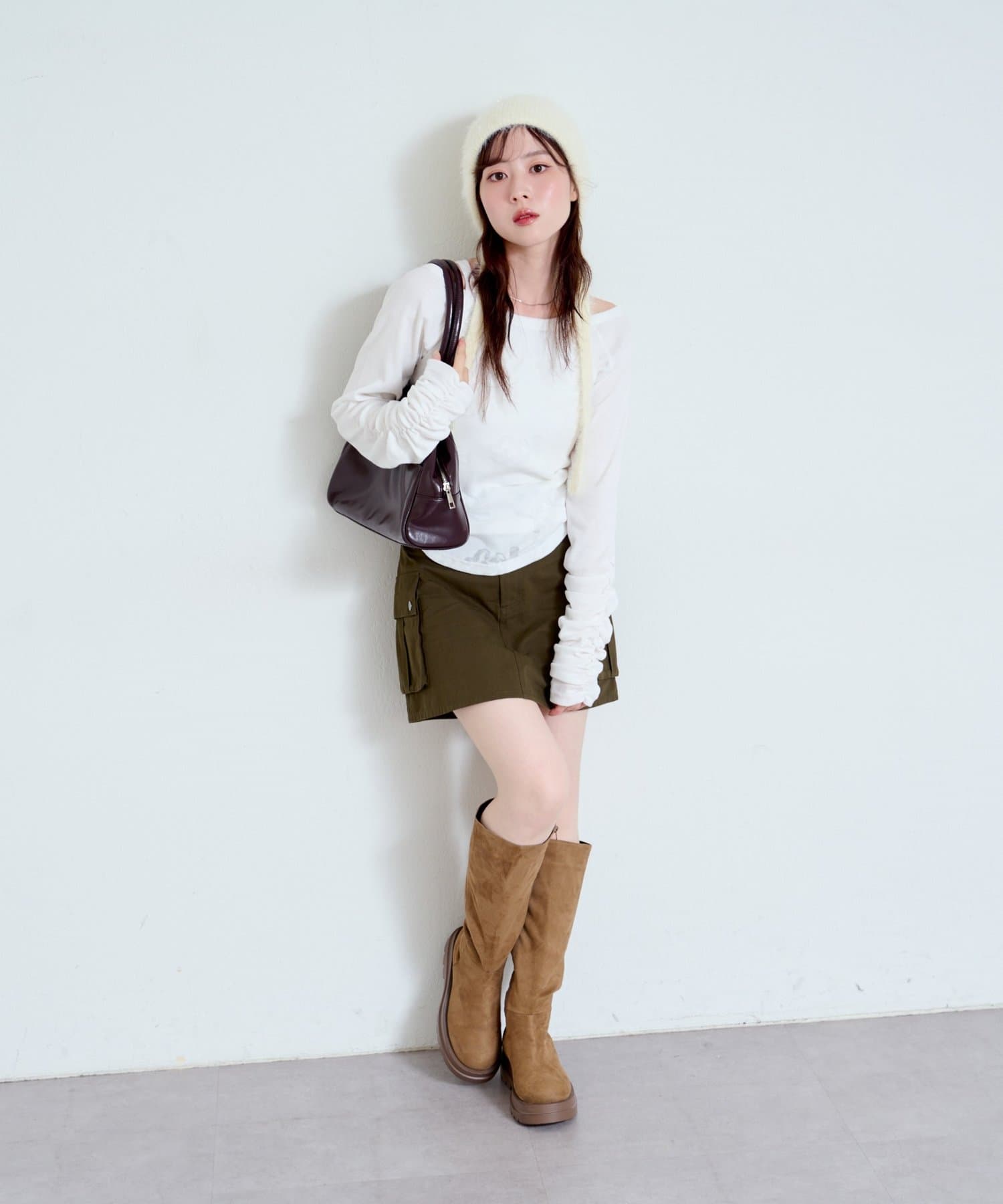 コンパクトなシルエットなので、ワイドボトム合わせがおすすめ。