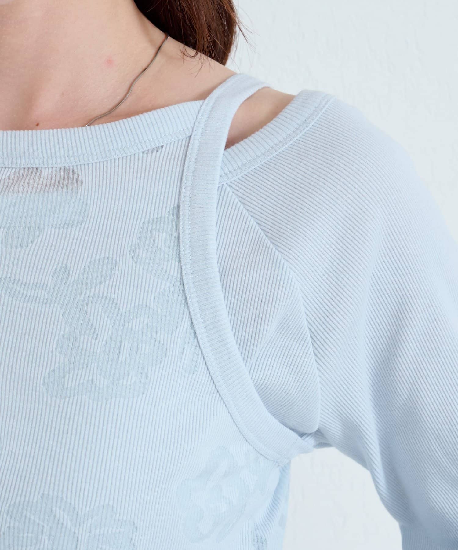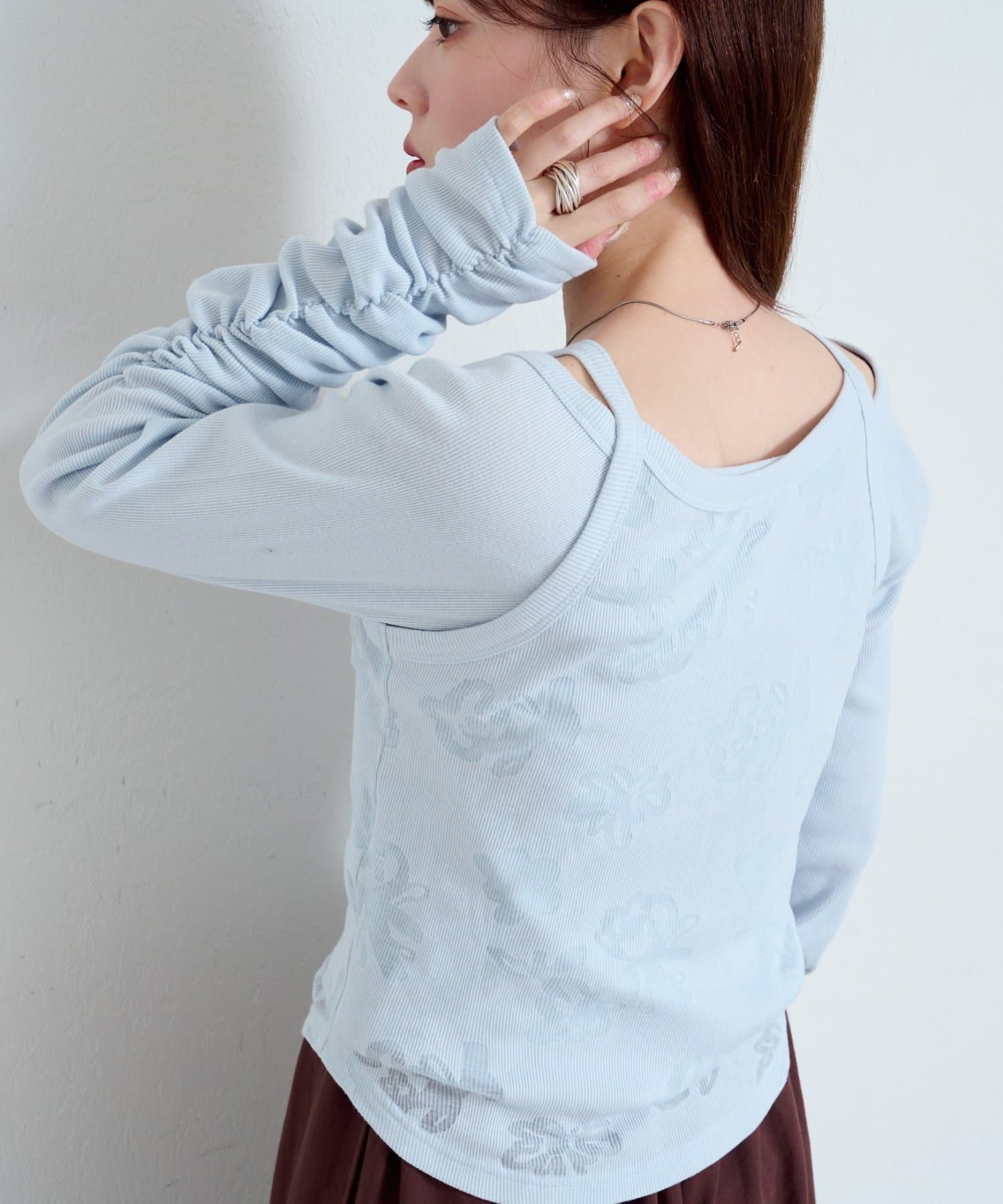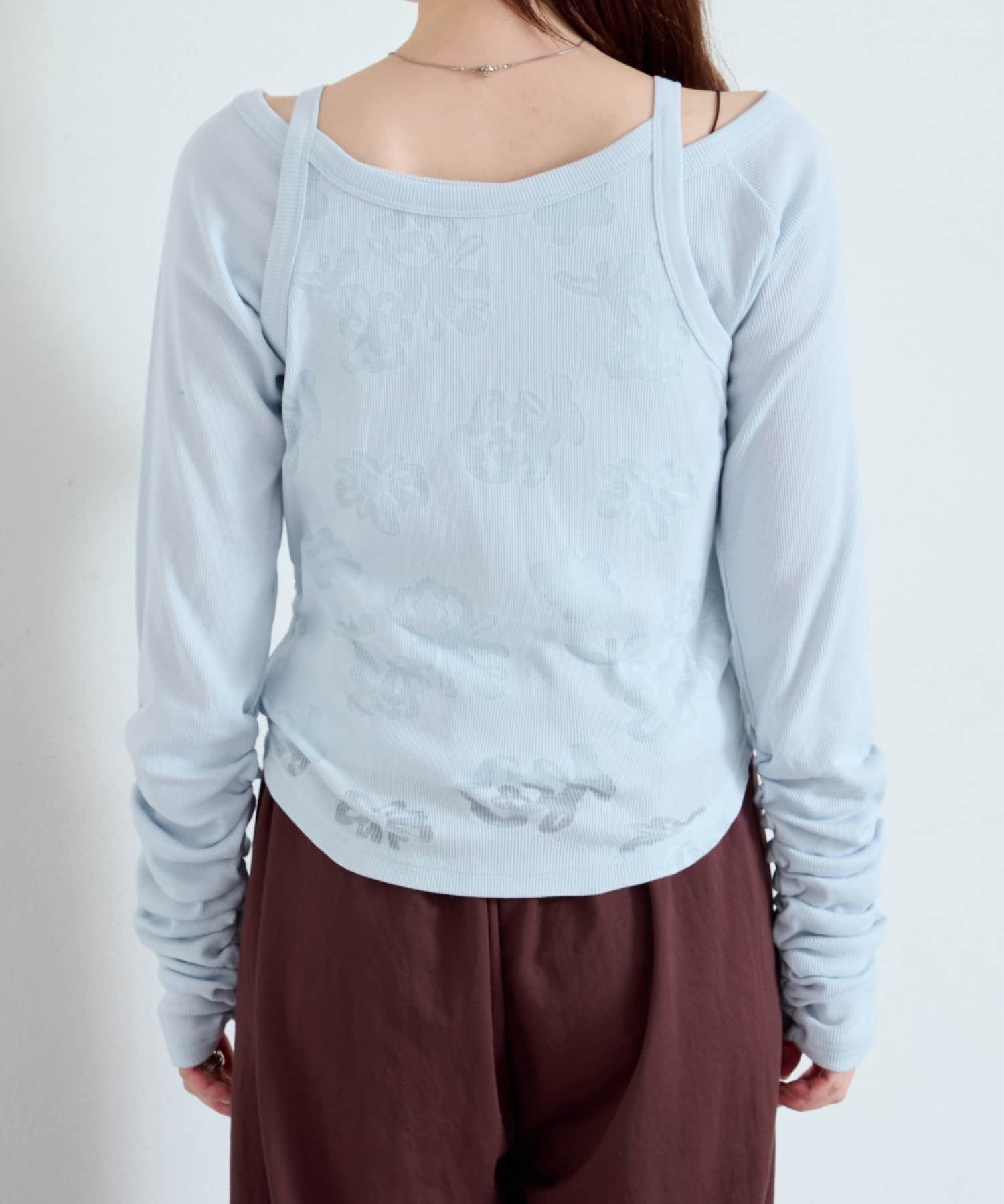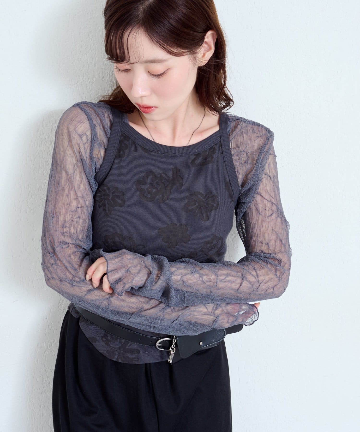 繊細な透け感の花柄オパールカットソーと、インナーキャミがセットになったアイテム