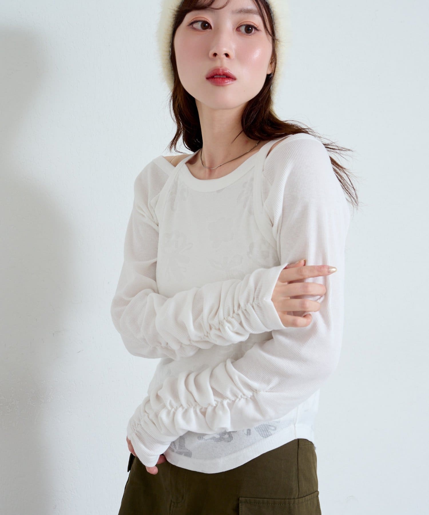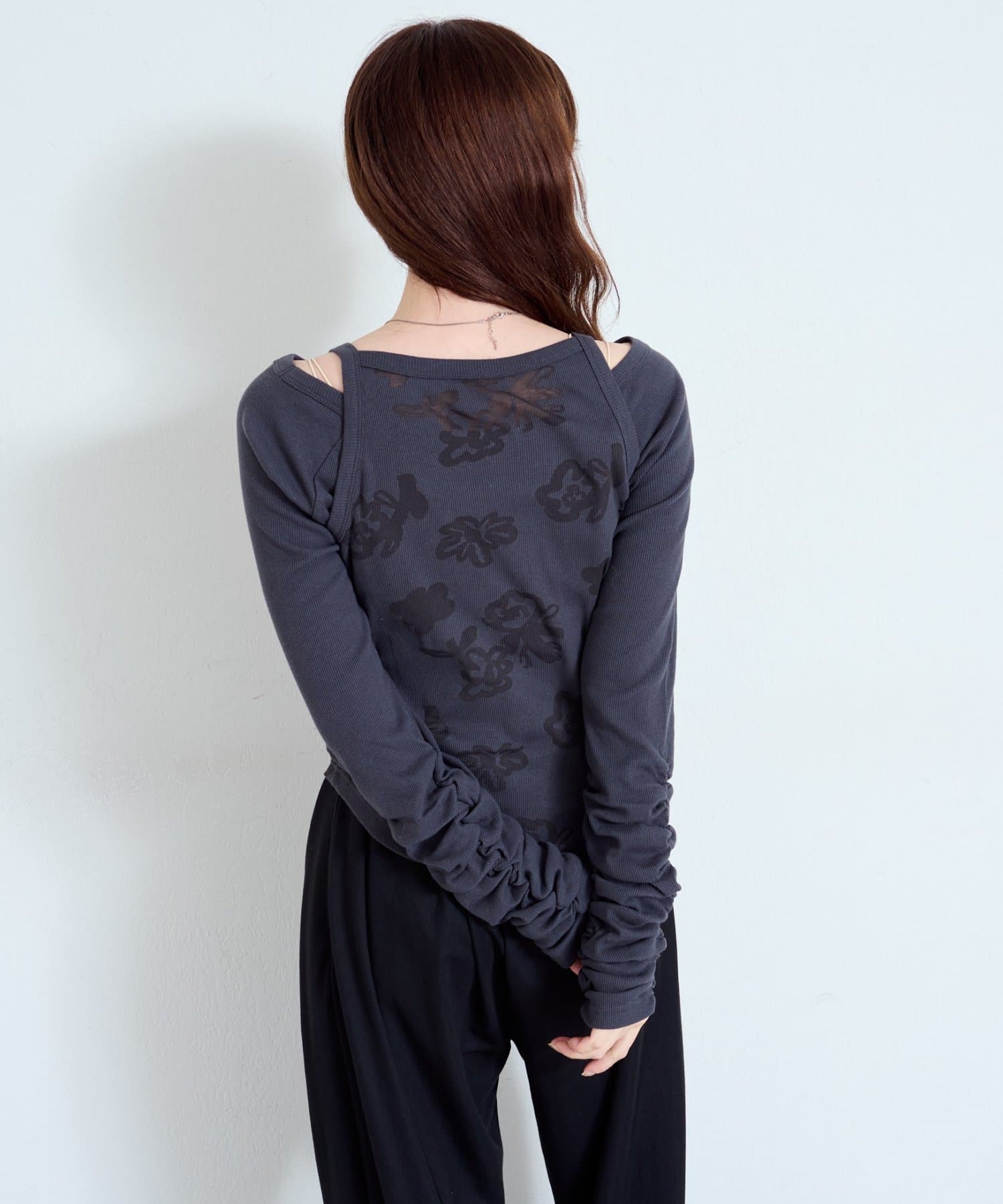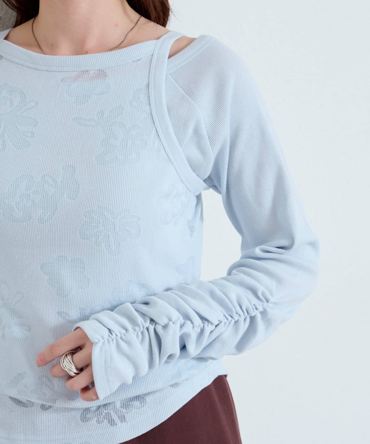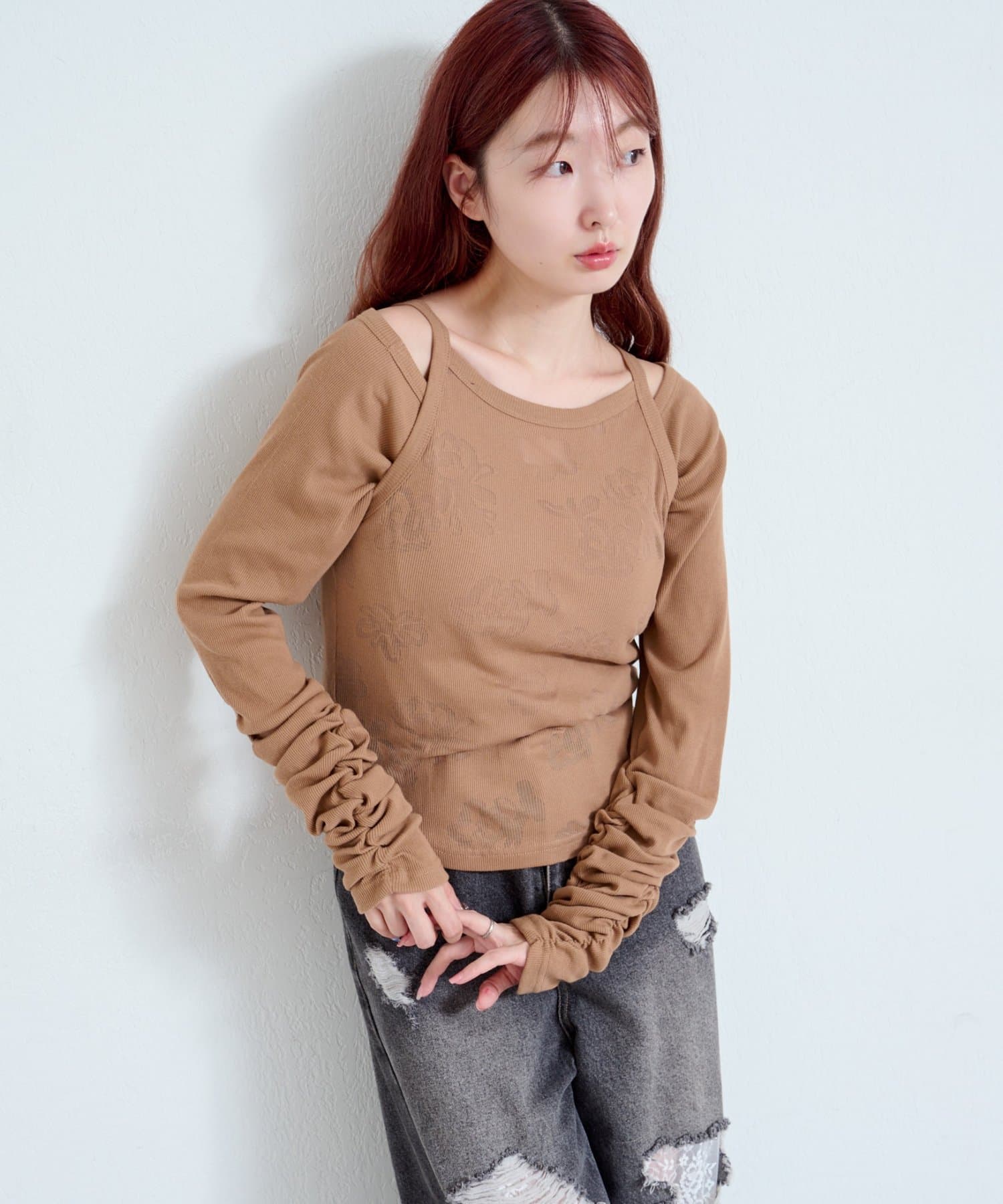 繊細な透け感の花柄オパールカットソーと、インナーキャミがセットになったアイテム