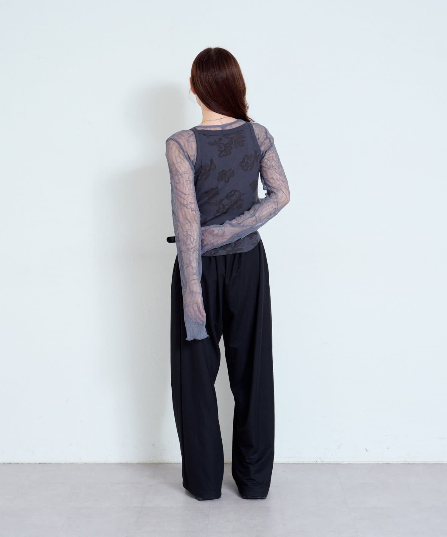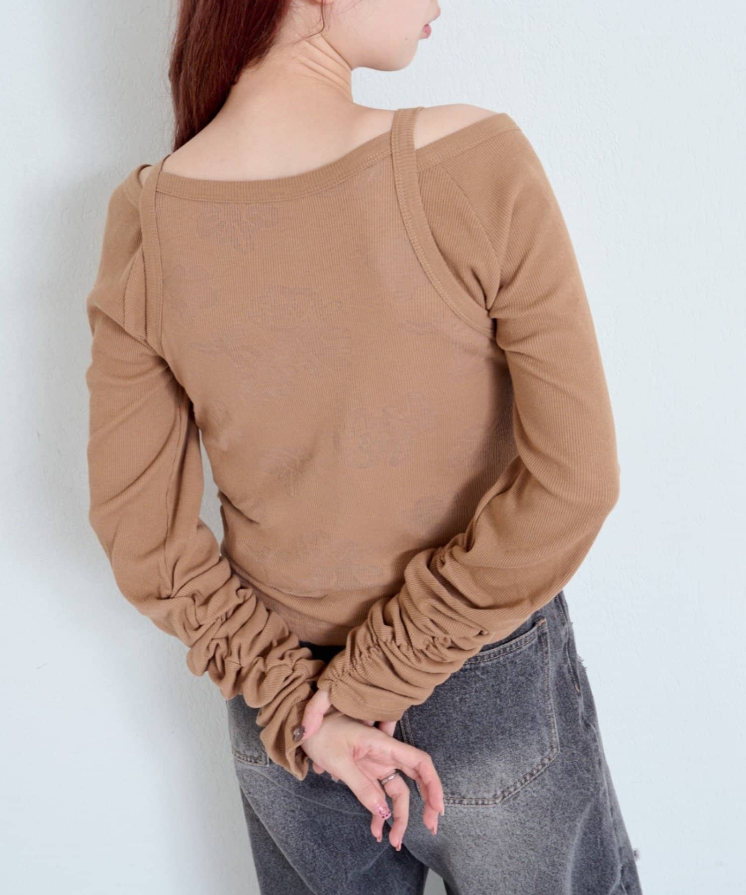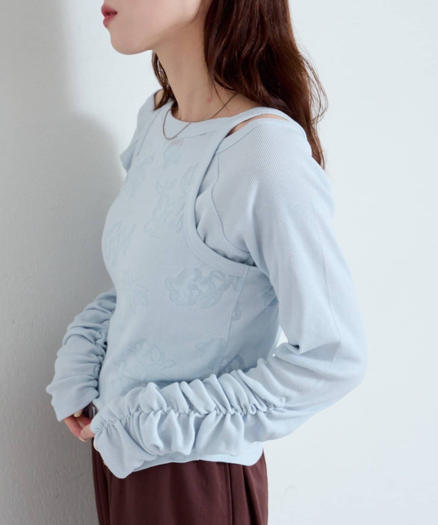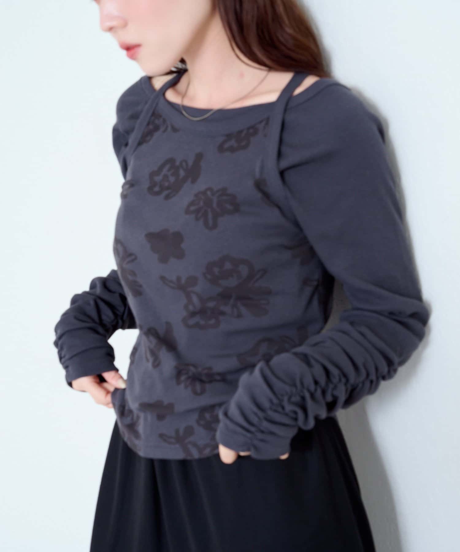 繊細な透け感の花柄オパールカットソーと、インナーキャミがセットになったアイテム