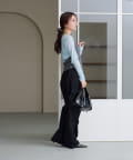 伸縮性のあるリブカットソー素材で、しっかりとした肉感と体に程よくフィットする柔らかさが特徴。