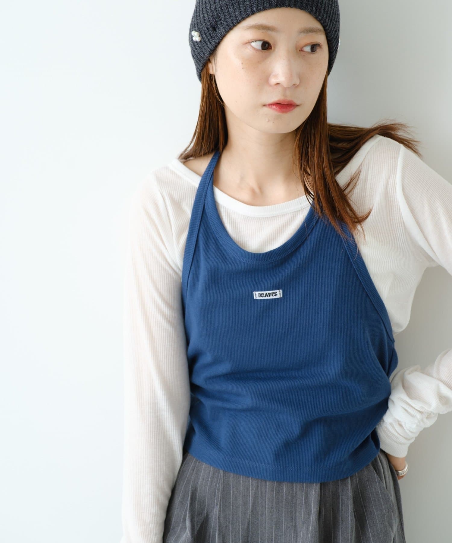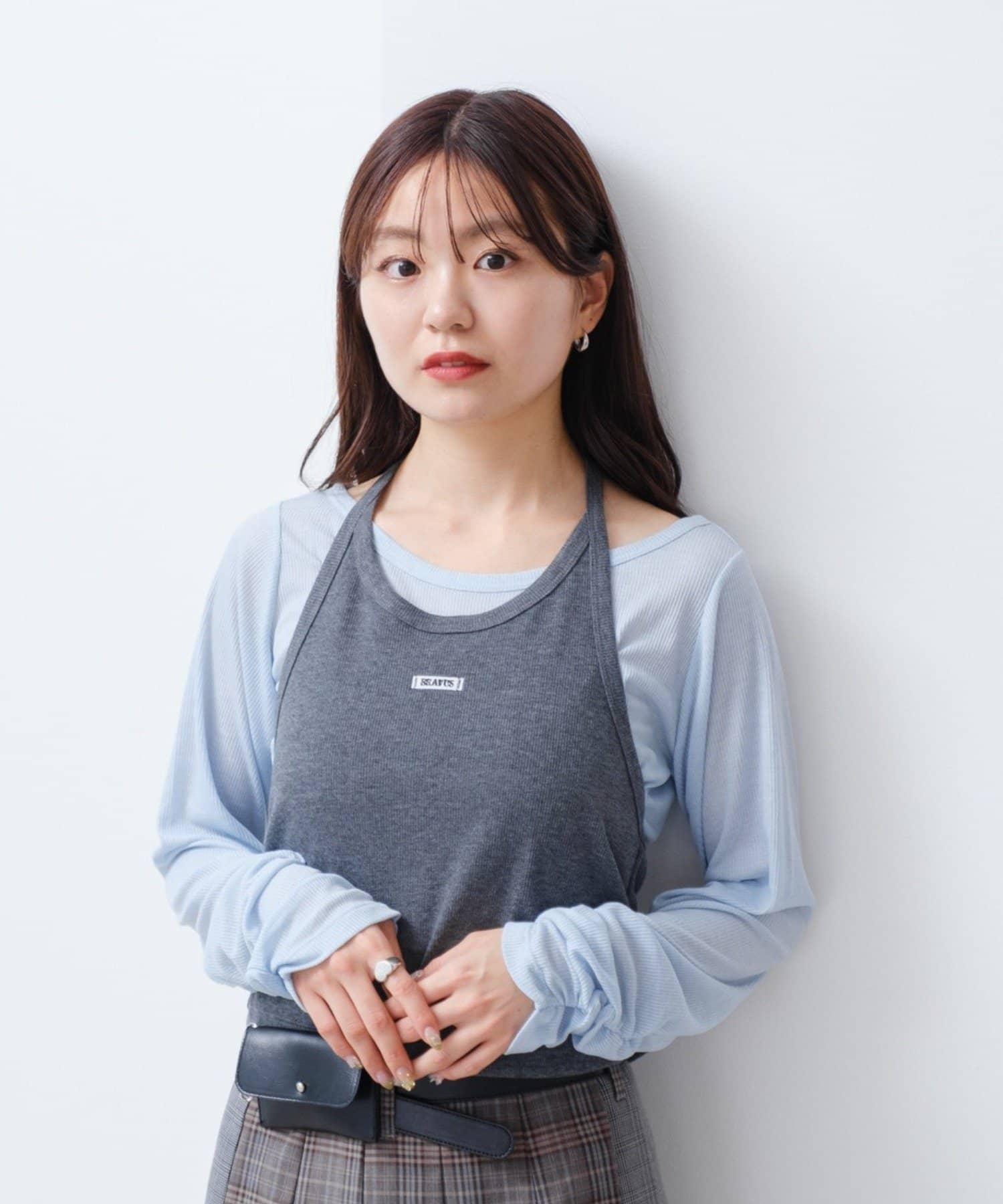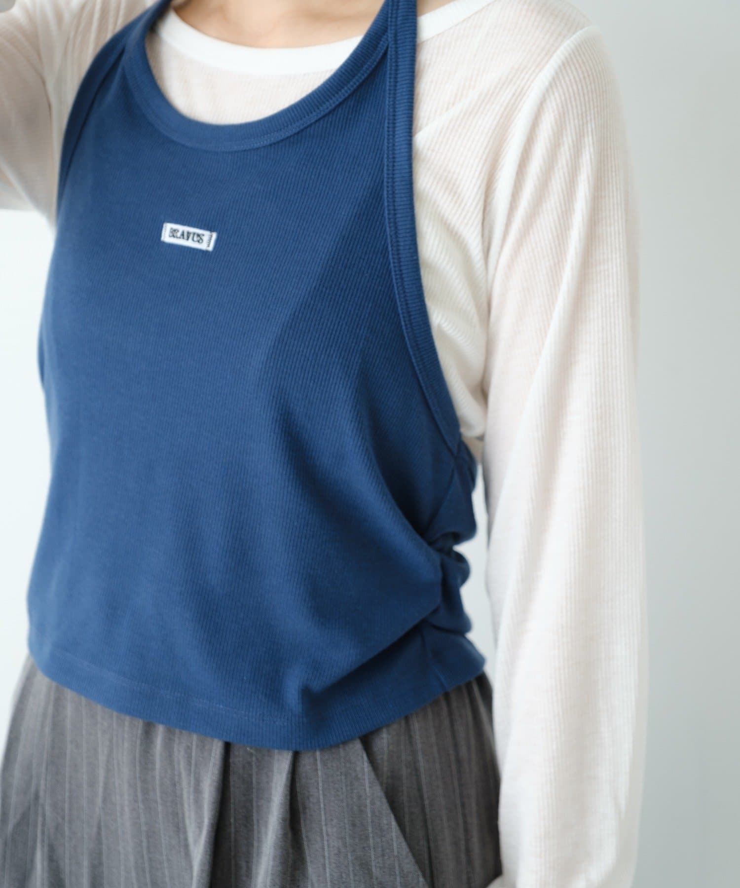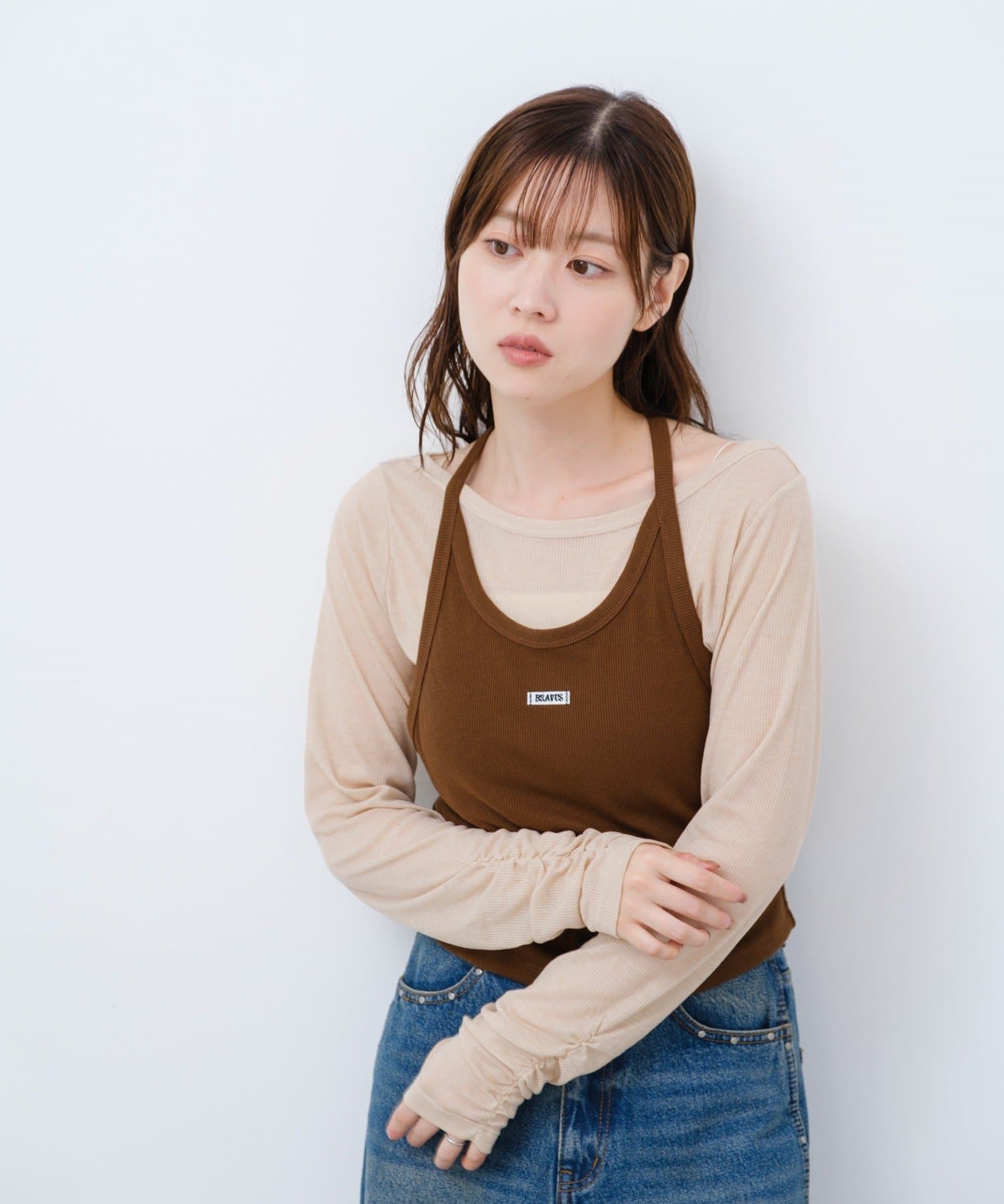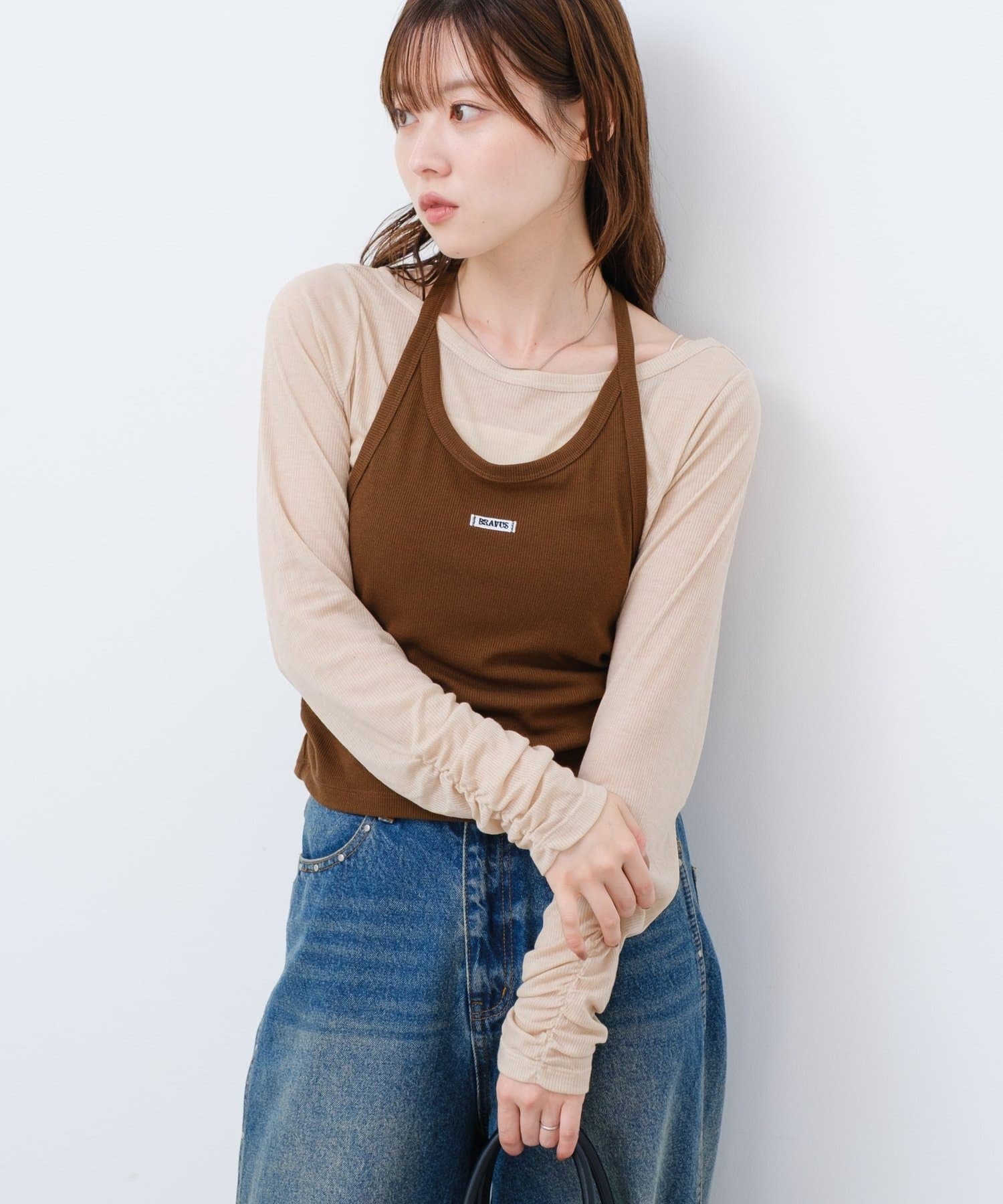 ヘルシーな肌見せが叶うホルターデザインのタンクトップと、ベーシックなロンTEEがセットになったレイヤードアイテム。