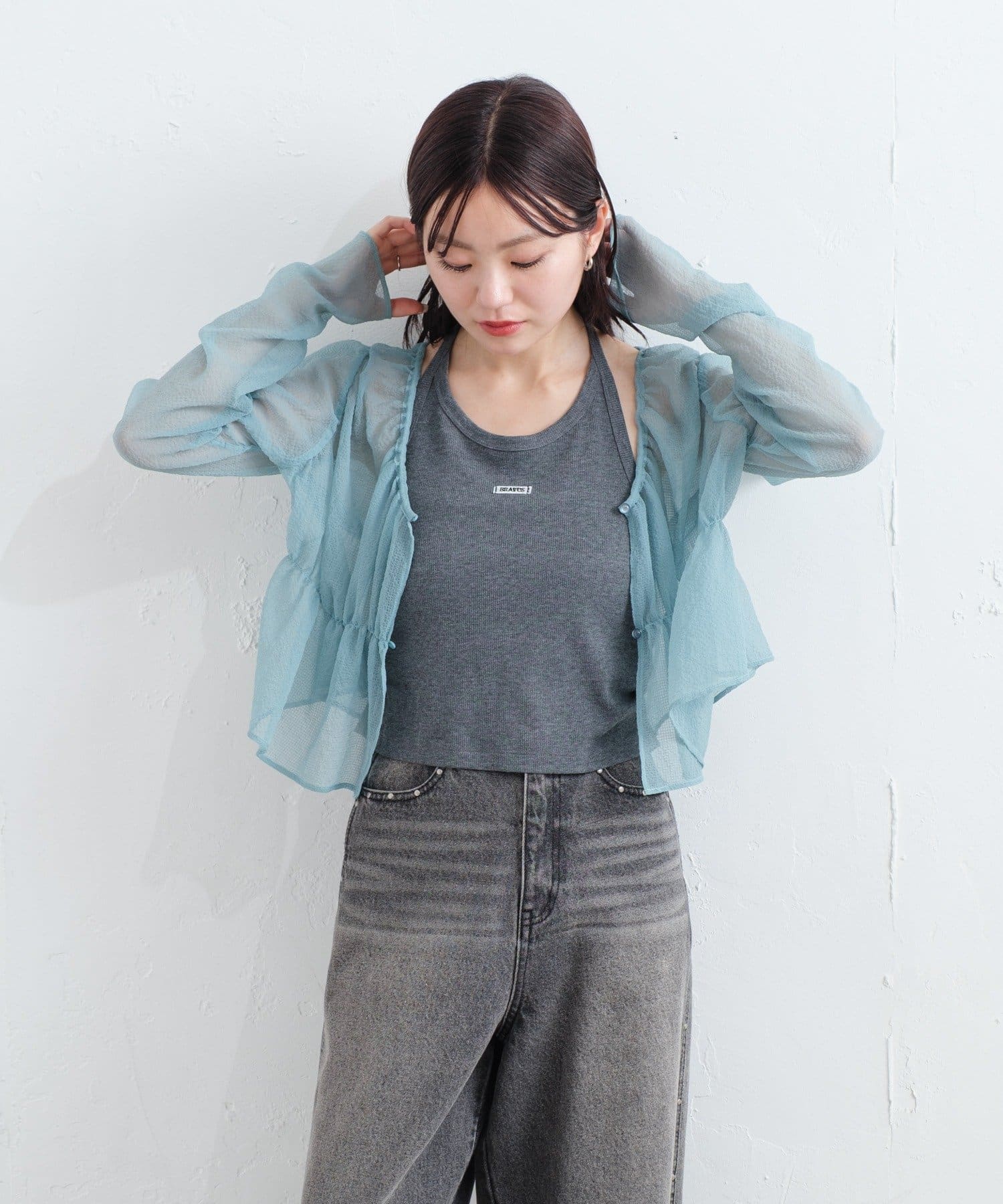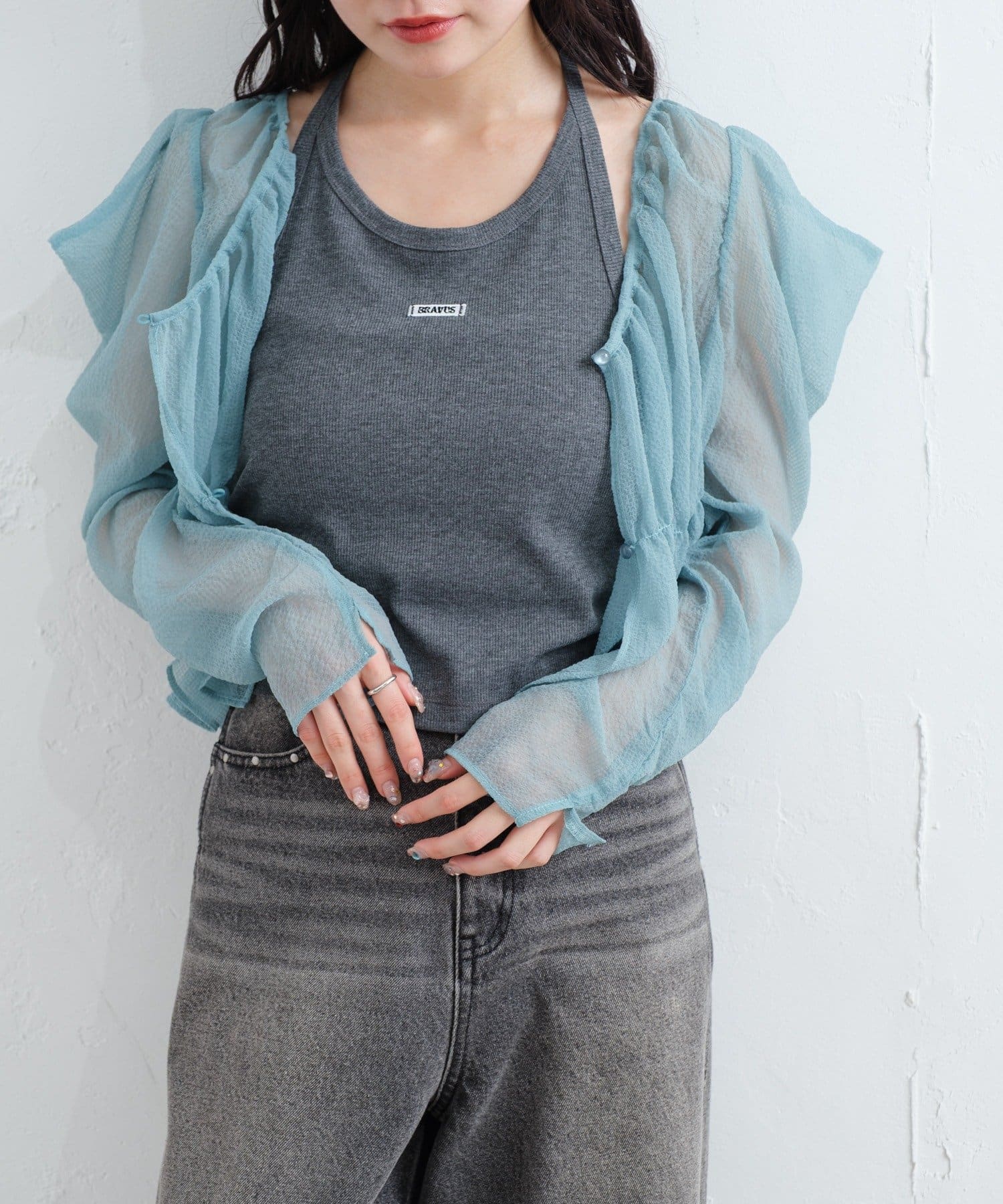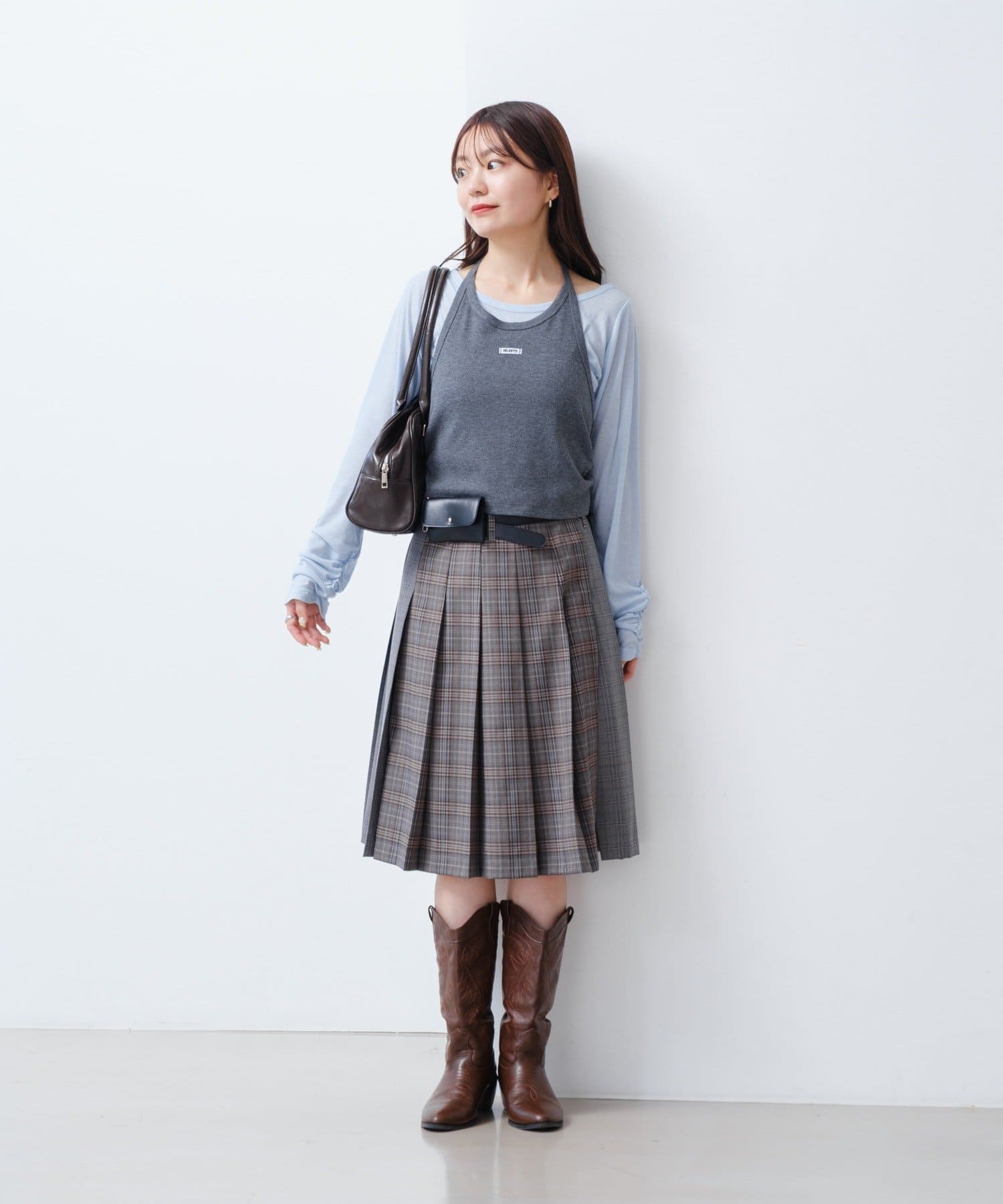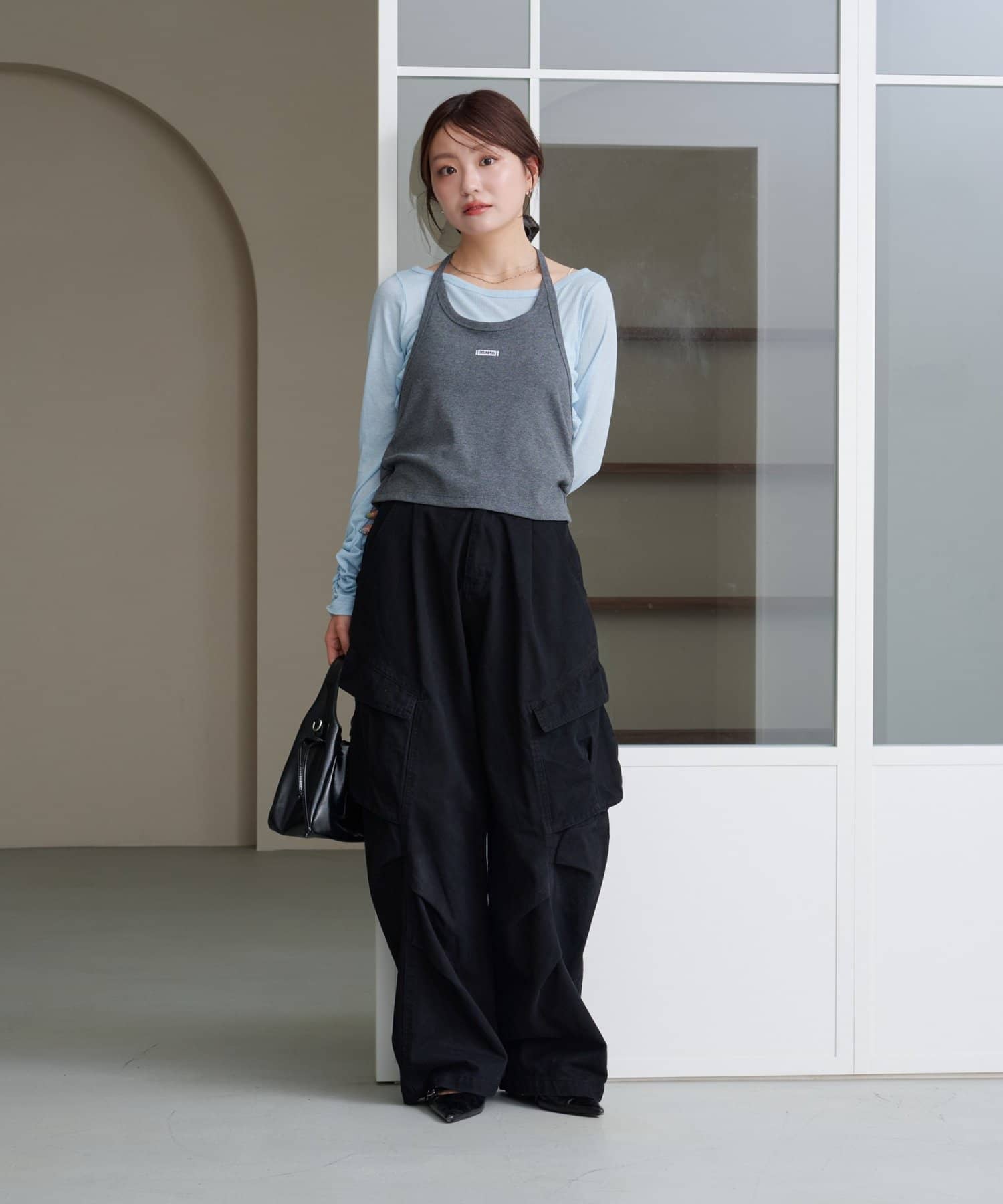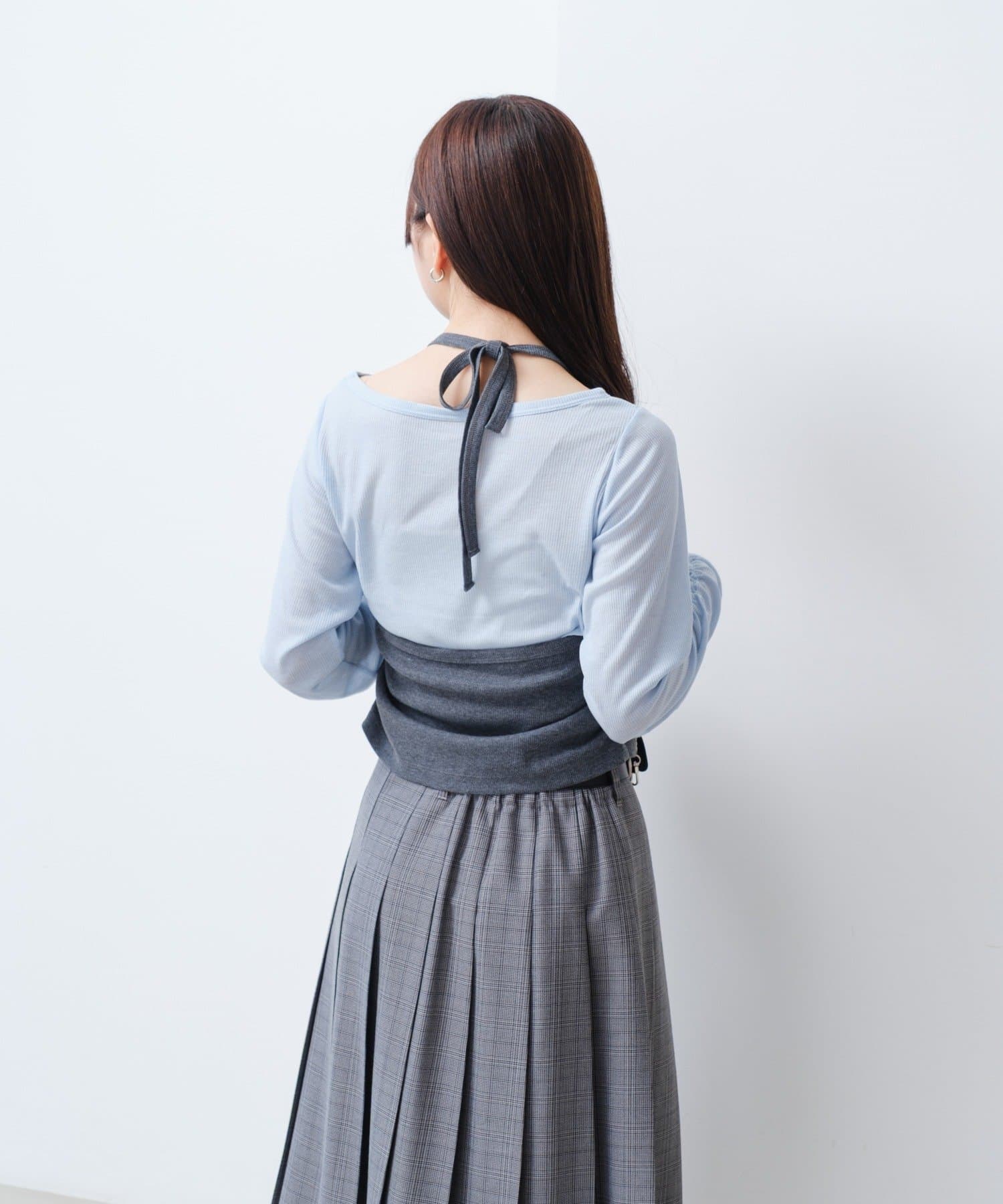 ヘルシーな肌見せが叶うホルターデザインのタンクトップと、ベーシックなロンTEEがセットになったレイヤードアイテム。