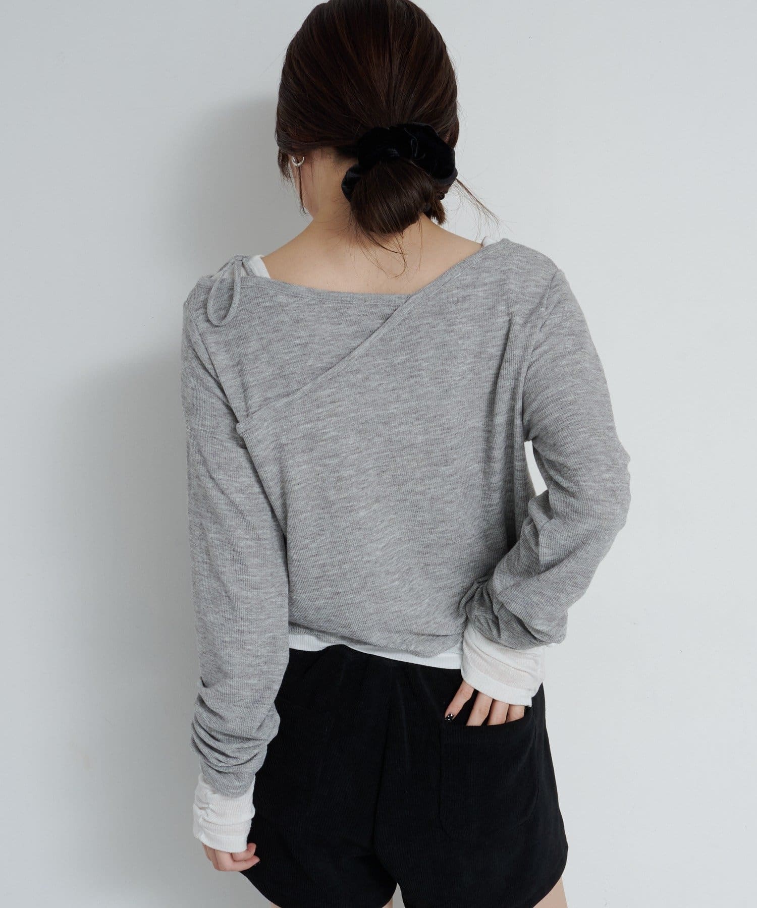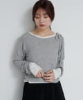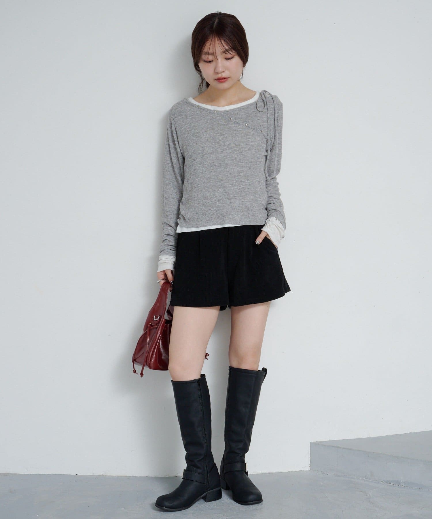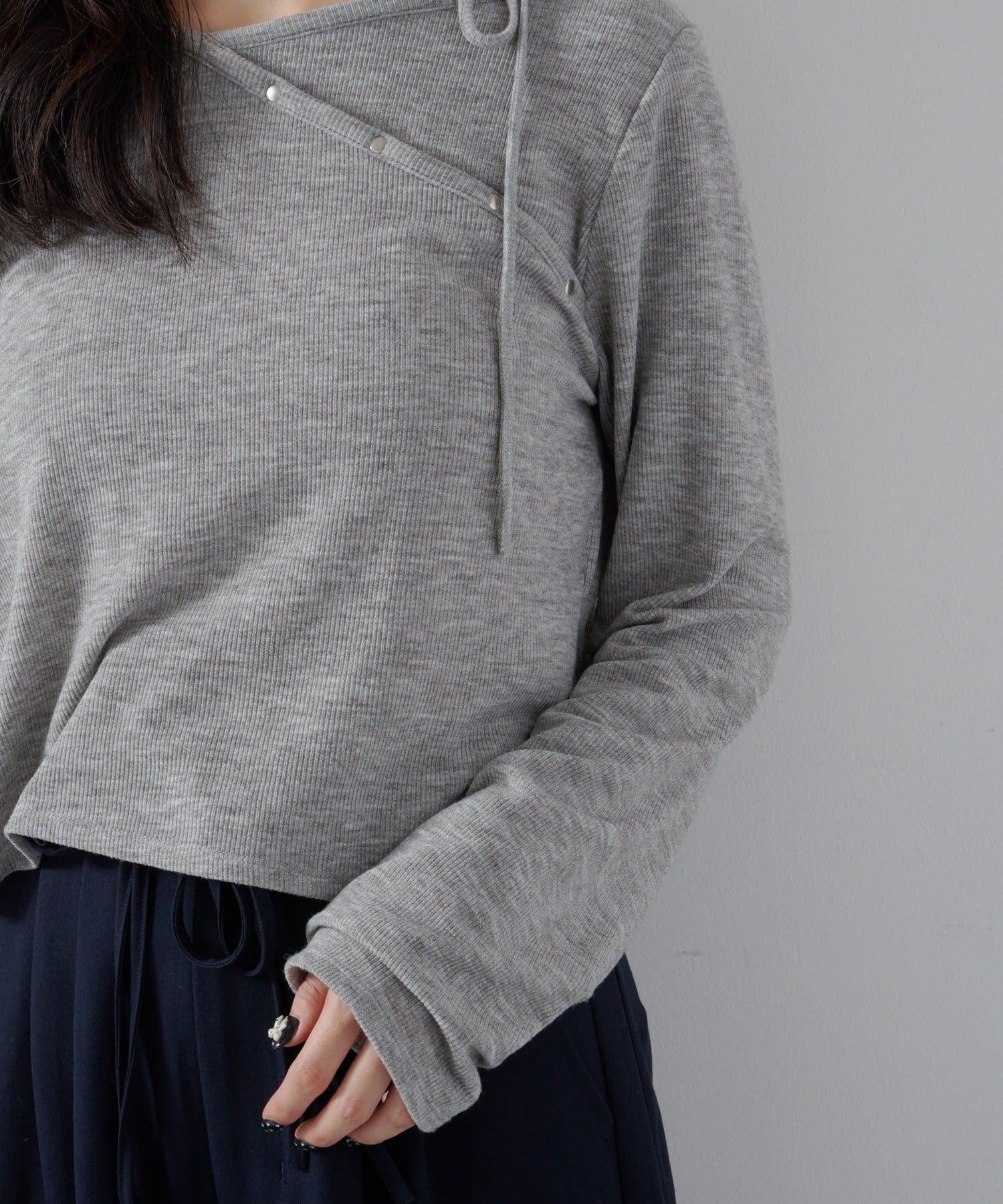 ネックラインにあしらったスタッズがアクセントになるデザイントップス。