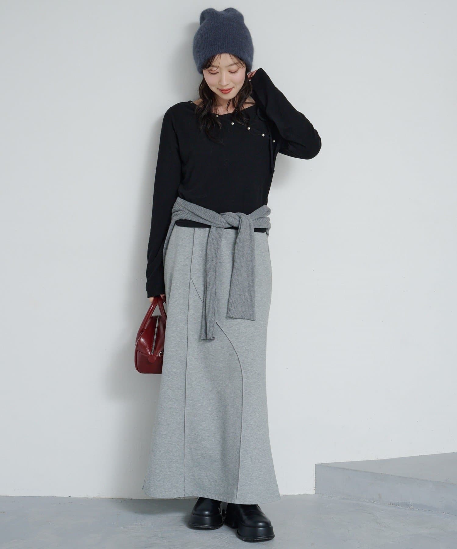 タイトスカートやスラックスと合わせてきれいめスタイルに。