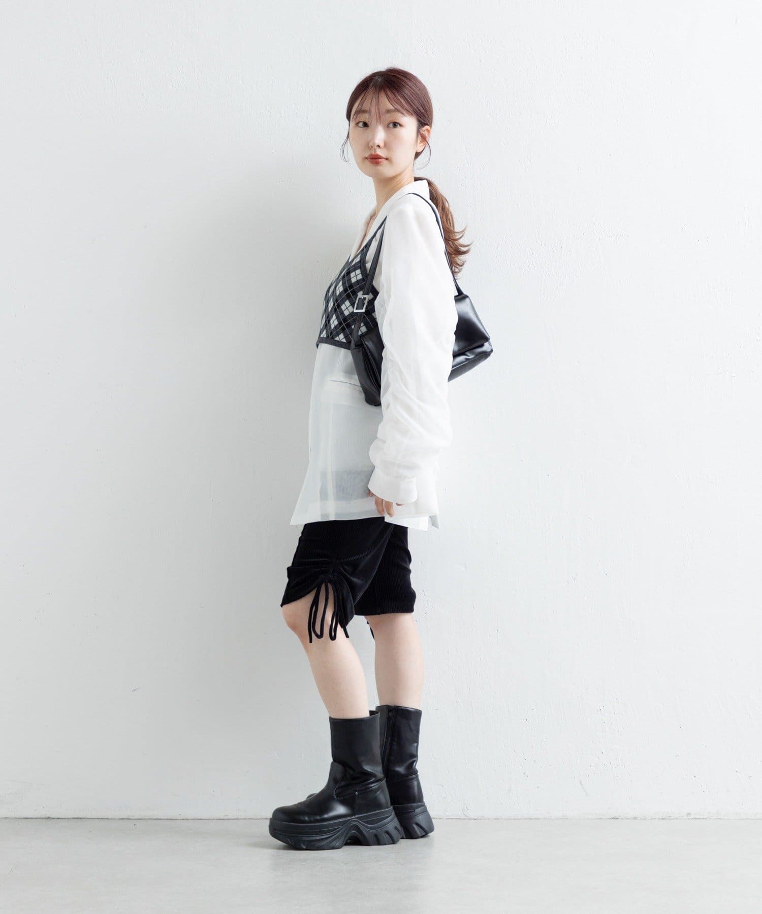 ミディ丈スカートやワイドパンツと合わせて、スタイルアップとトレンド感を同時に演出。