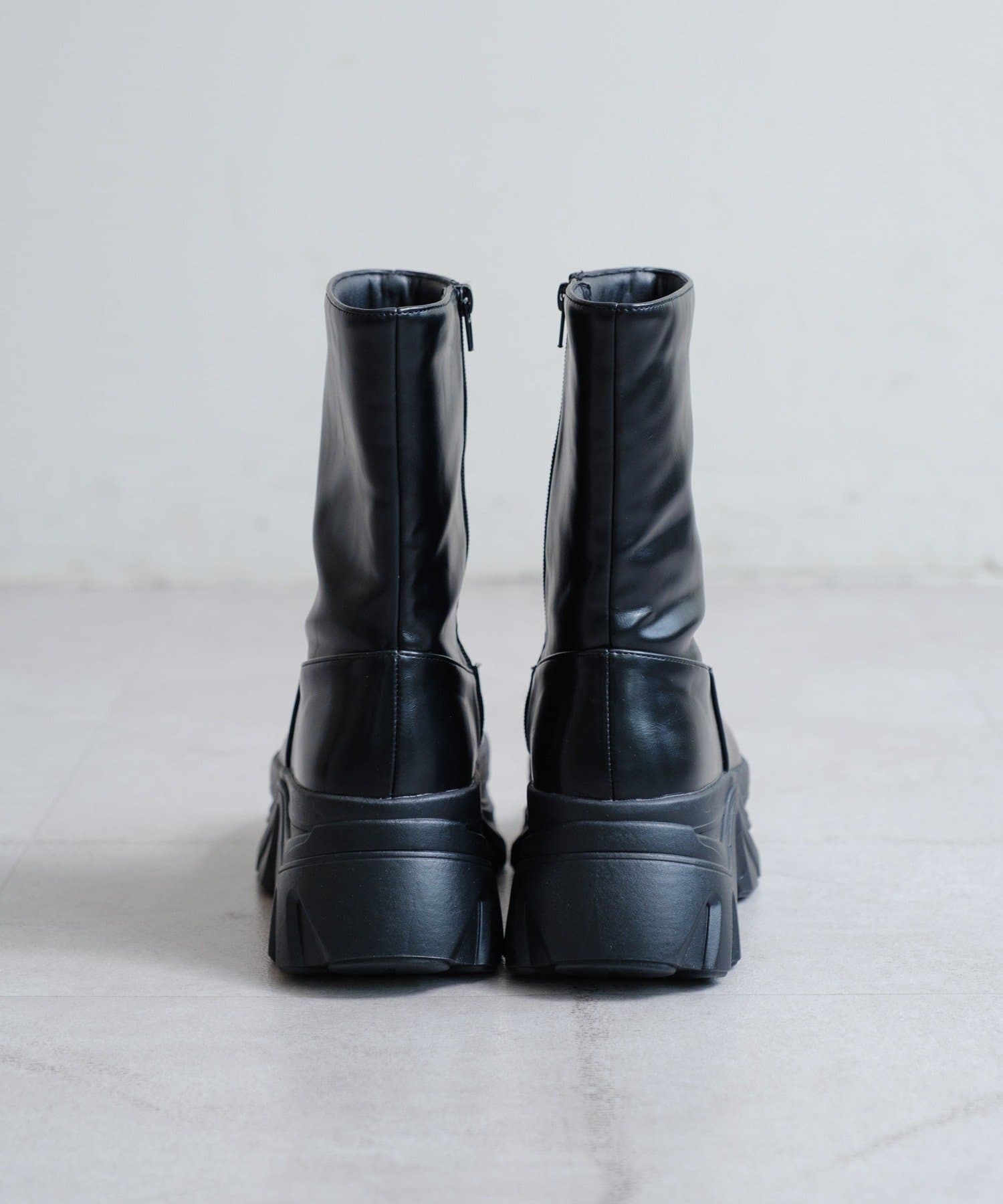 存在感のあるボリュームソールが特徴的なレザーブーツ。
