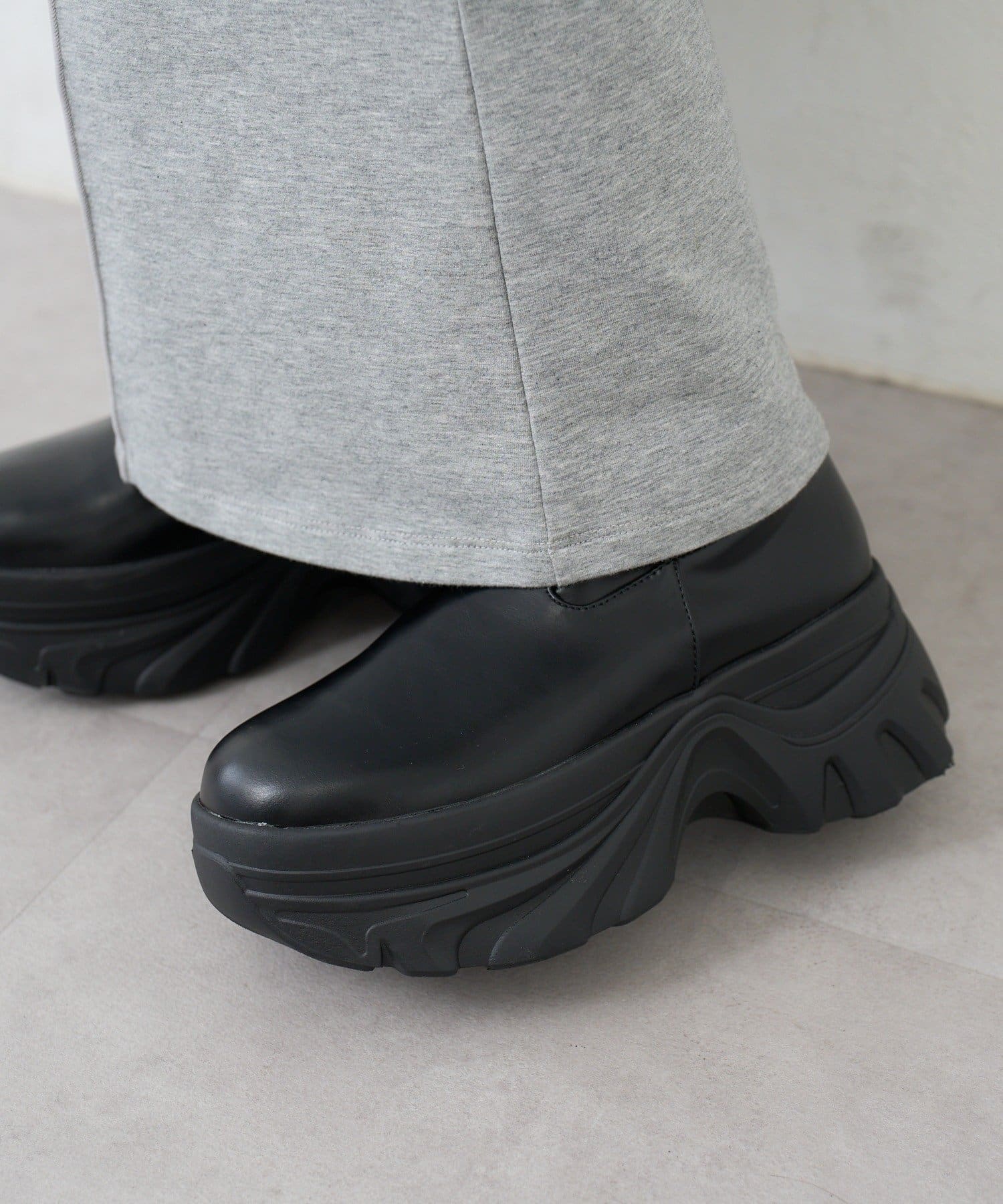 高級感のあるフェイクレザー素材を使用し、モード感と実用性を兼ね備えた一足です。