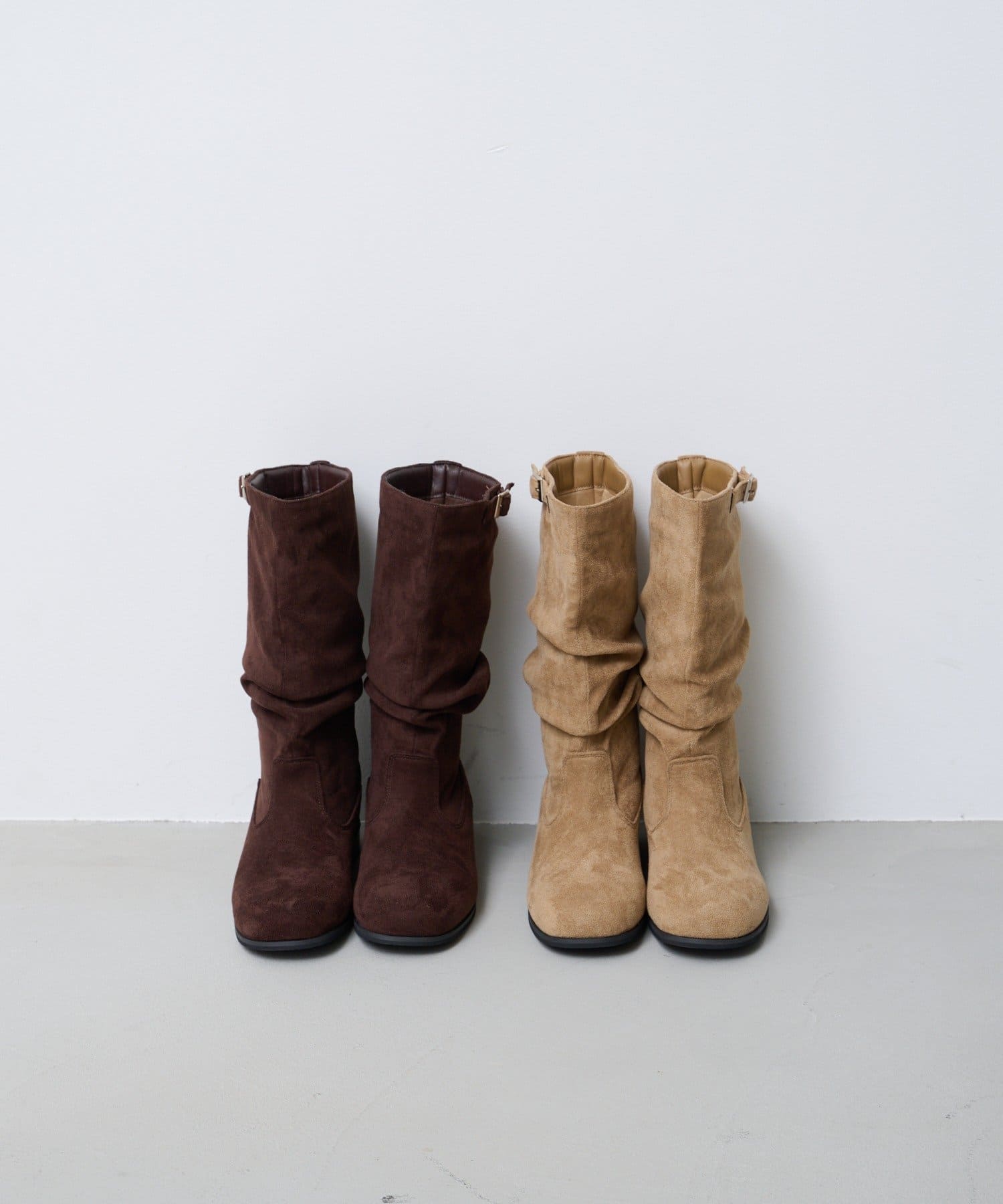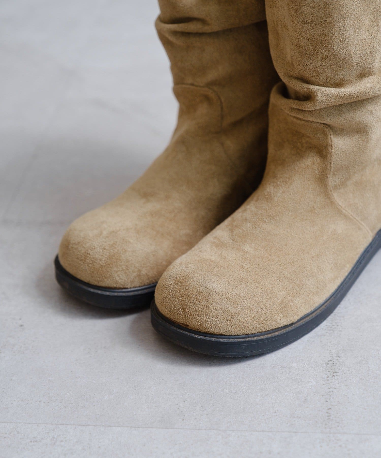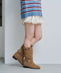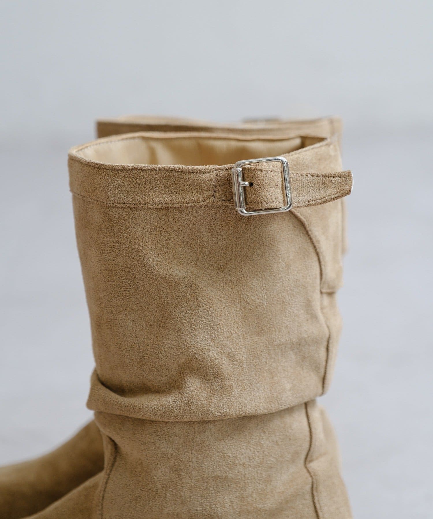 柔らかなスウェード調素材と、大人っぽいレザー調素材で仕上げたルーズエンジニアブーツ。