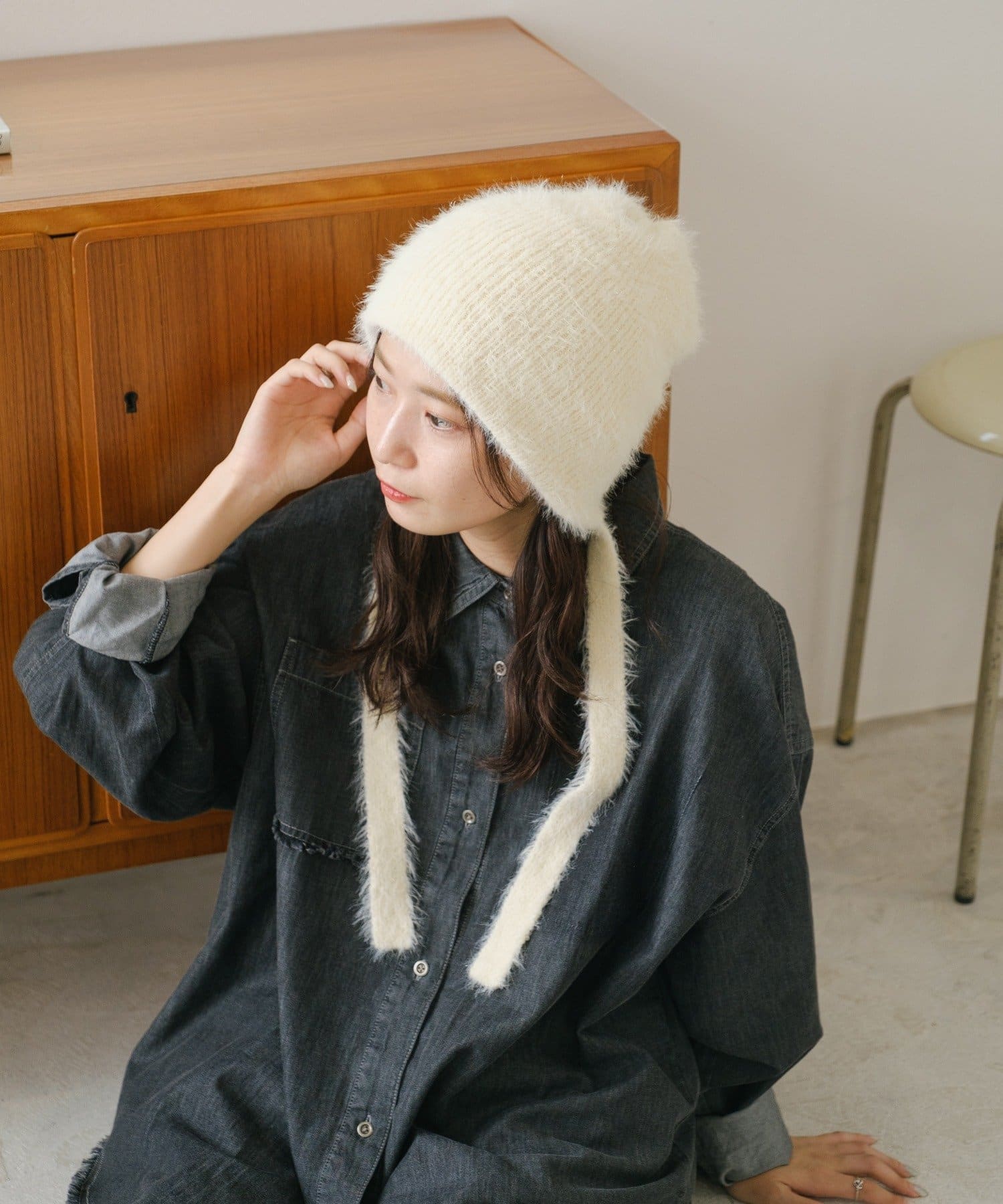 さらに、長めのリボンストラップが付いており、結んでも垂らしても可愛くアレンジ可能。小顔効果も期待できるデザインです。