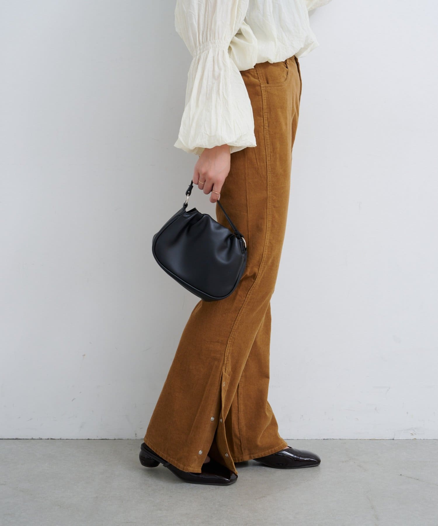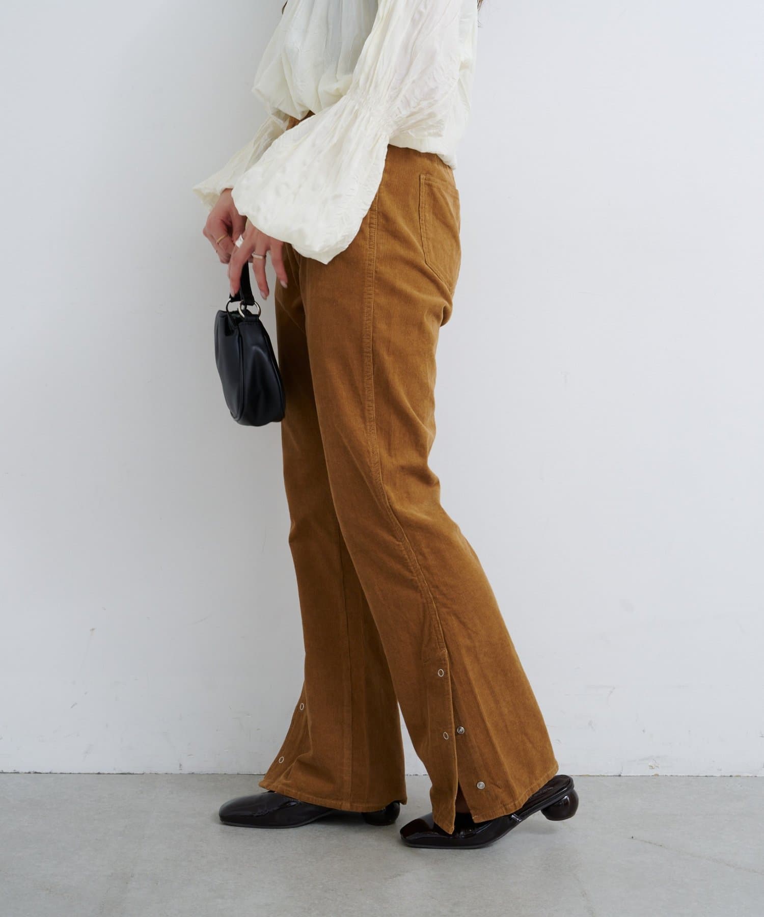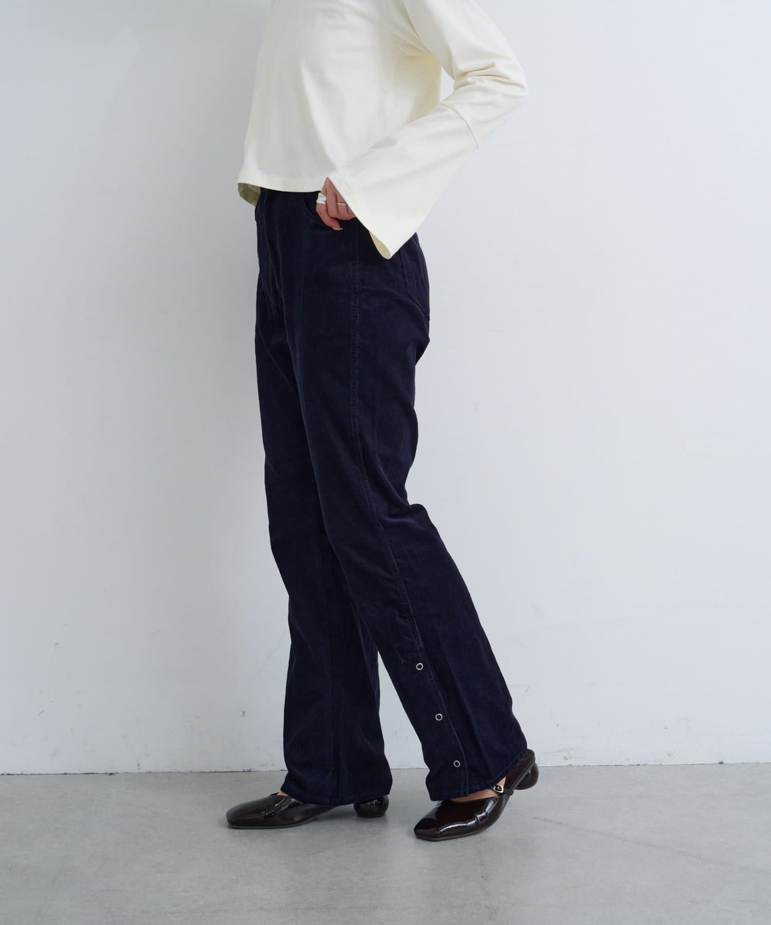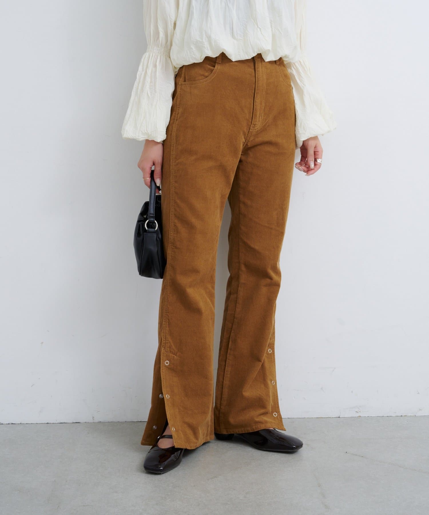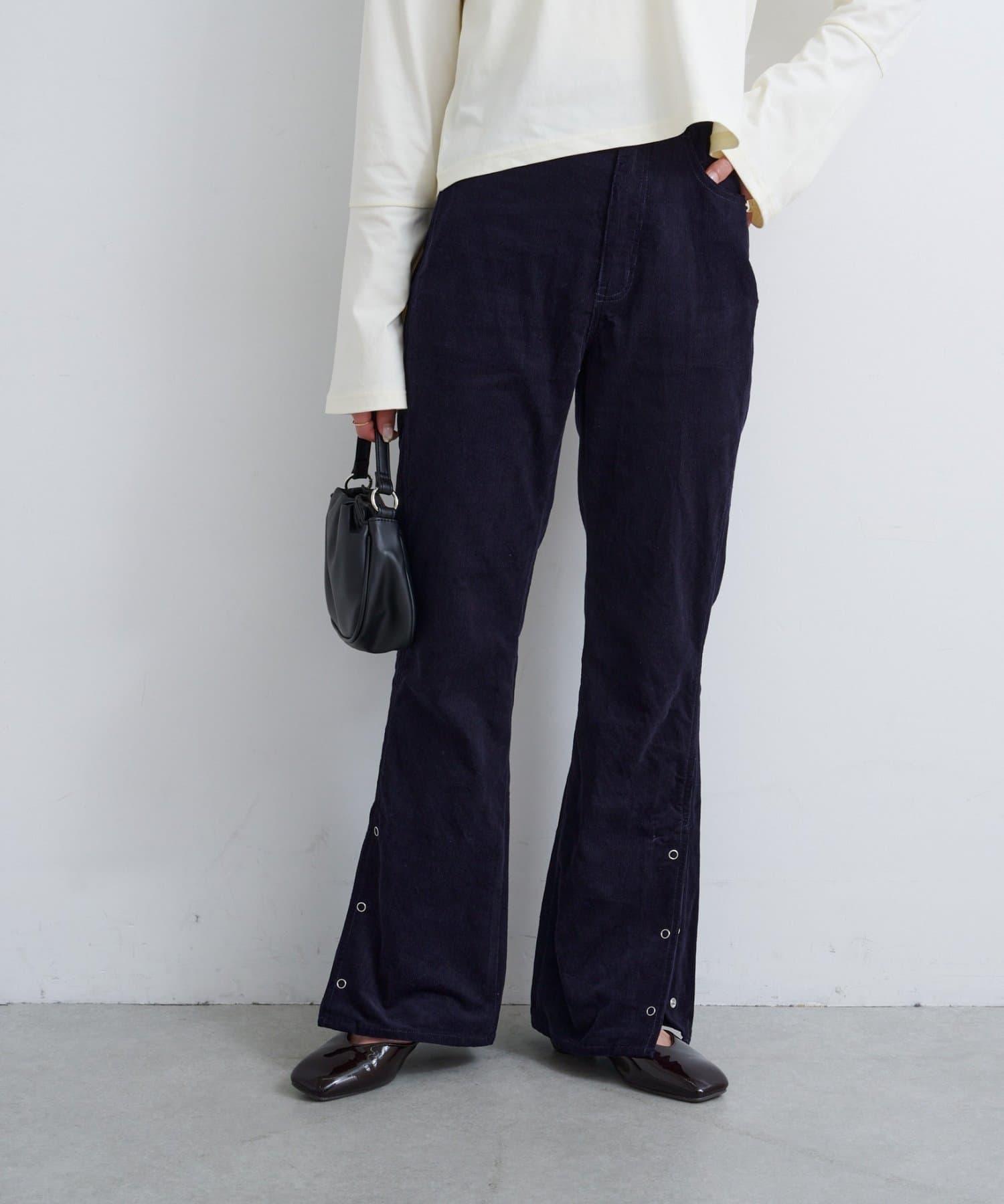 抜け感スリットで差をつける、旬顔コーデュロイパンツ