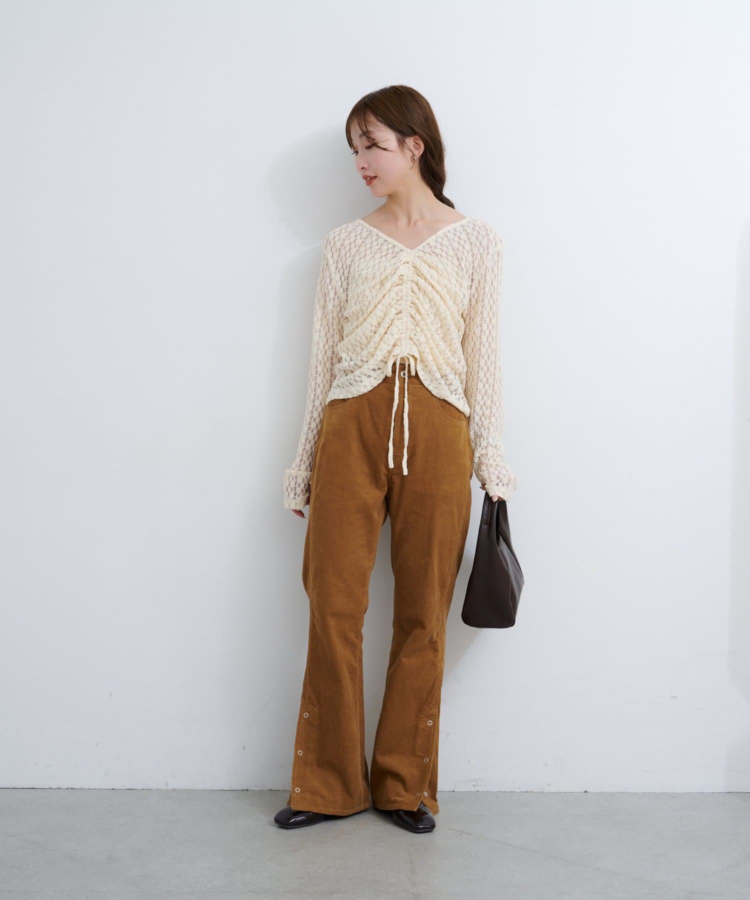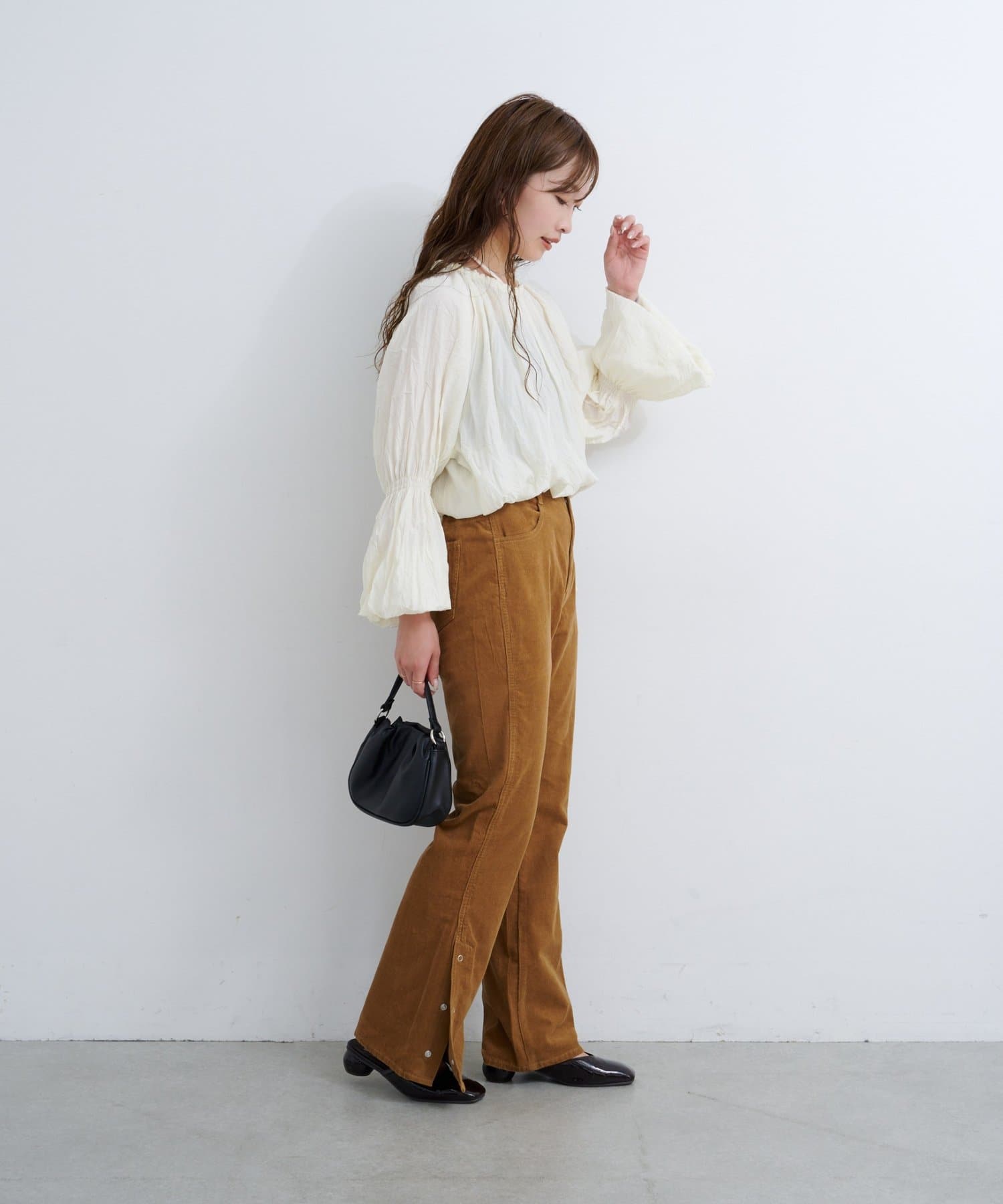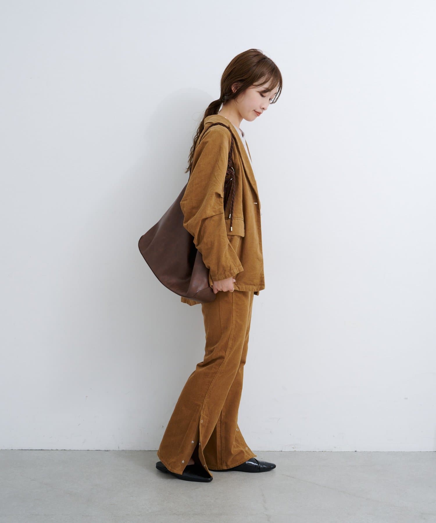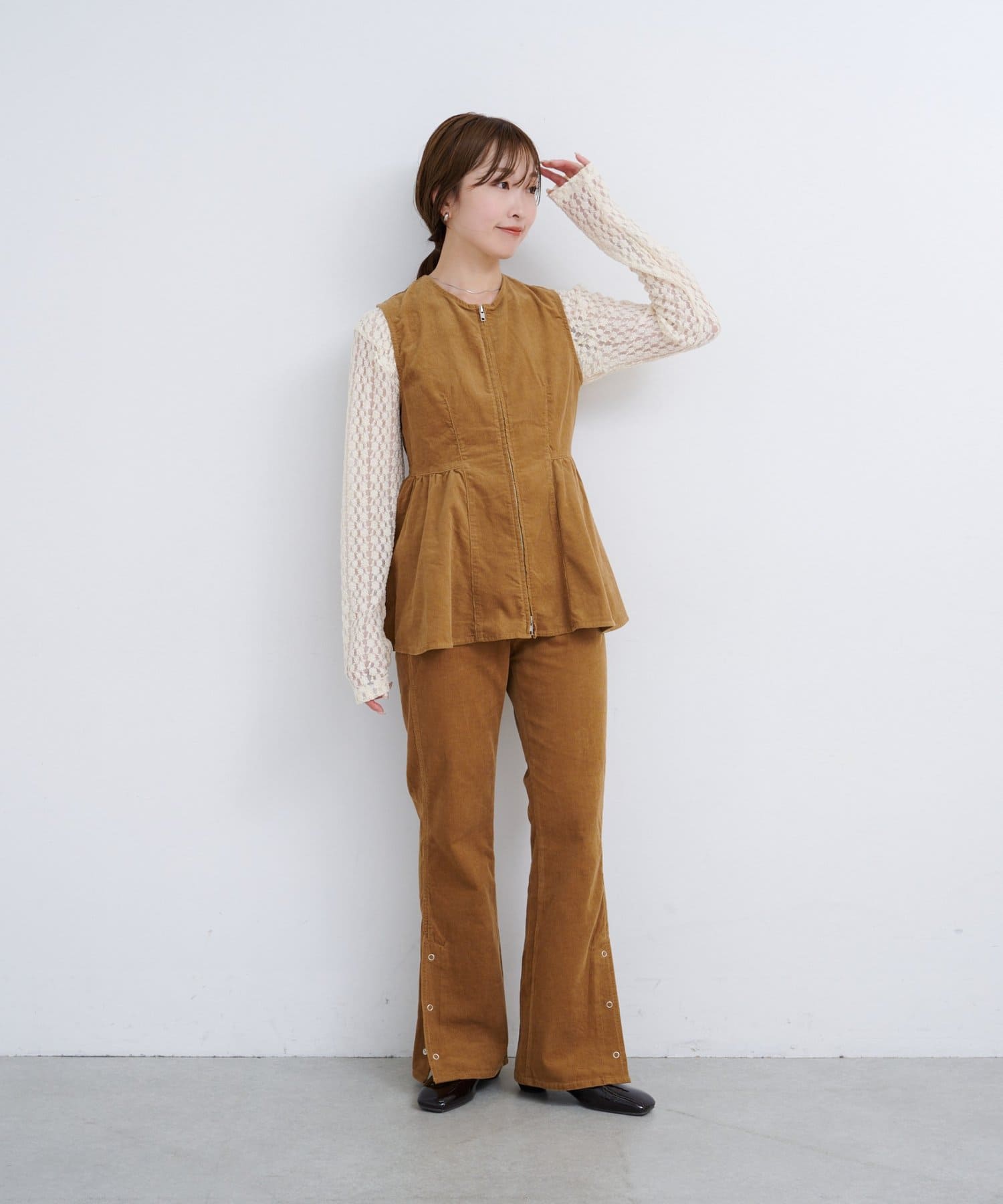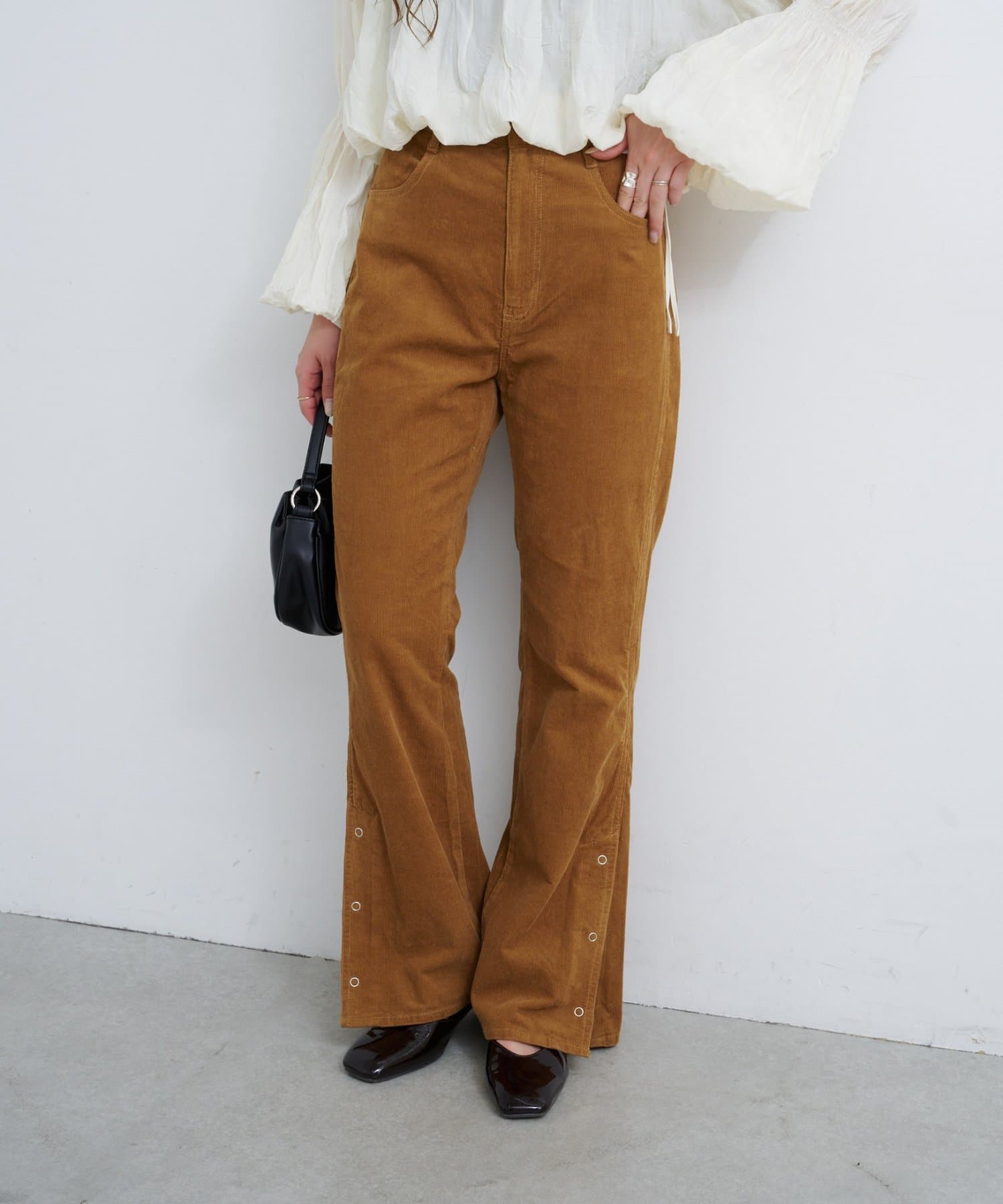 抜け感スリットで差をつける、旬顔コーデュロイパンツ