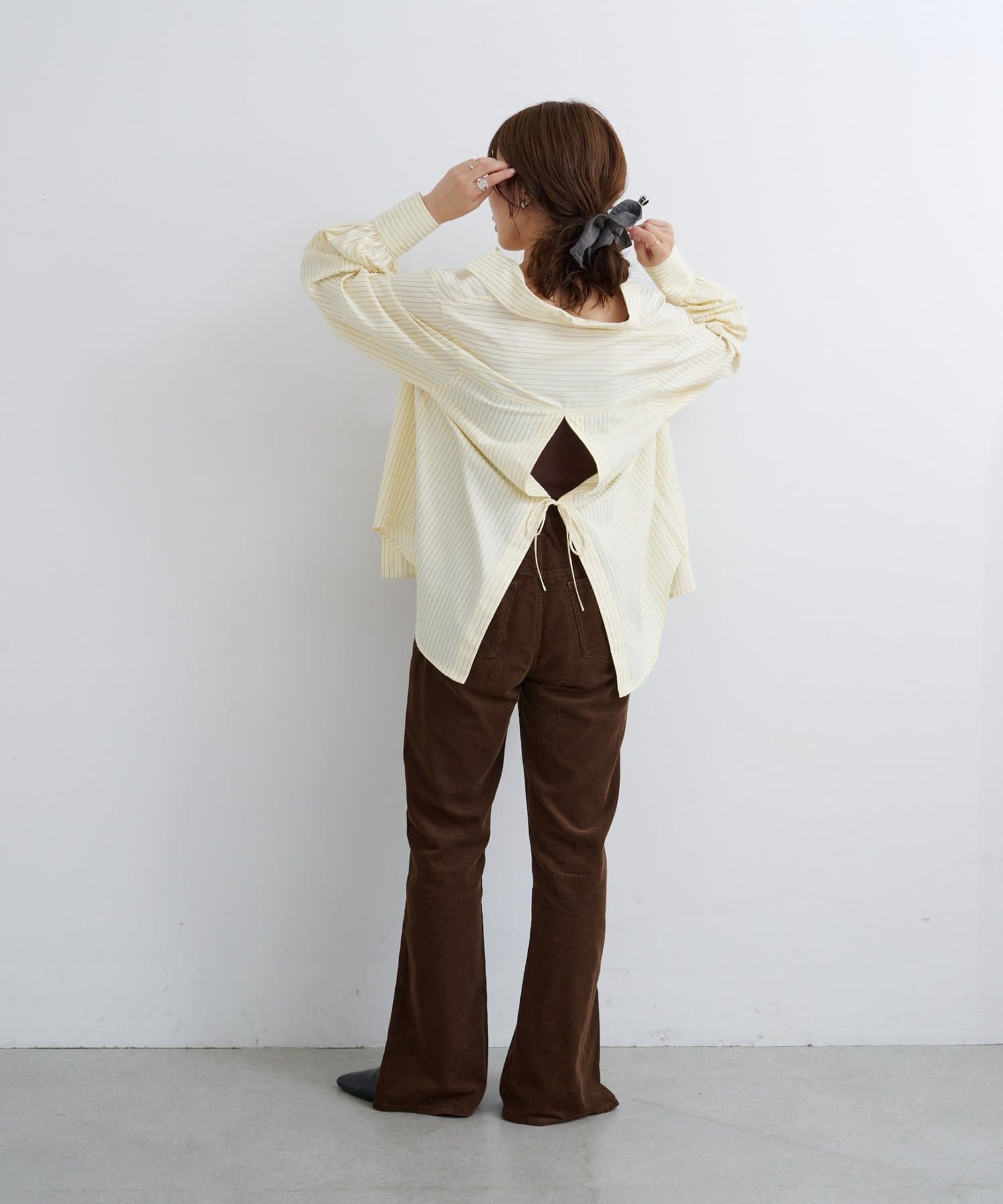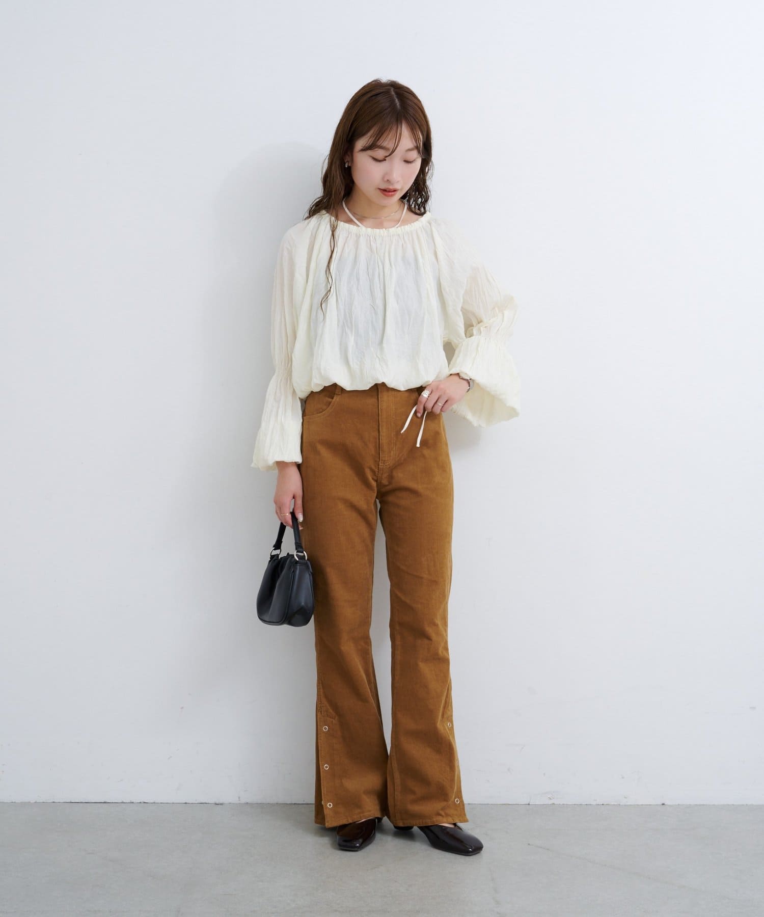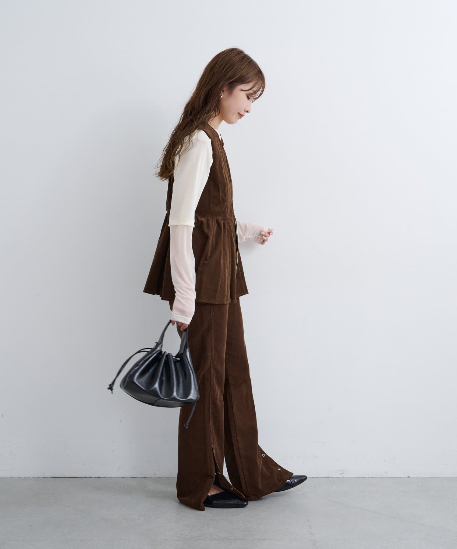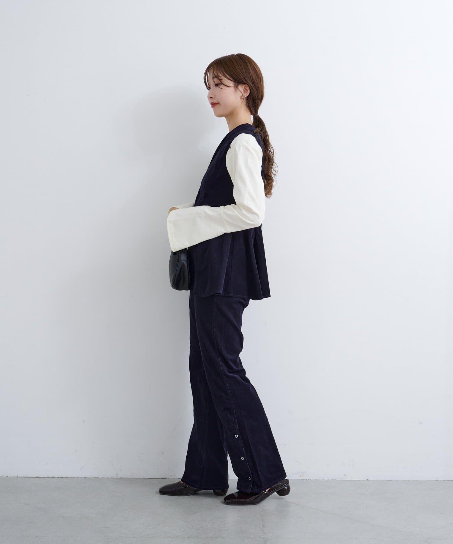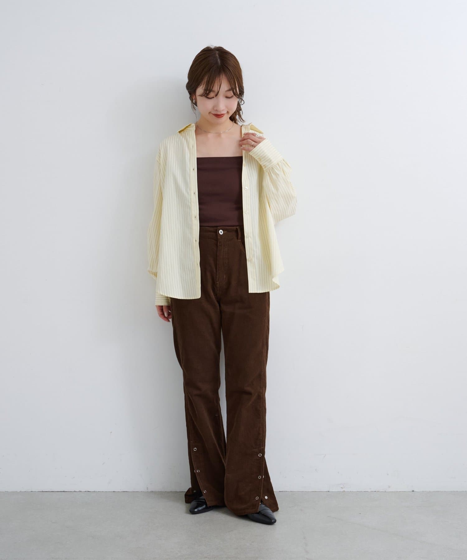 抜け感スリットで差をつける、旬顔コーデュロイパンツ