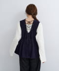 前後で異なる表情が楽しめる、ジップ×レースアップデザインのコーデュロイビスチェ。